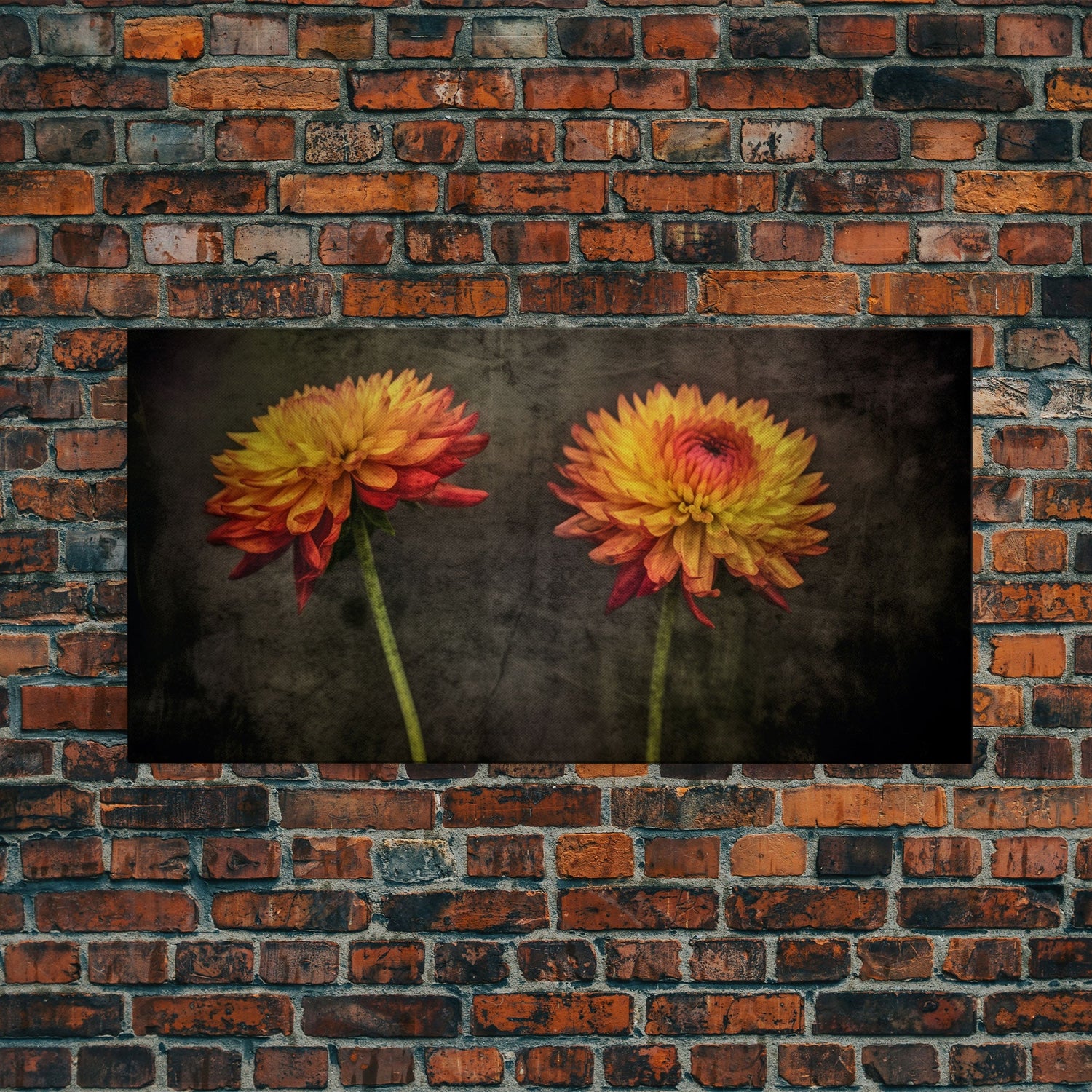 Orange Dalia Flowers Wall Decor, Floral Wall Art, Nature Print, Vibrant Art, Panoramic Wall Decor, Canvas Print, Wall Art, Framed Canvas Art - 10x20 Inches / No Frame - Stretched Canvas Only is backordered and will ship as soon as it is back in stock.