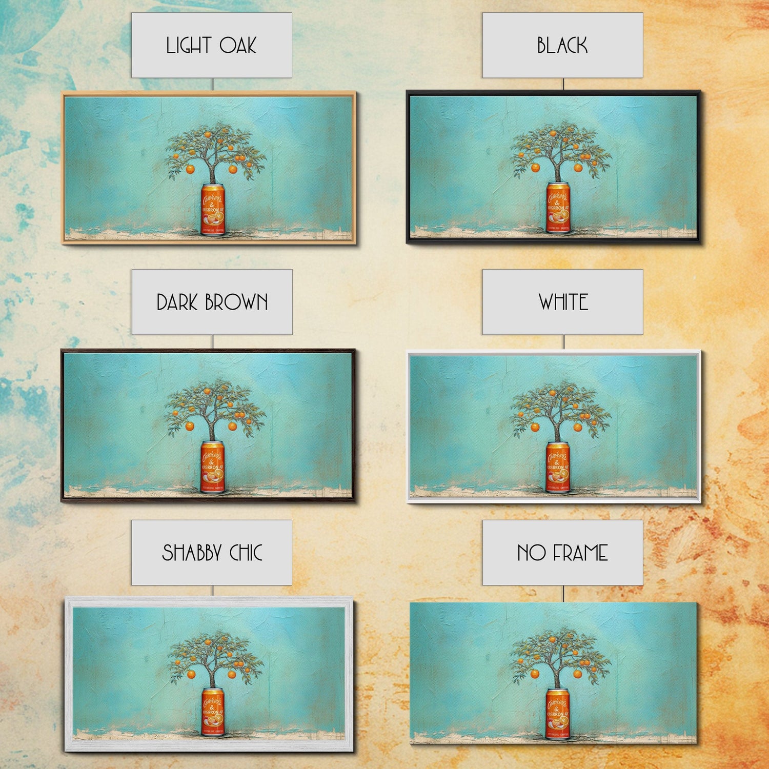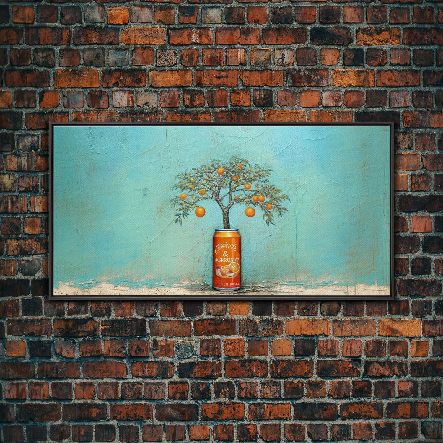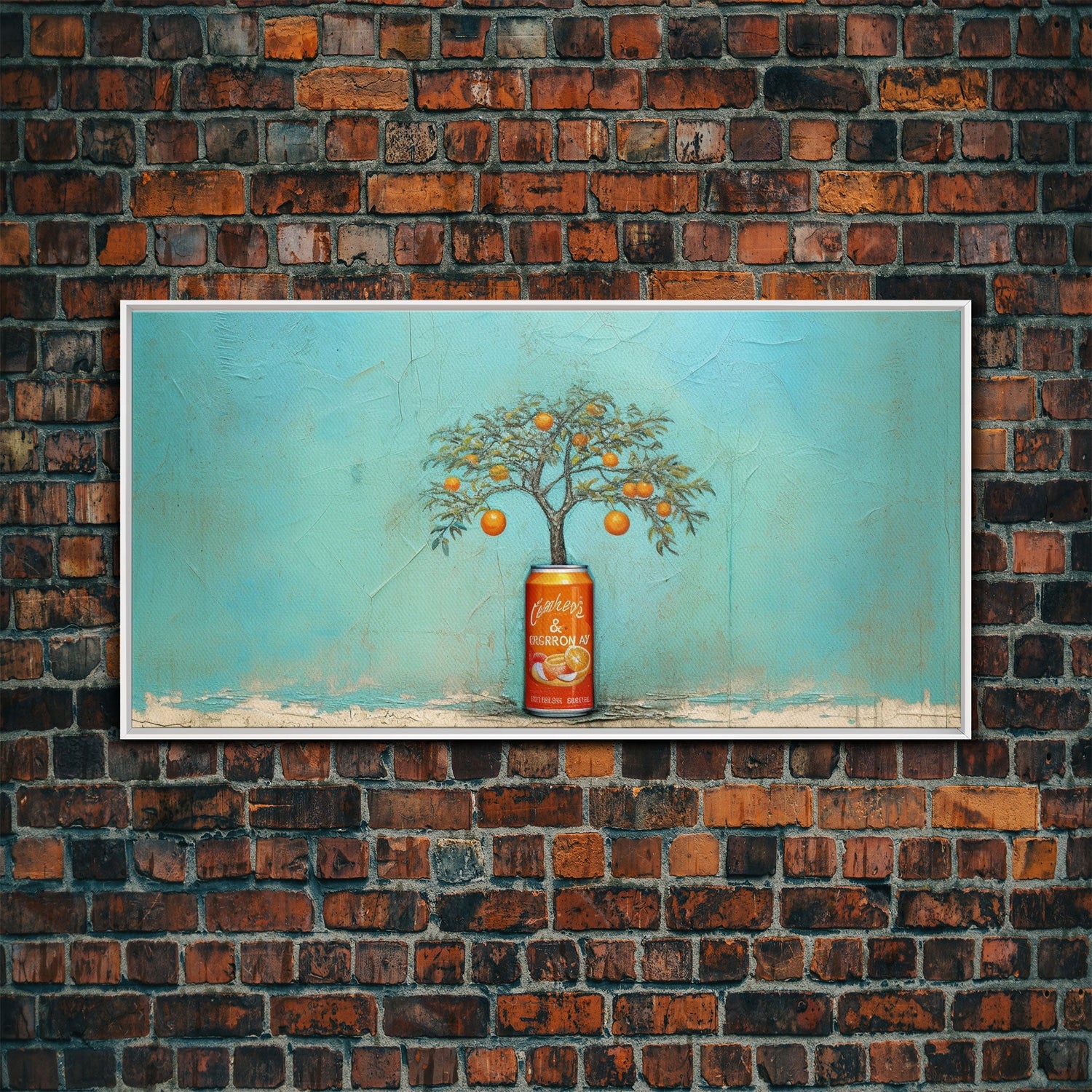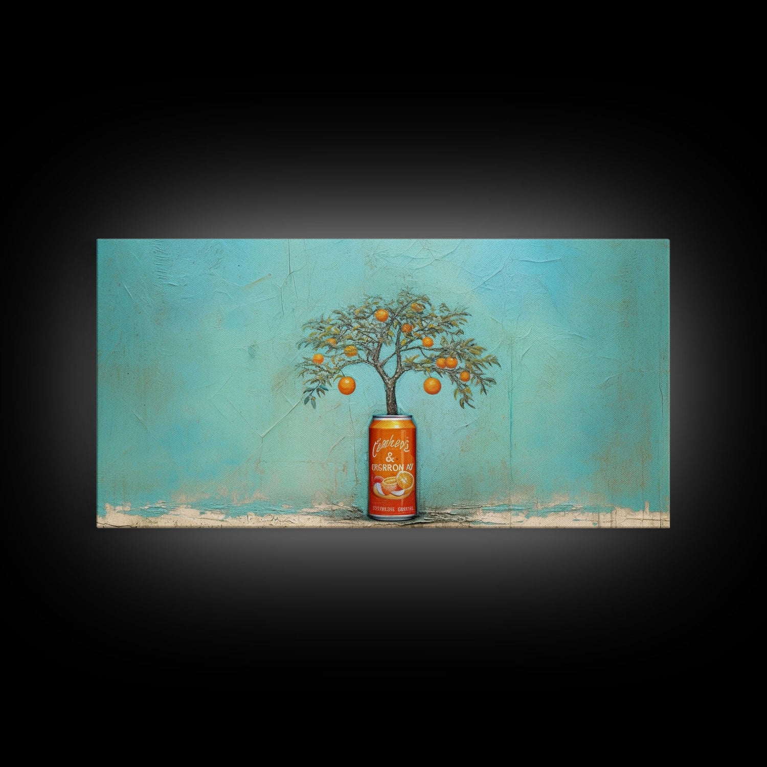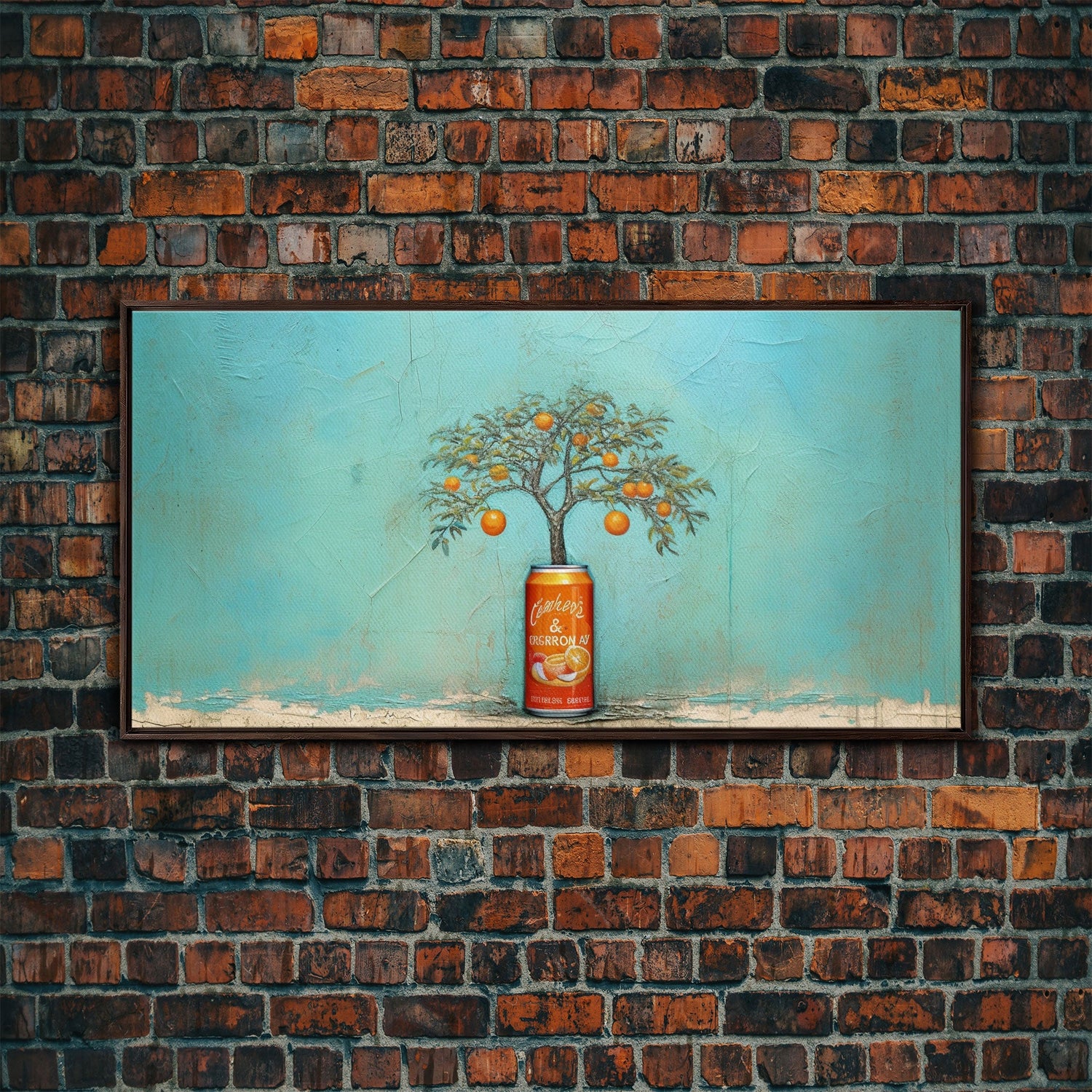 Orange Tree In Soda Can Wall Decor, Orange Wall Art, Plant Art, Teal Art, Panoramic Wall Decor, Canvas Print, Wall Art, Framed Canvas Art