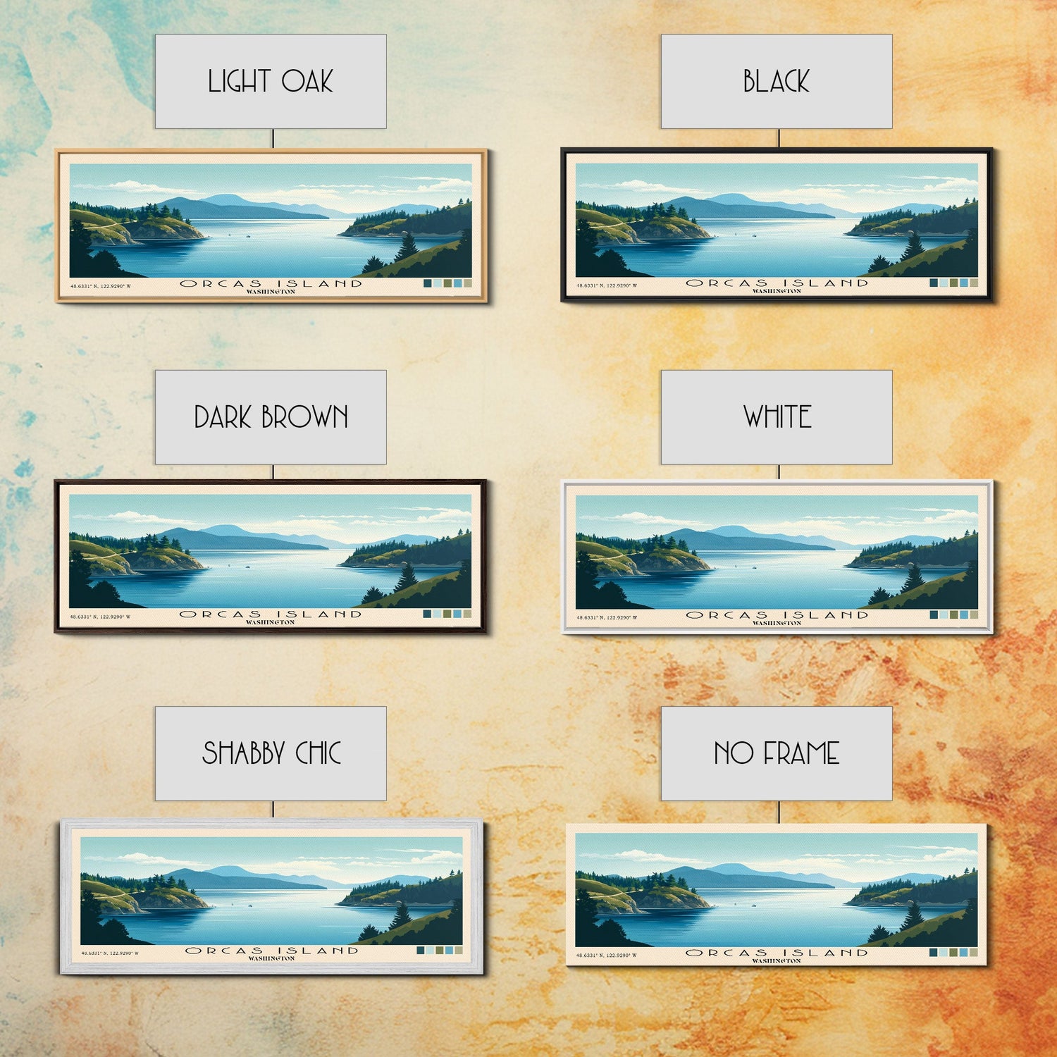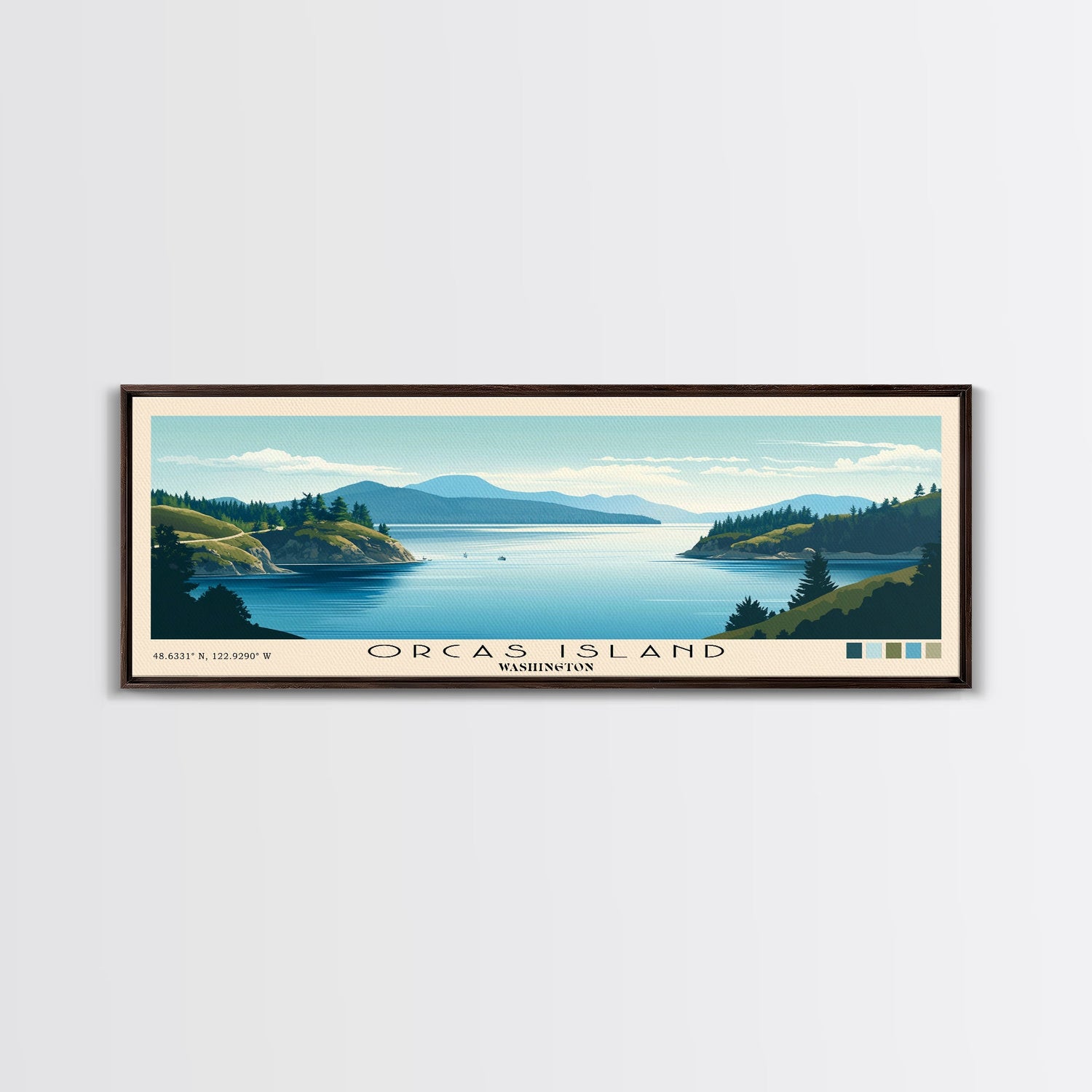 Orcas Island, Washington Panoramic Beach Print, Vacation Gift, Washington Wall Art, Framed Canvas Print, Framed Beach Painting - 10x30 Inches / No Frame - Stretched Canvas Only is backordered and will ship as soon as it is back in stock.