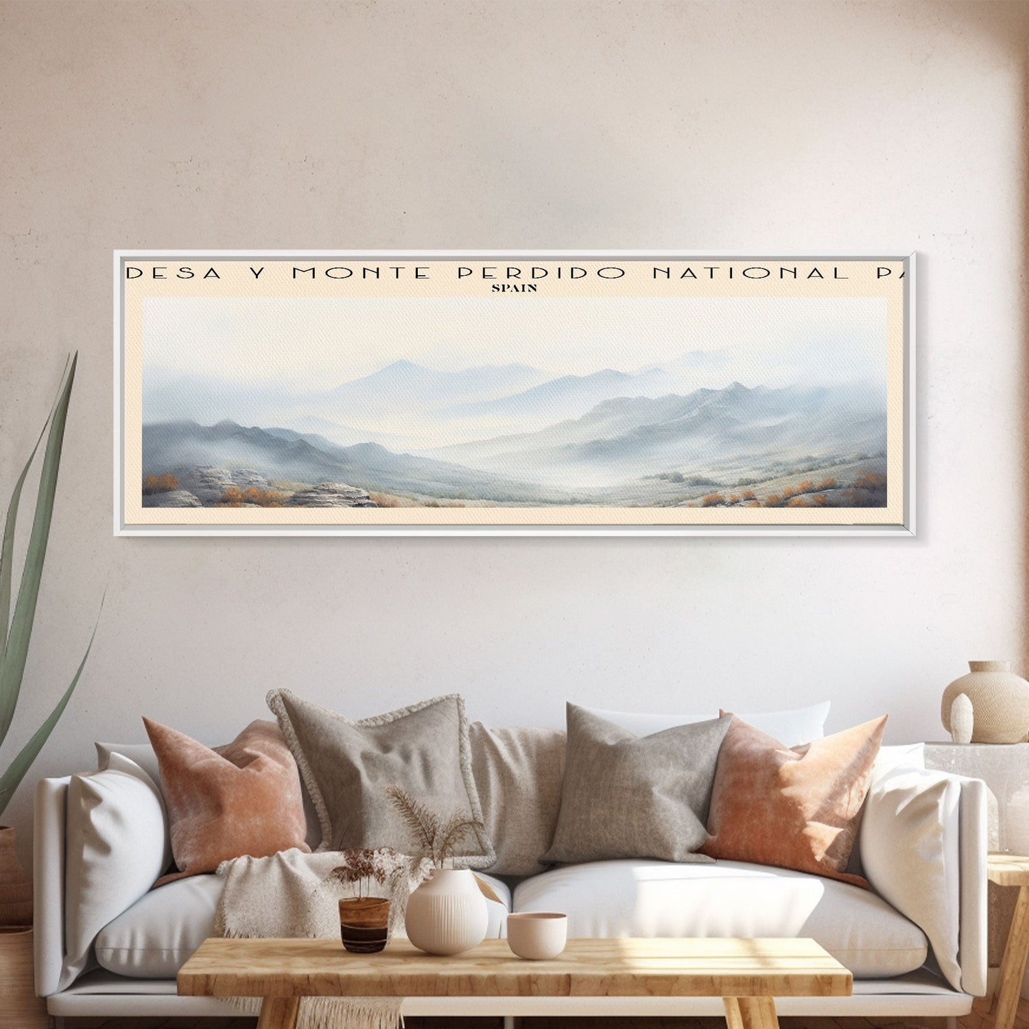 Ordesa y Monte Perdido National Park COUNTRY | Framed Travel Poster Canvas Print | Trendy Wall Art | Watercolor Painting | Living Room Art | Unique Art - 10x30 Inches / No Frame - Stretched Canvas Only is backordered and will ship as soon as it is back in stock.