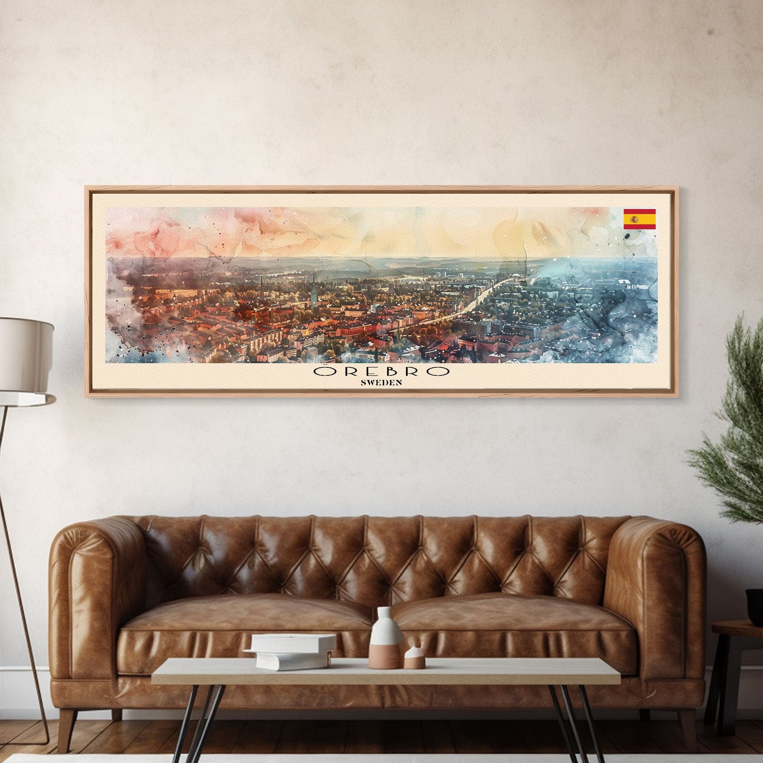 Orebro Sweden Travel Art, City Art, Framed Canvas Print or Metal Wall Art, Europe Travel Poster, Panoramic Wall Art, Extra Wide Wall Art
