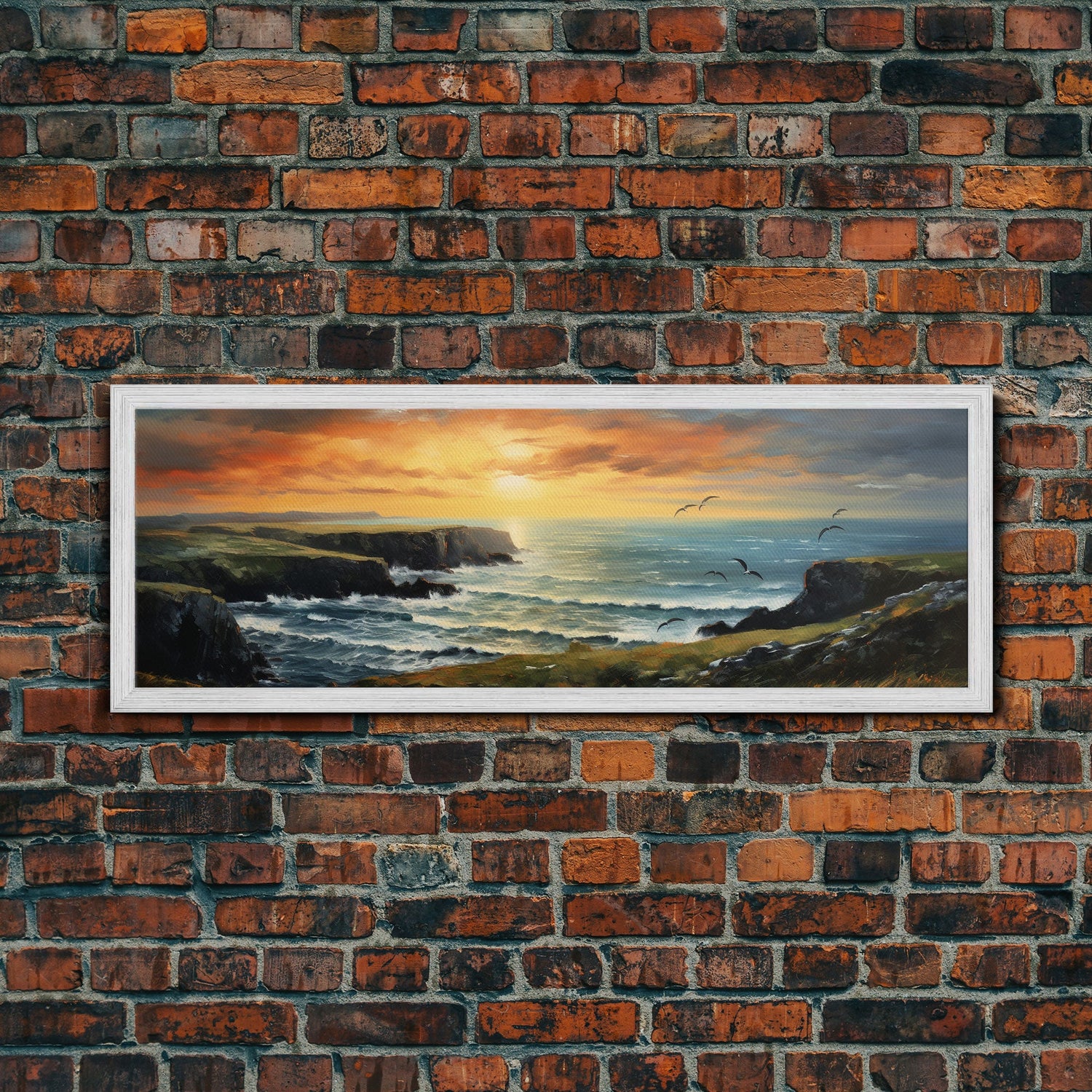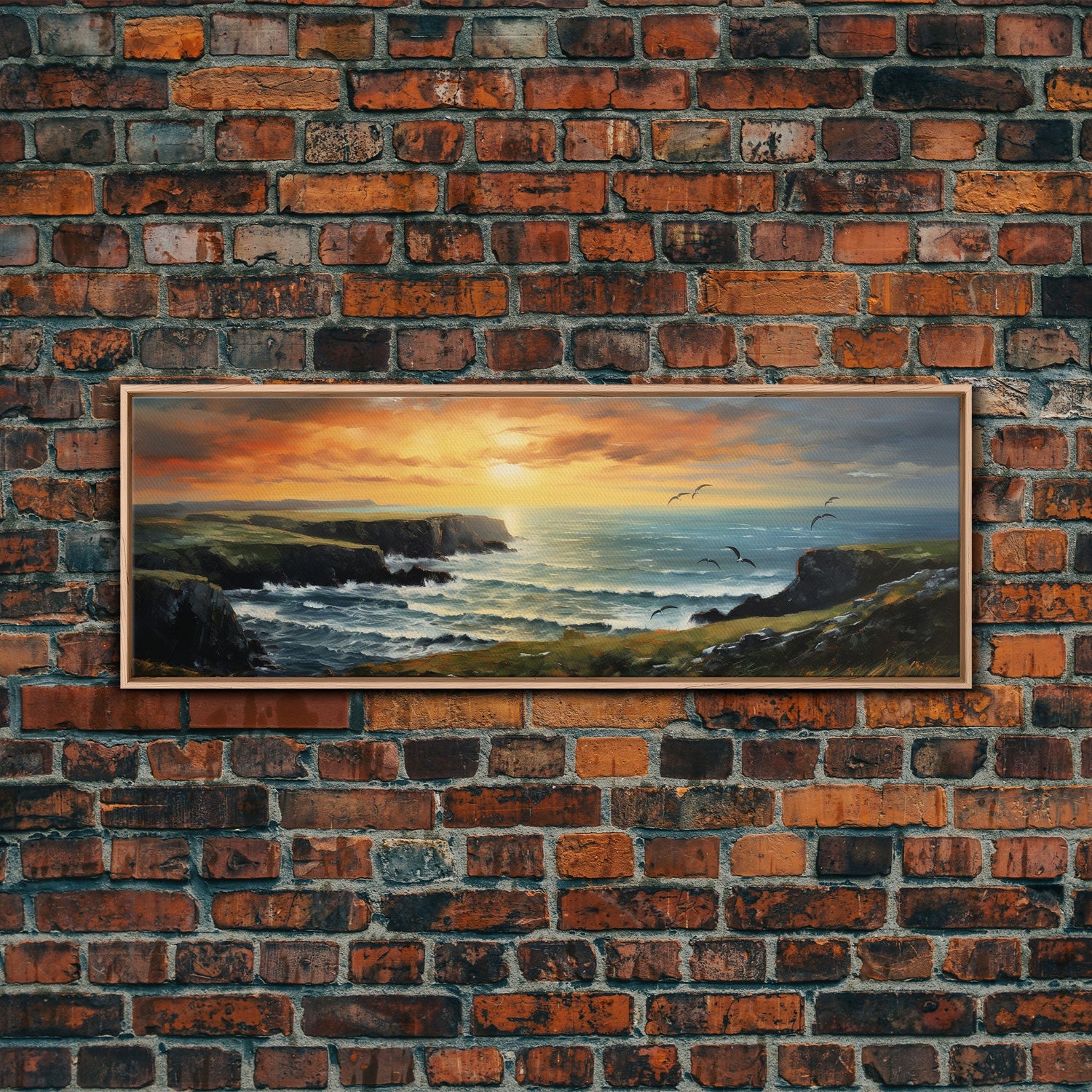 Original Seascape Framed Canvas Print of oil Painting, Modern Blue Ocean Painting, Custom Sea Wave Art Living room Home Decor Large Wall Art - 10x30 Inches / No Frame - Stretched Canvas Only is backordered and will ship as soon as it is back in stock.