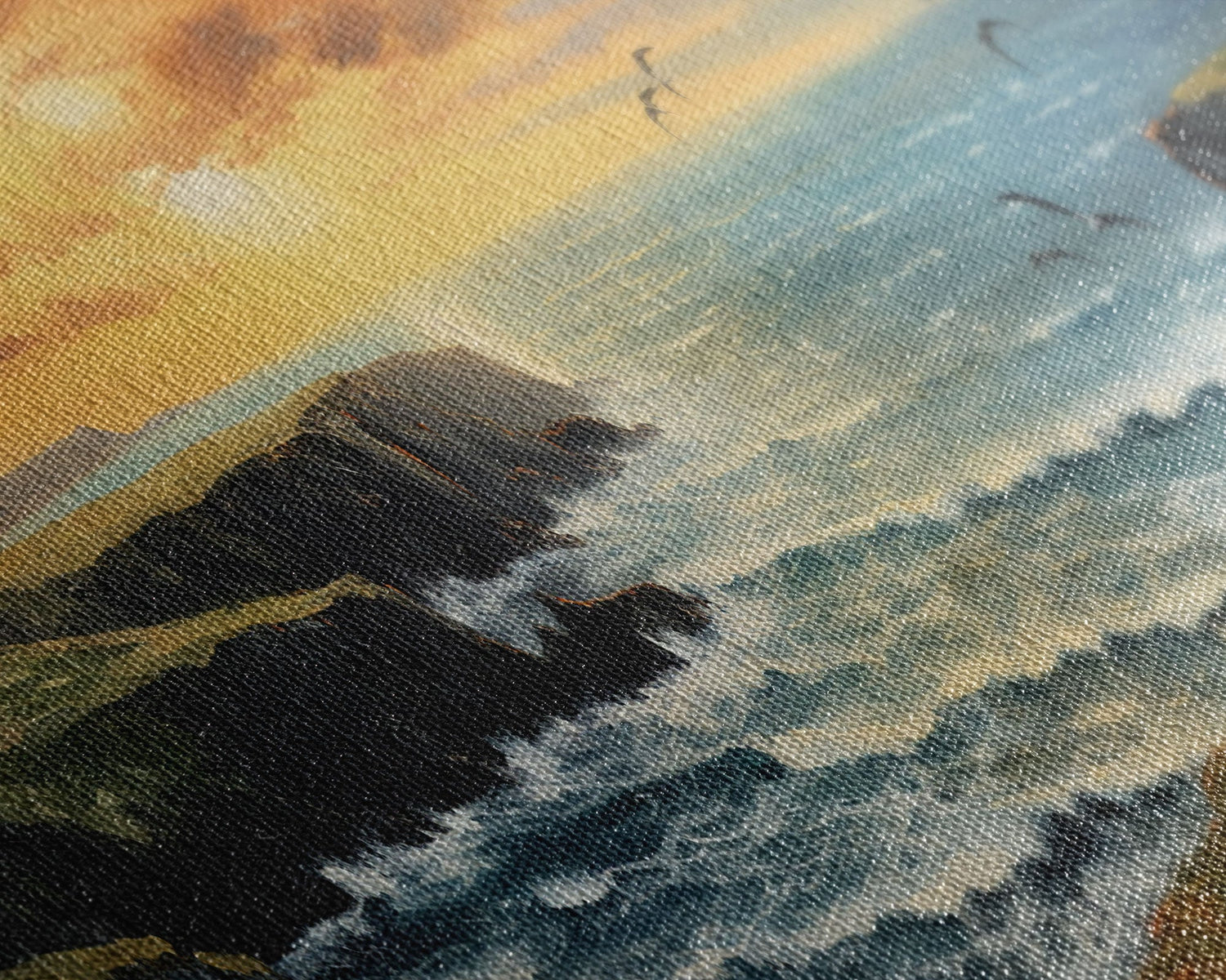 Original Seascape Framed Canvas Print of oil Painting, Modern Blue Ocean Painting, Custom Sea Wave Art Living room Home Decor Large Wall Art