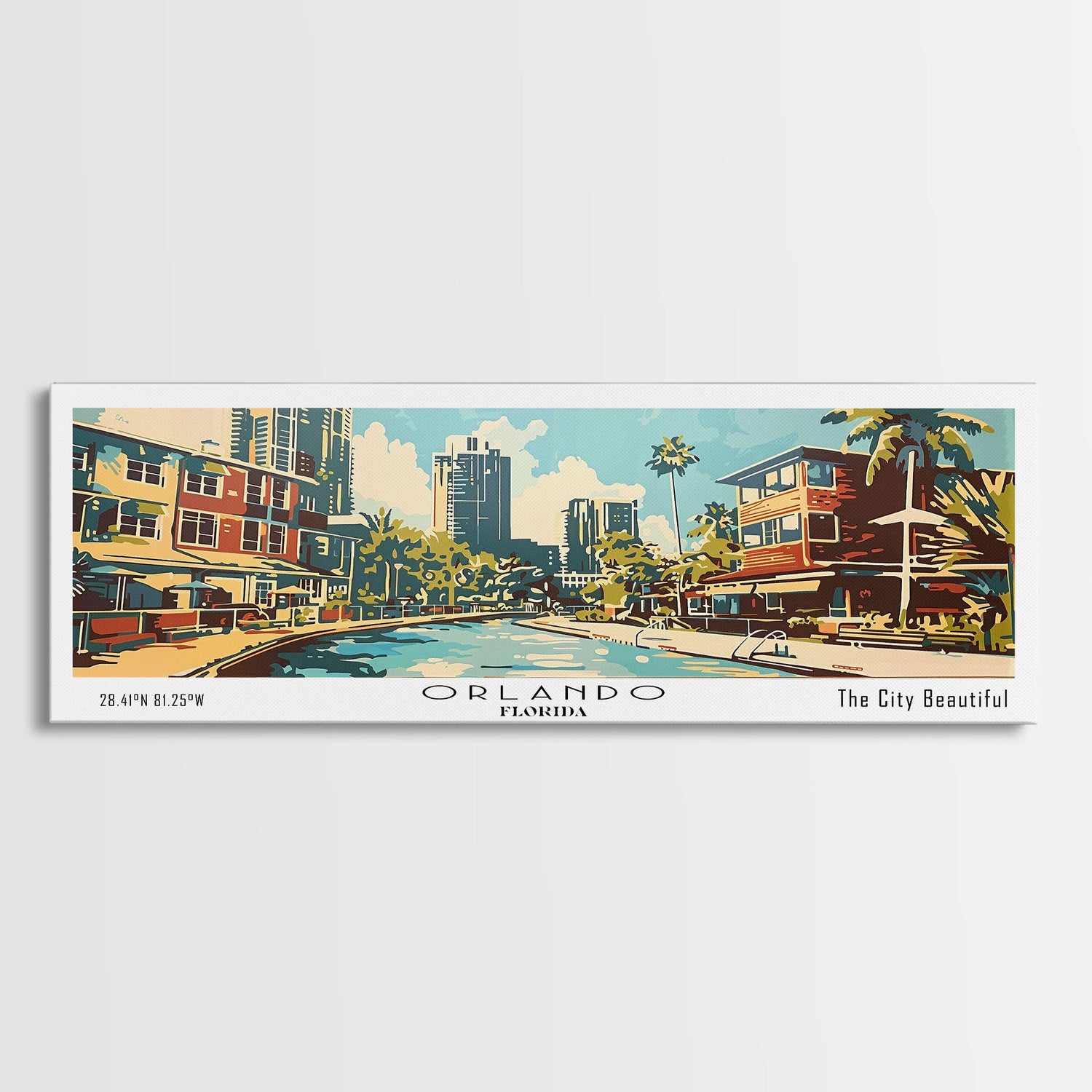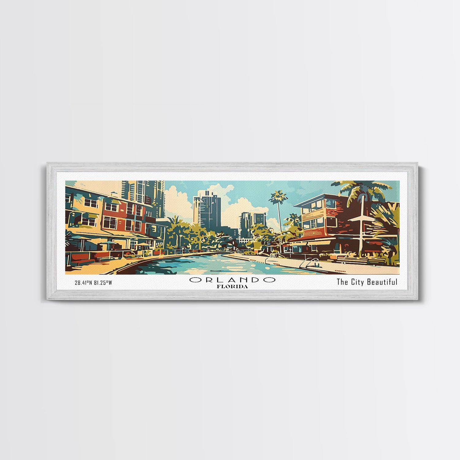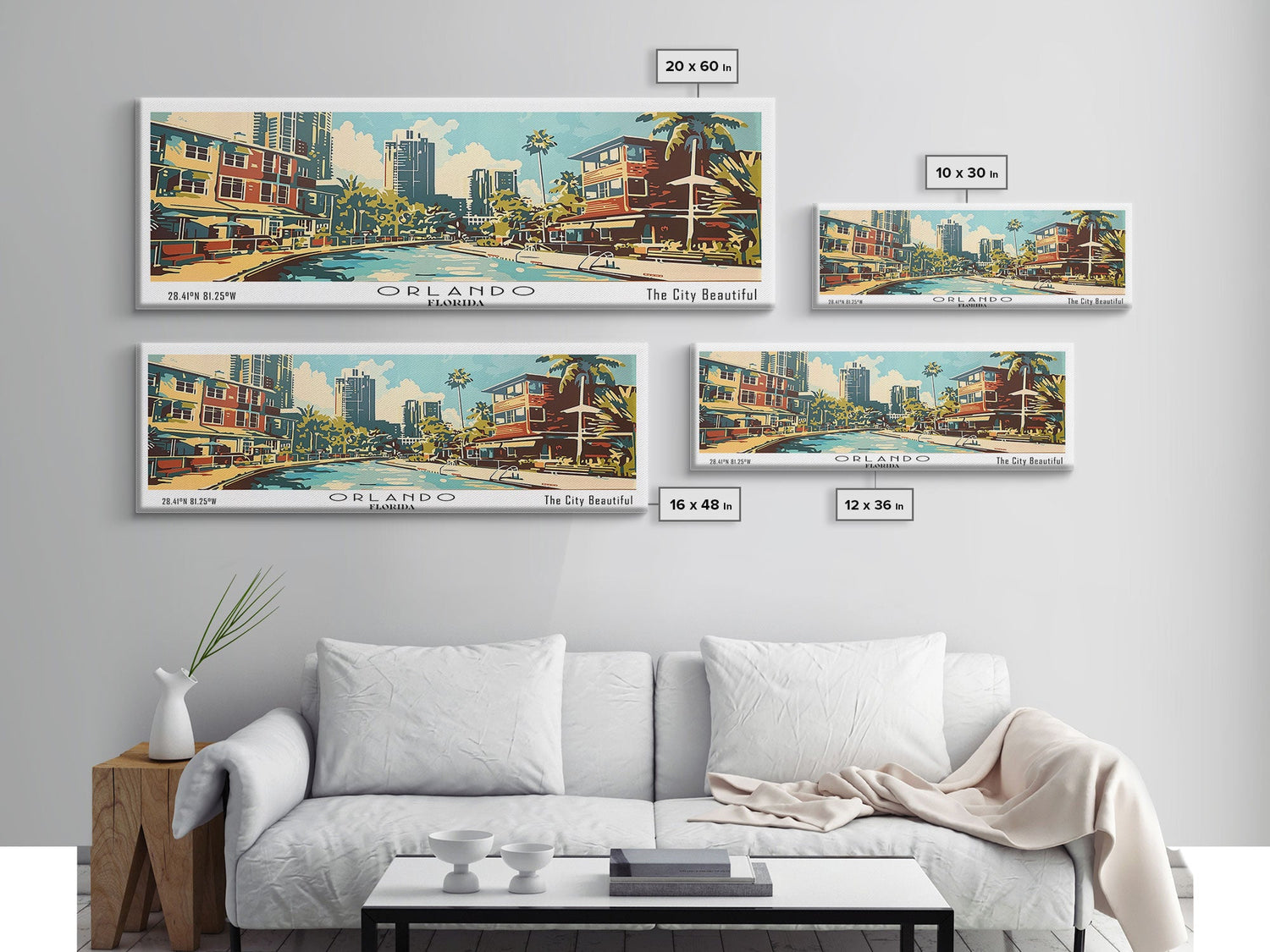 Orlando Florida Panoramic Wall Art, Mid Century Modern Framed Canvas Print, Retro Pop Art Travel Poster, Home Decor, Office Art, Gift Idea, Living Room Wall Hanging