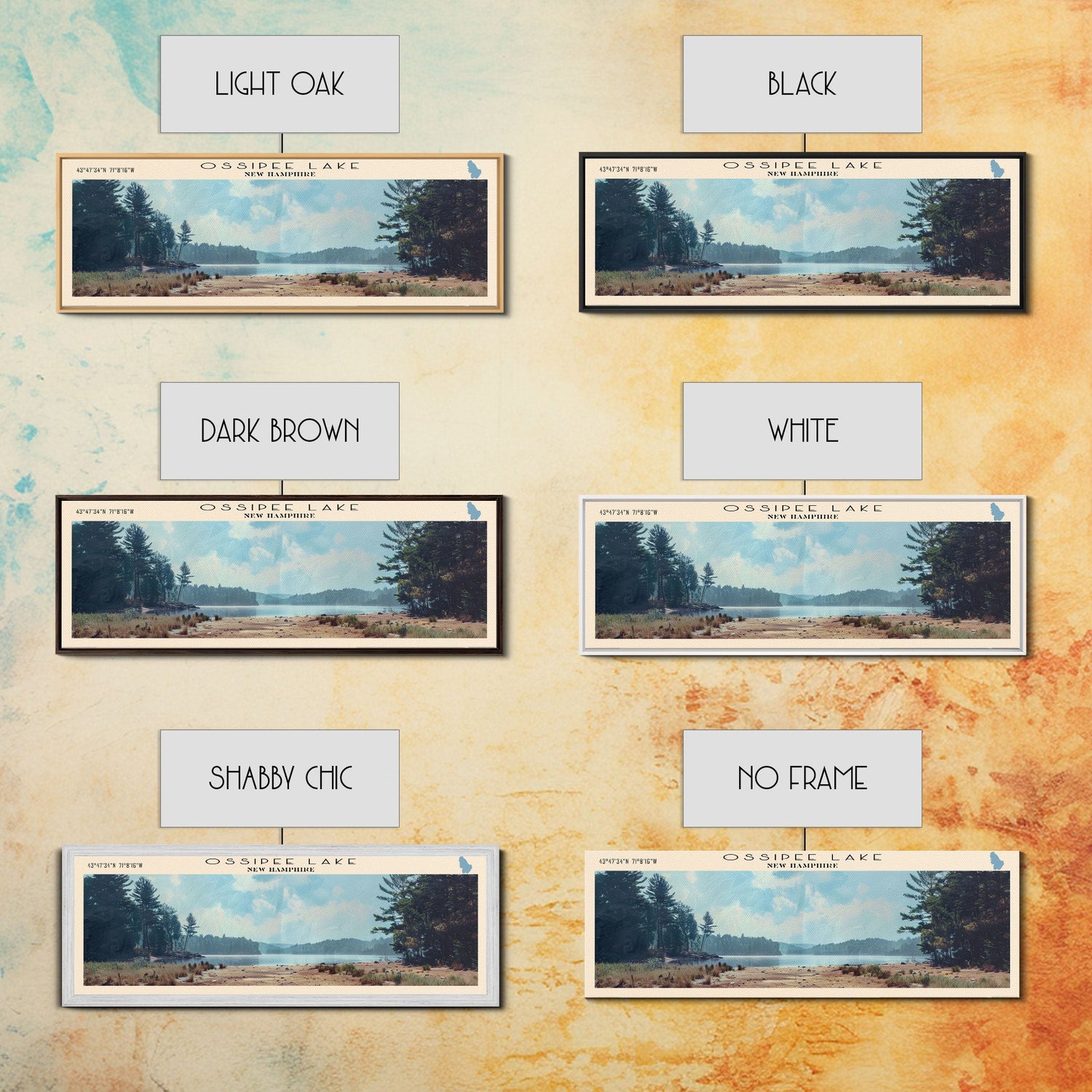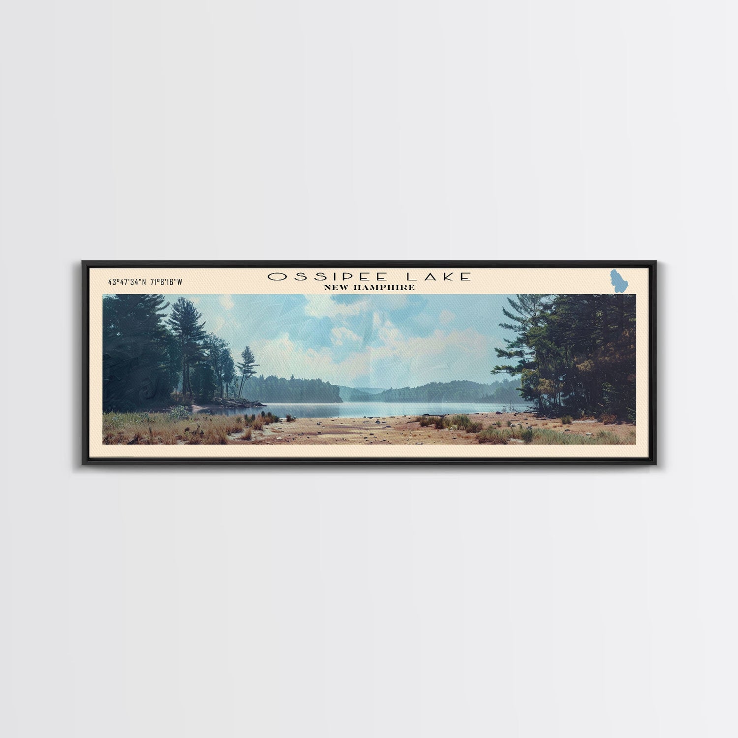 Ossipee Lake New Hampshire Framed Canvas Print, Lake House Decor, Panoramic Wall Art, Travel Poster, Scenic Landscape Painting, Contemporary Art