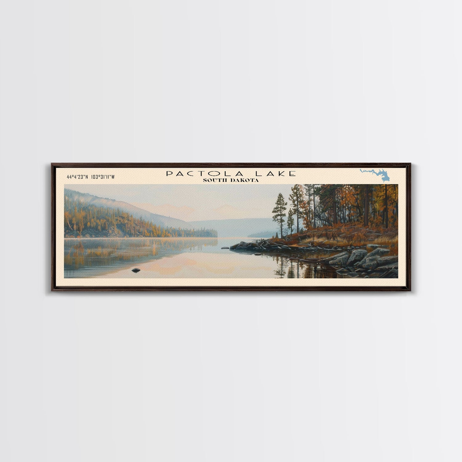 Pactola Lake South Dakota Framed Canvas Print, Lake House Decor, Panoramic Travel Poster, Landscape Painting, Contemporary Art