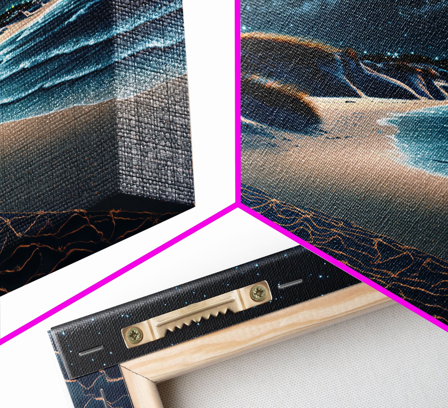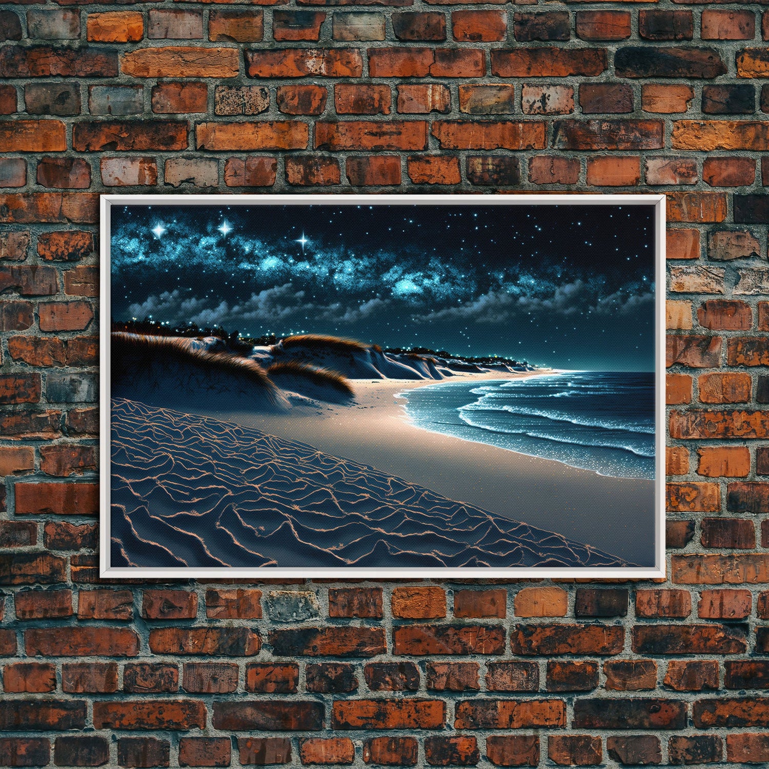 Painting Of a Beach at Night, Canvas Print, Framed Canvas Art, Starry Night Sky, Beach House Art, Large Living Room Art
