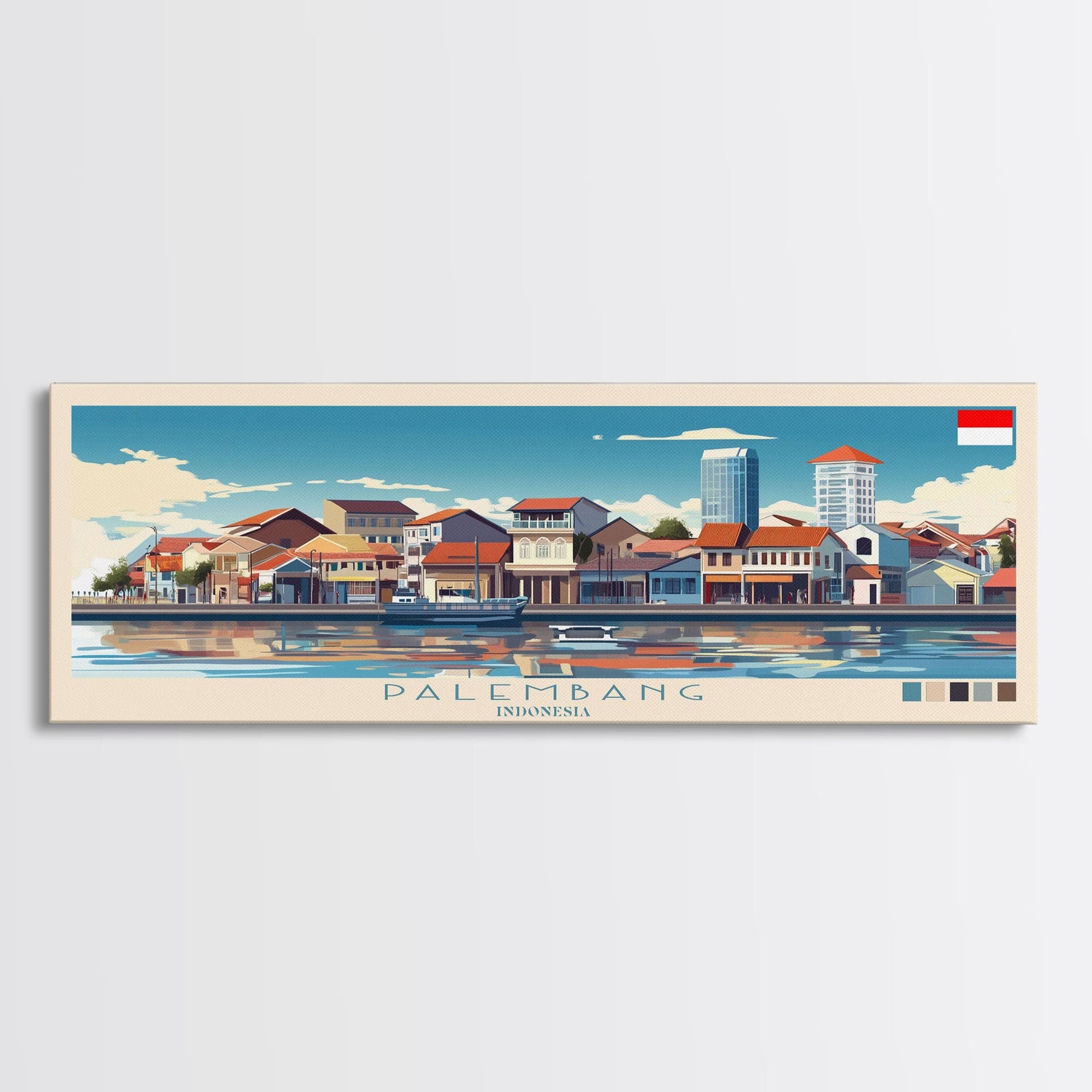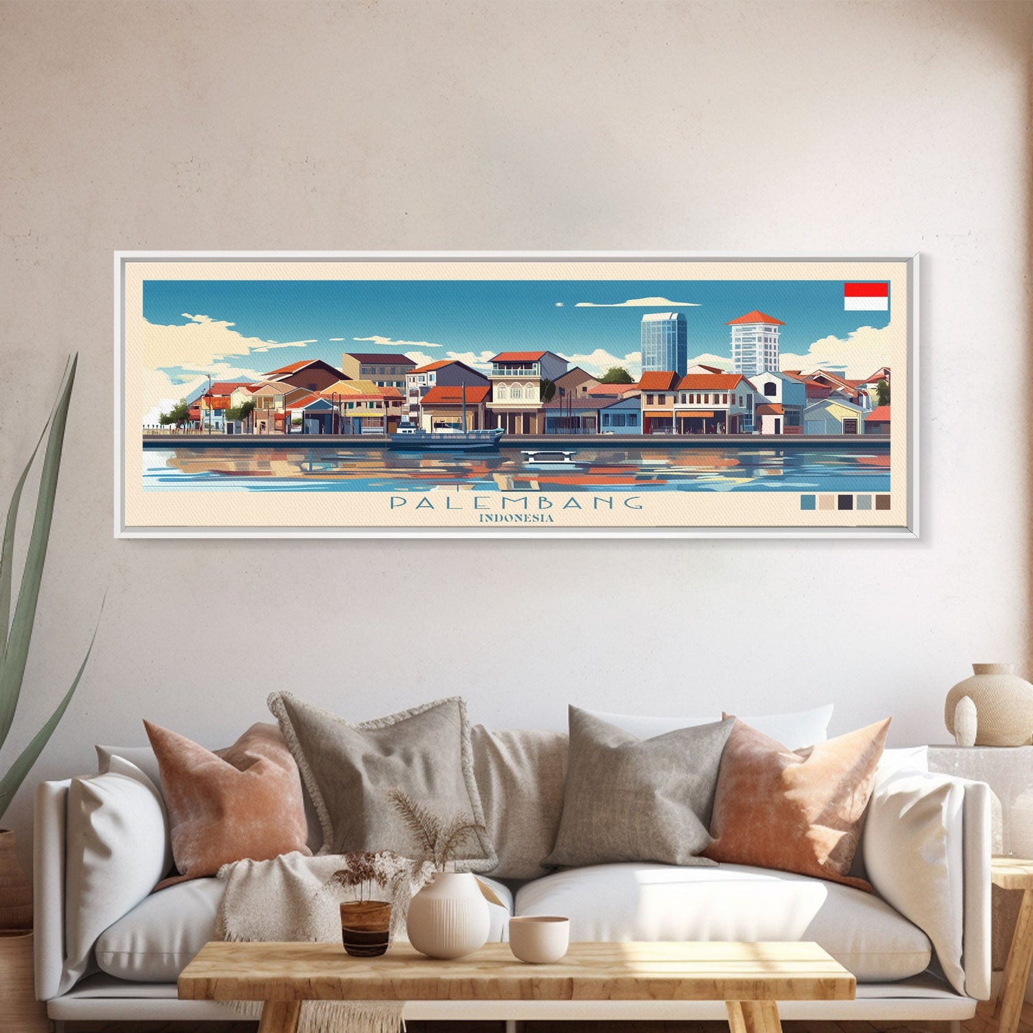 Palembang, Indonesia Panoramic Travel Poster Canvas Print, Palembang, Indonesia Painting, Indonesia Art, Palembang Travel Art, Guest Room Painting