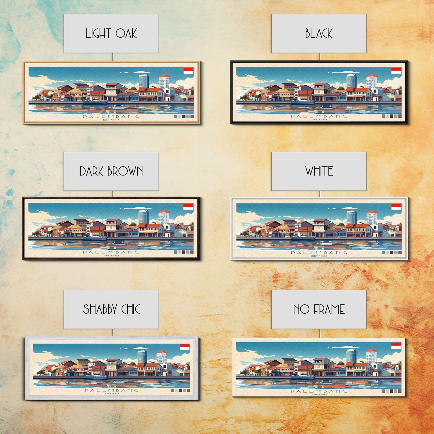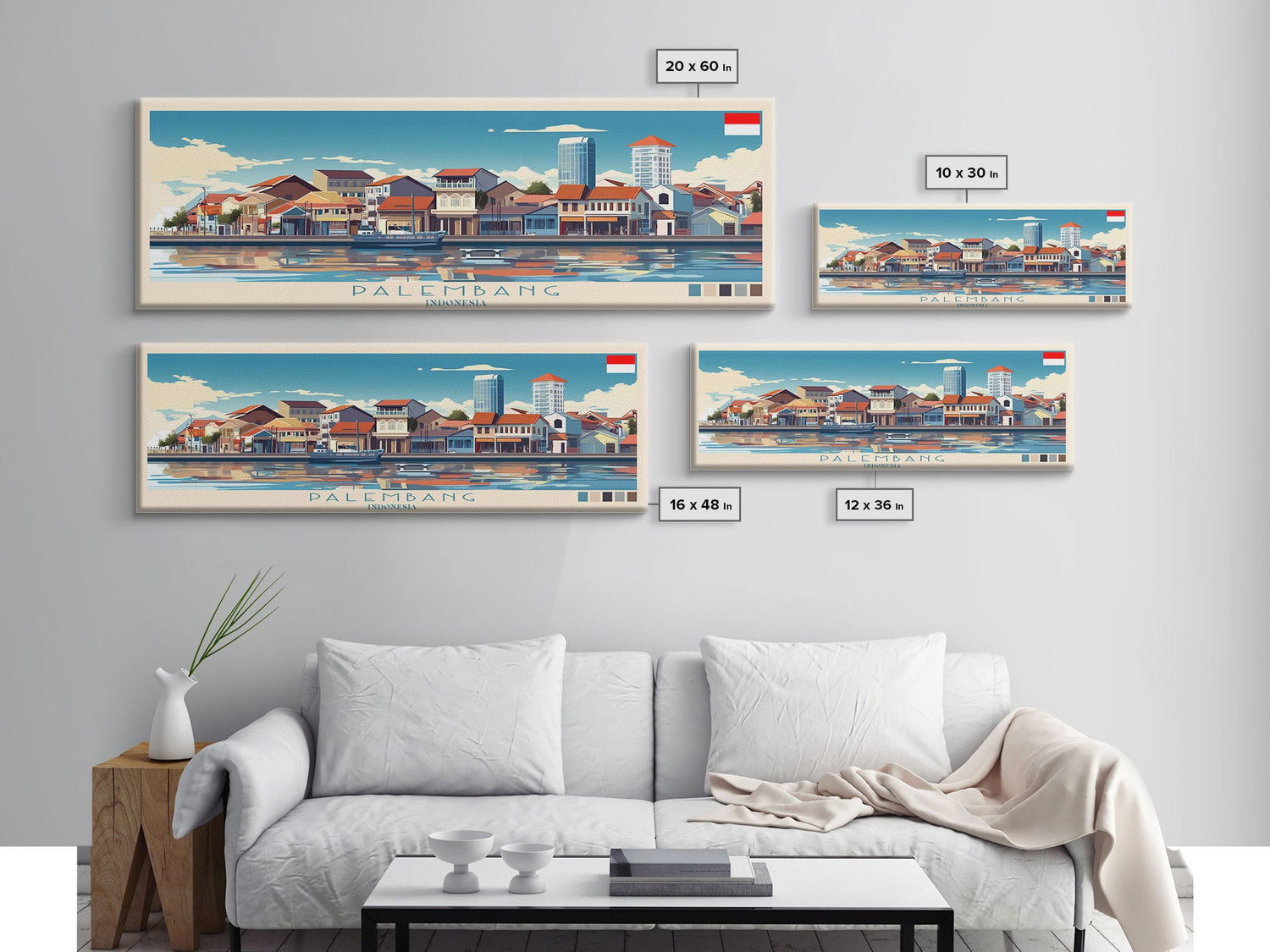 Palembang, Indonesia Panoramic Travel Poster Canvas Print, Palembang, Indonesia Painting, Indonesia Art, Palembang Travel Art, Guest Room Painting - 10x30 Inches / No Frame - Stretched Canvas Only is backordered and will ship as soon as it is back in stock.