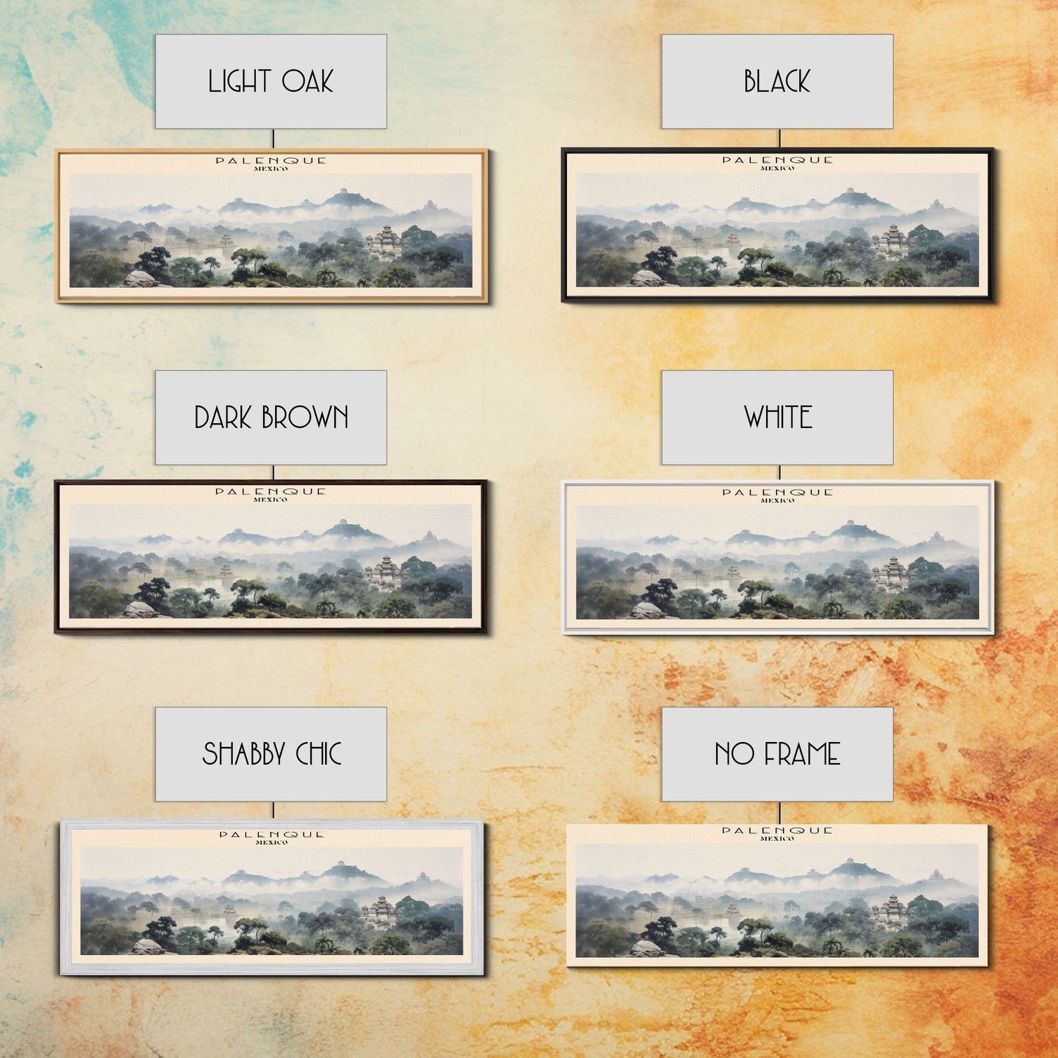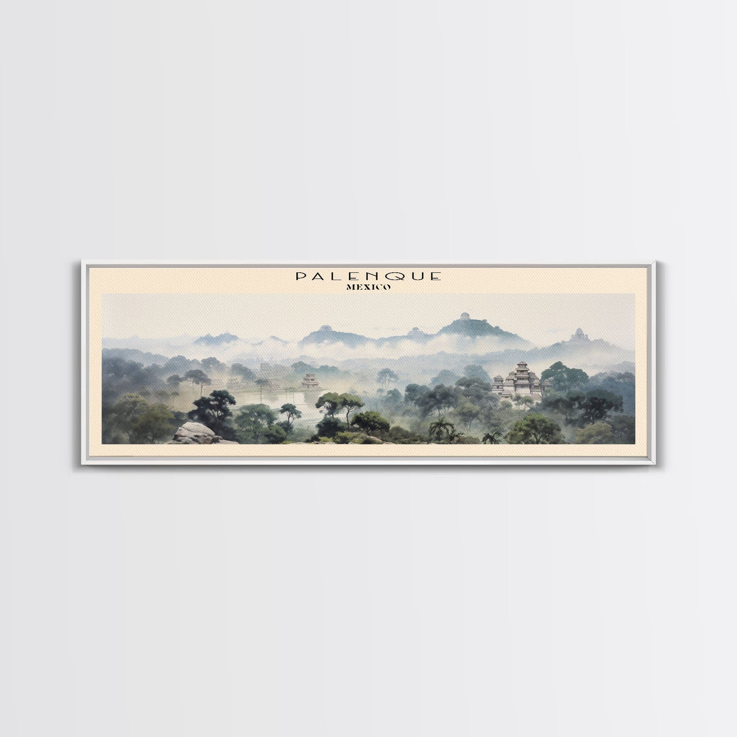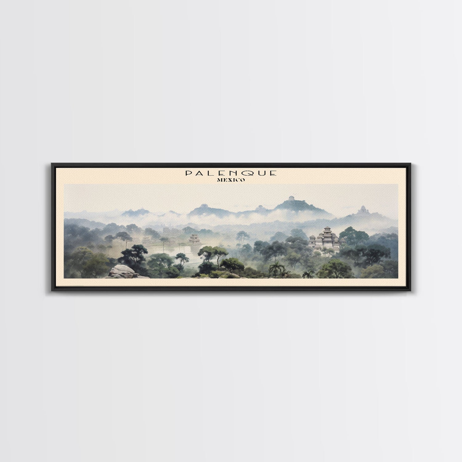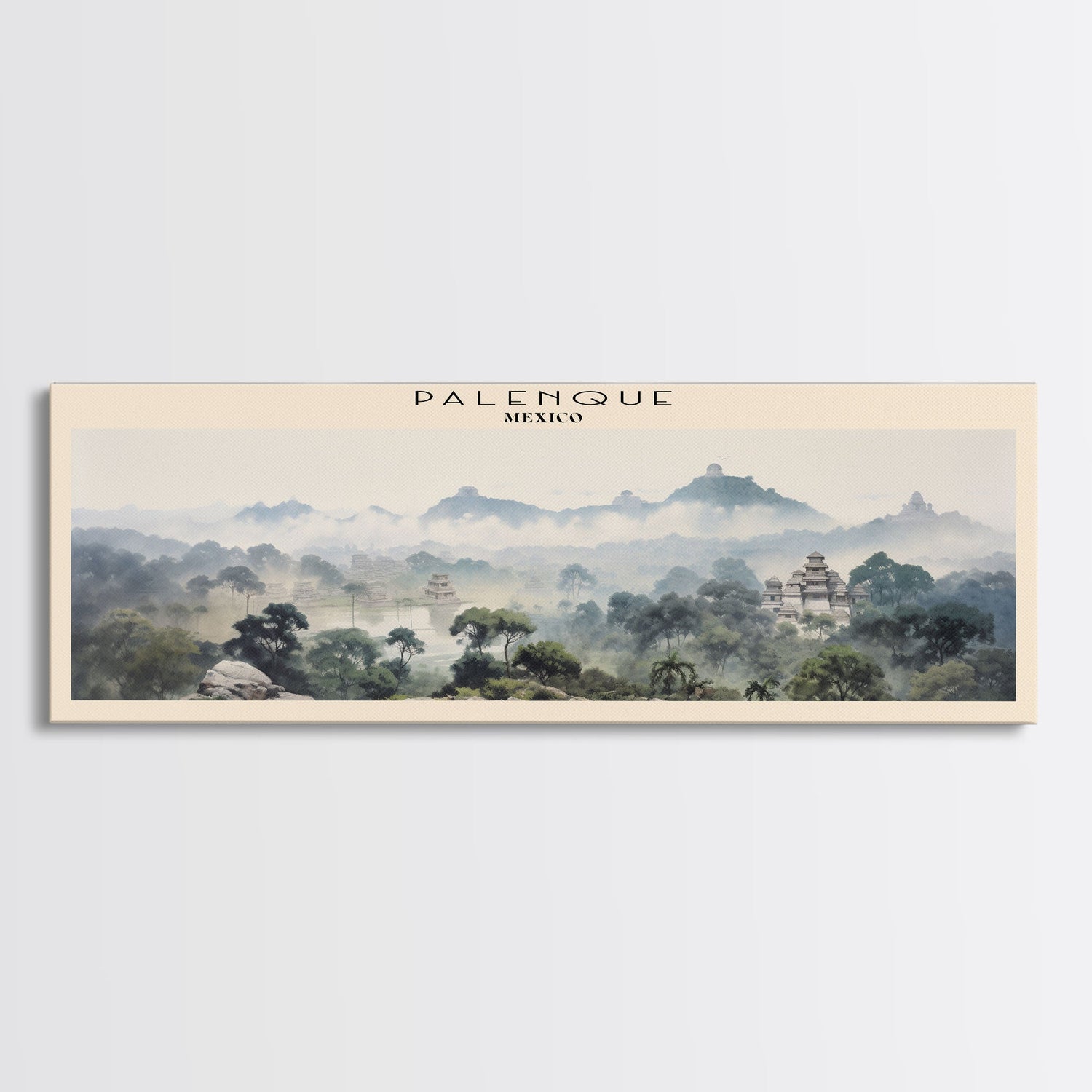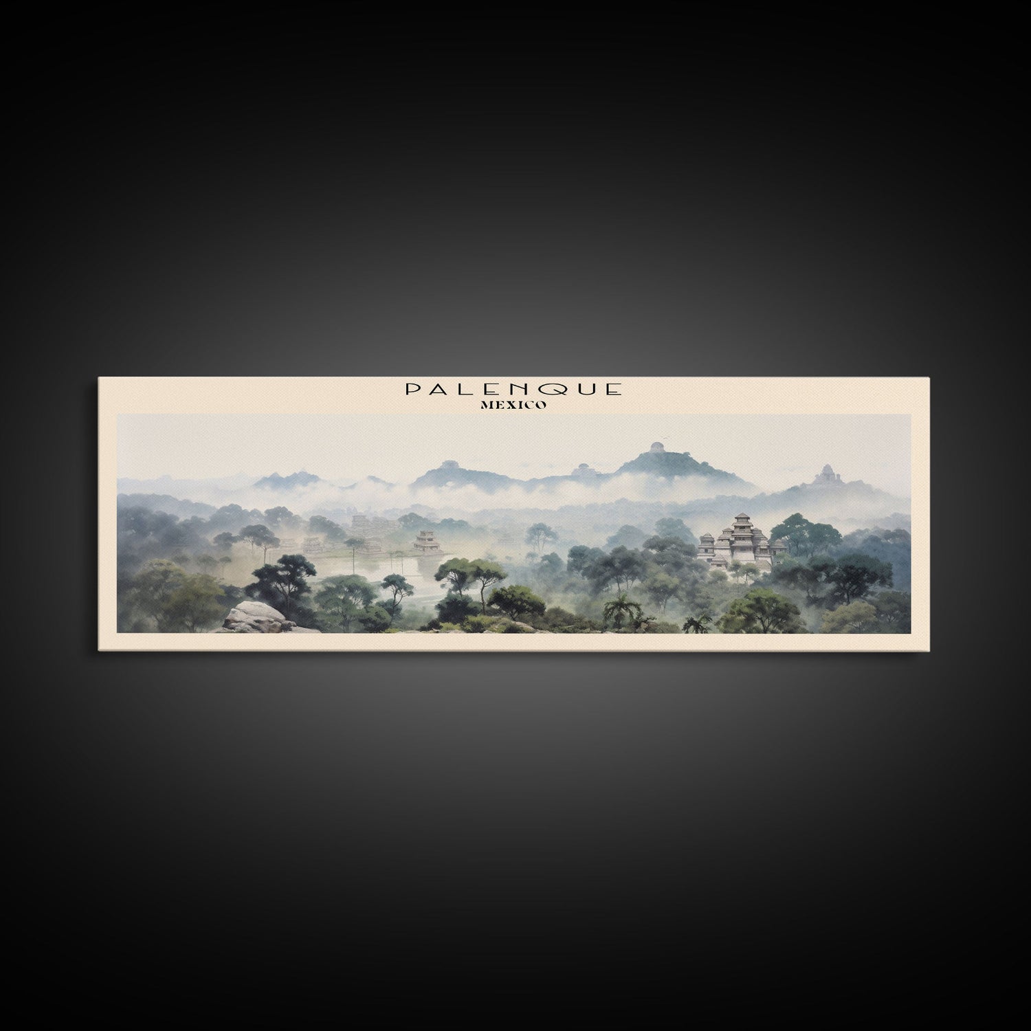 Palenque COUNTRY | Framed Travel Poster Canvas Print | Trendy Wall Art | Watercolor Painting | Living Room Art | Unique Art - 10x30 Inches / No Frame - Stretched Canvas Only is backordered and will ship as soon as it is back in stock.