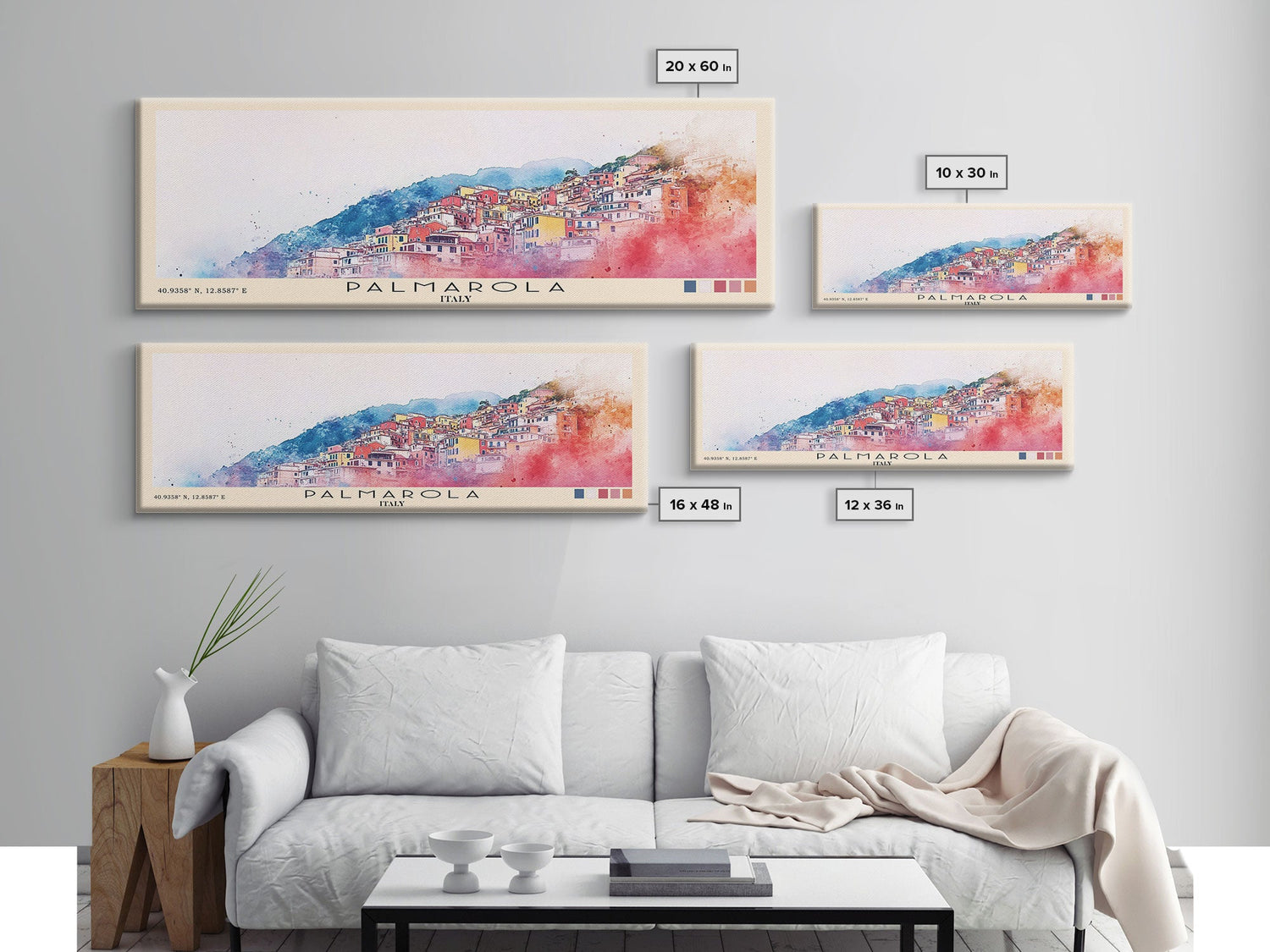 Palmarola, Italy Watercolor Print, Vacation Gift, Italy Wall Art, Beach Painting, Beach Decor, Large Wall Art, Wood Frame Art - 10x30 Inches / No Frame - Stretched Canvas Only is backordered and will ship as soon as it is back in stock.