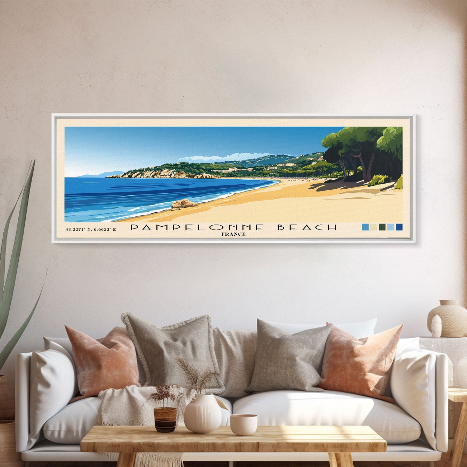 Pampelonne Beach, France Panoramic Print, Vacation Gift, France Wall Art, Beach Painting, Beach Decor, Beach Or Lakehouse Art - 10x30 Inches / No Frame - Stretched Canvas Only is backordered and will ship as soon as it is back in stock.
