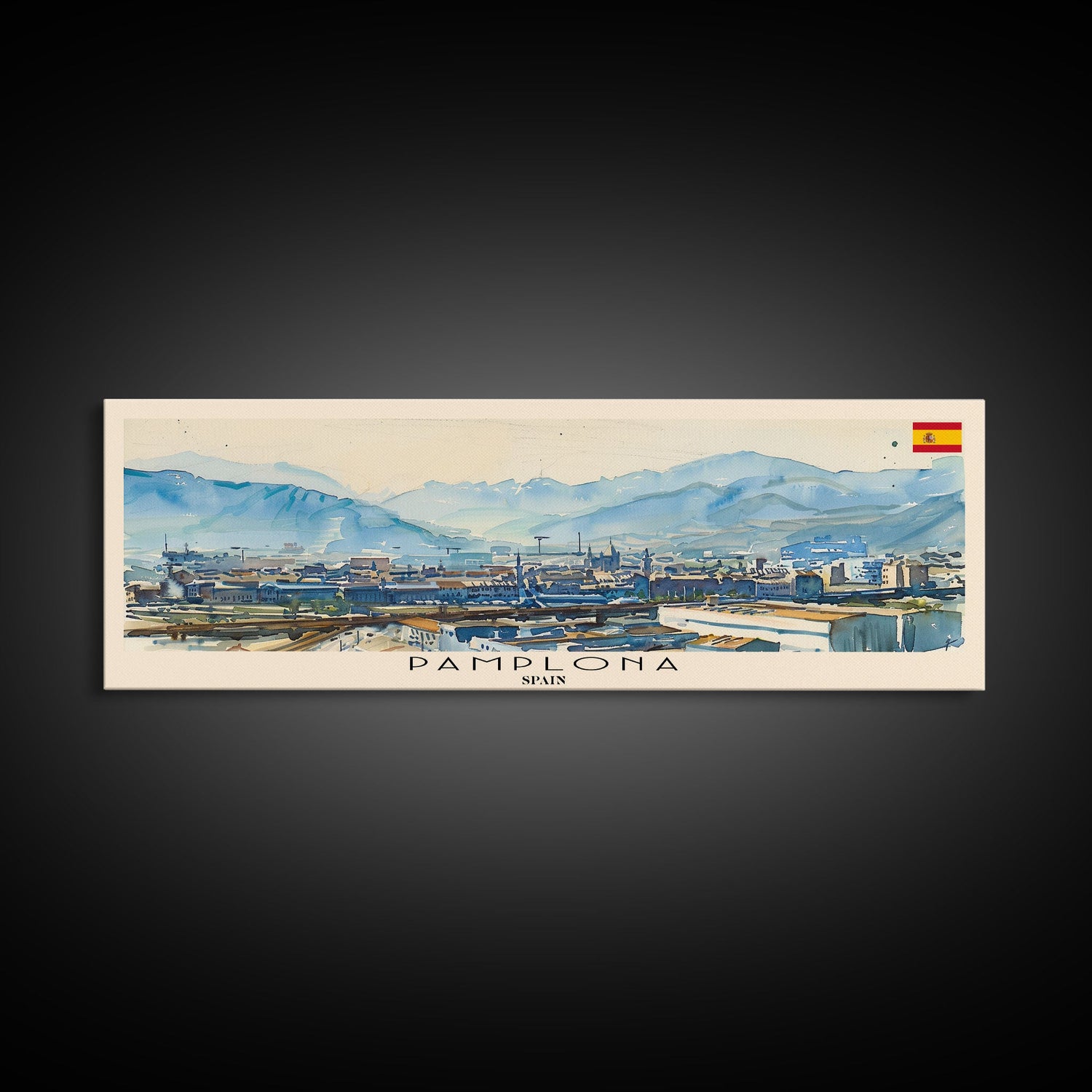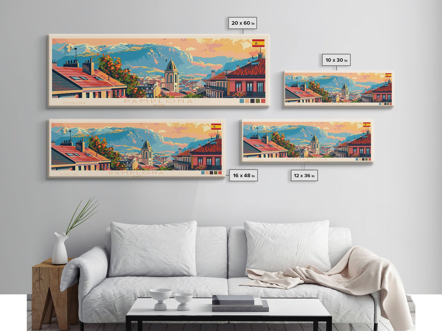 Pamplona Spain Panoramic Travel Poster, Framed Canvas Print or Metal Wall Art, Travel Art, Home Decor, Panoramic Painting, Midcentury Art