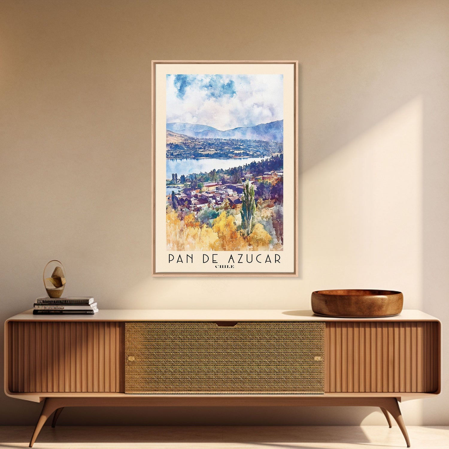 Pan de Azucar, Chile Watercolor Beach Print, Vacation Gift, Chile Wall Art, Framed Canvas Print, Framed Beach Painting