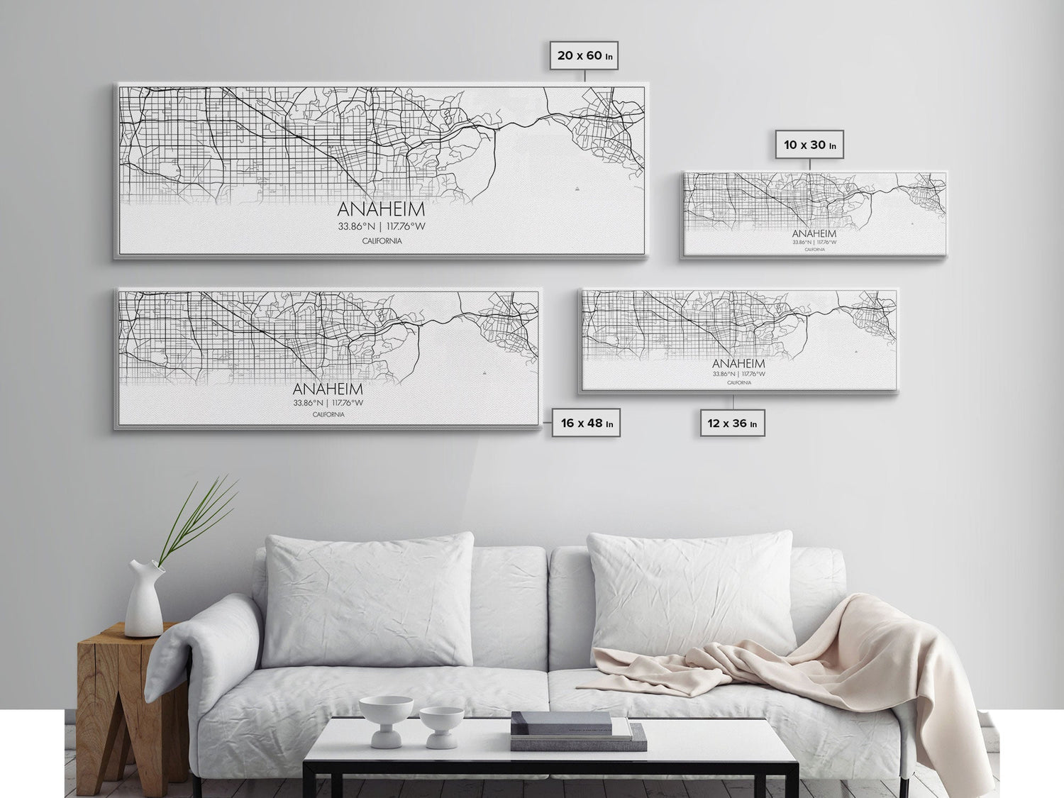 Panoramic Anaheim City Map, California Art, Map Print, Minimalist Wall Art, Canvas Art, Housewarming Gift, Street Map Art, Closing Gift - 10x30 Inches / No Frame - Stretched Canvas Only is backordered and will ship as soon as it is back in stock.