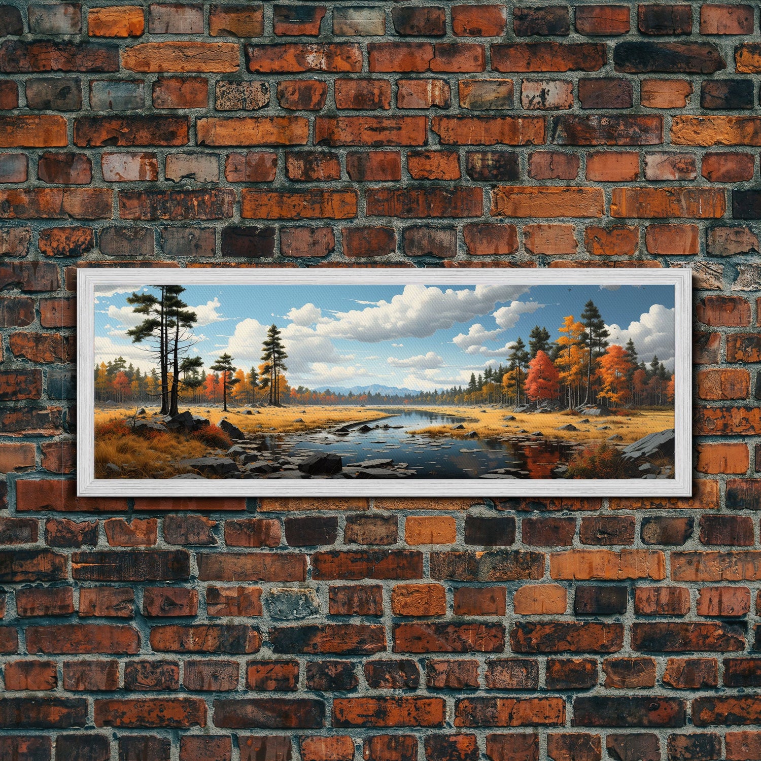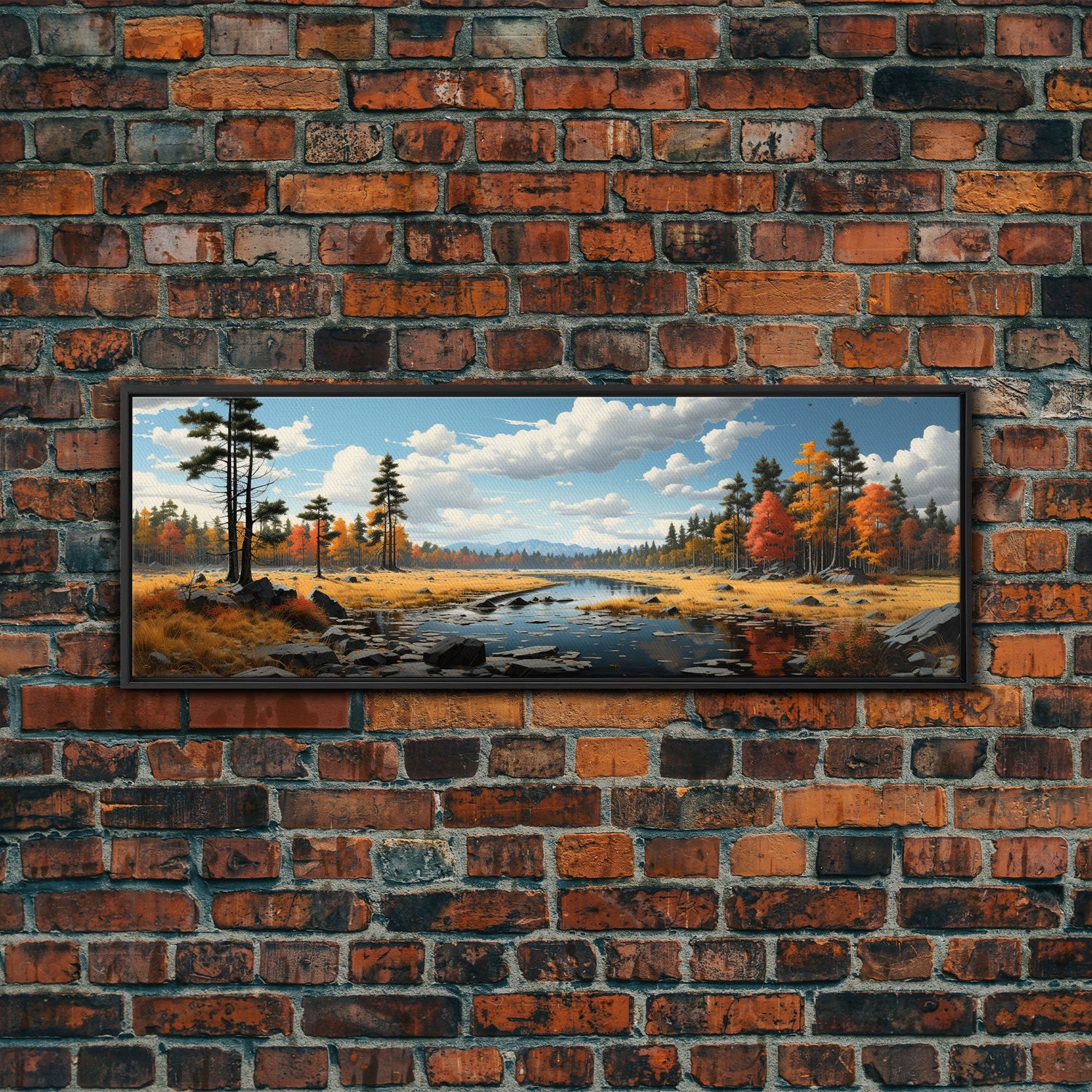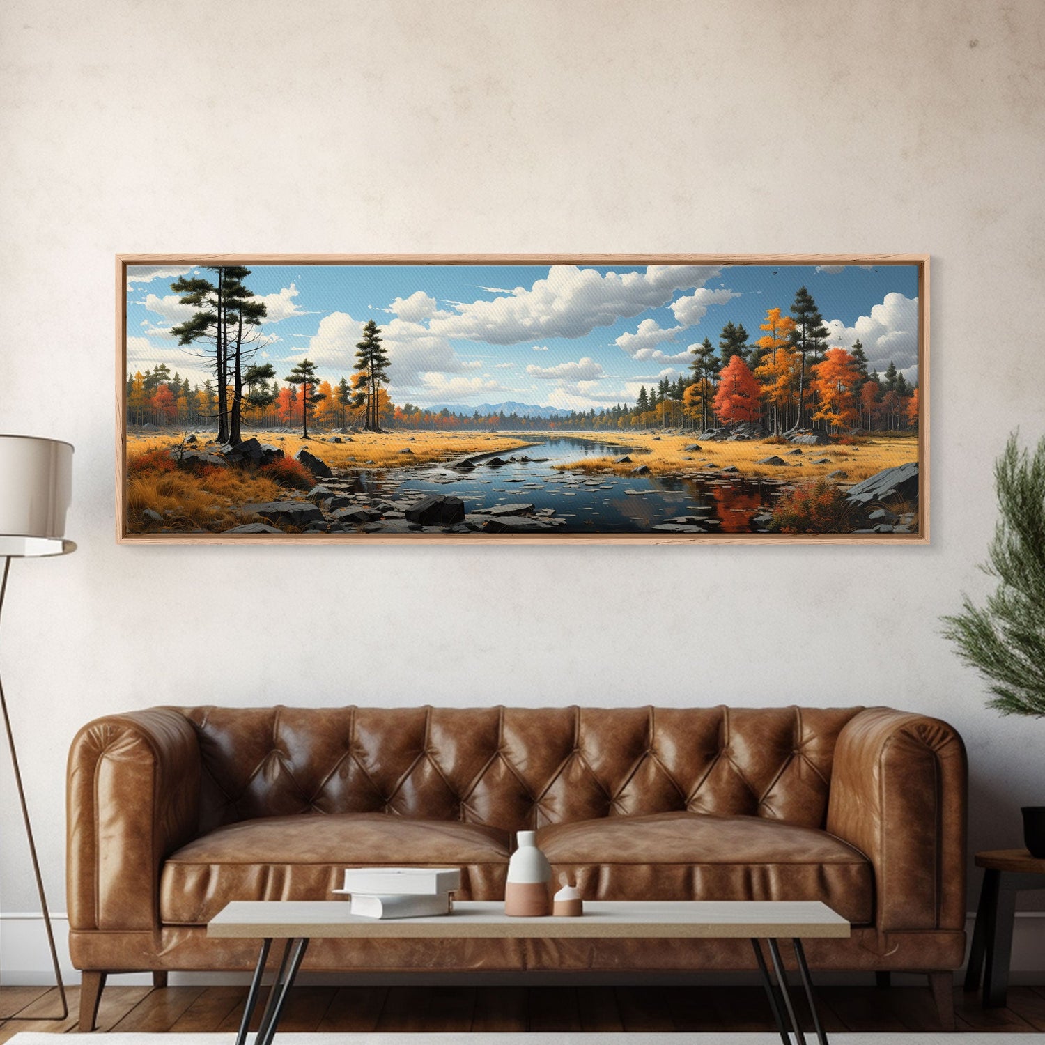 Panoramic Autumn Landscape Painting Framed Canvas Print, Large Wall Art, Fall Centerpiece, Above Fireplace Living Room Art, Mantle Art