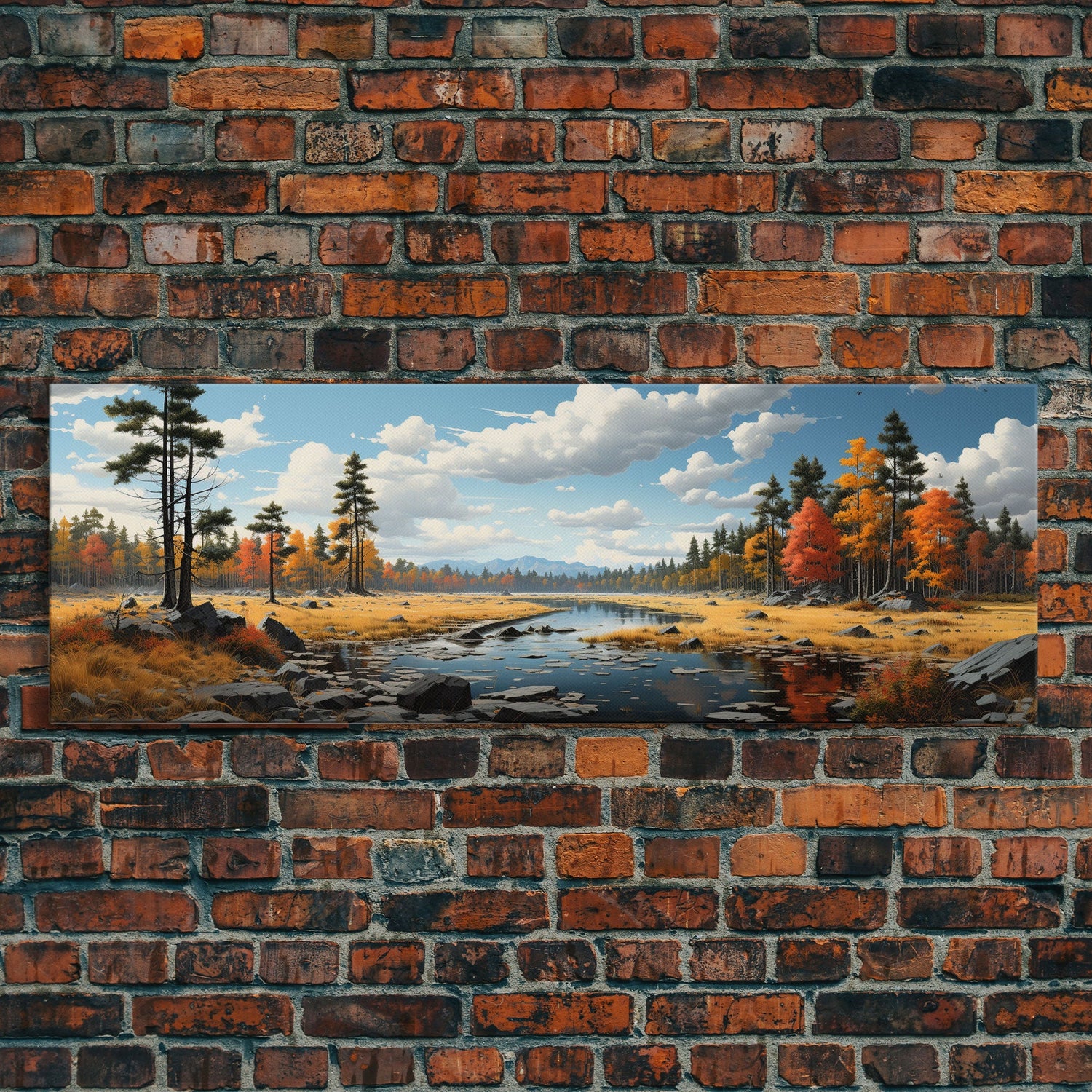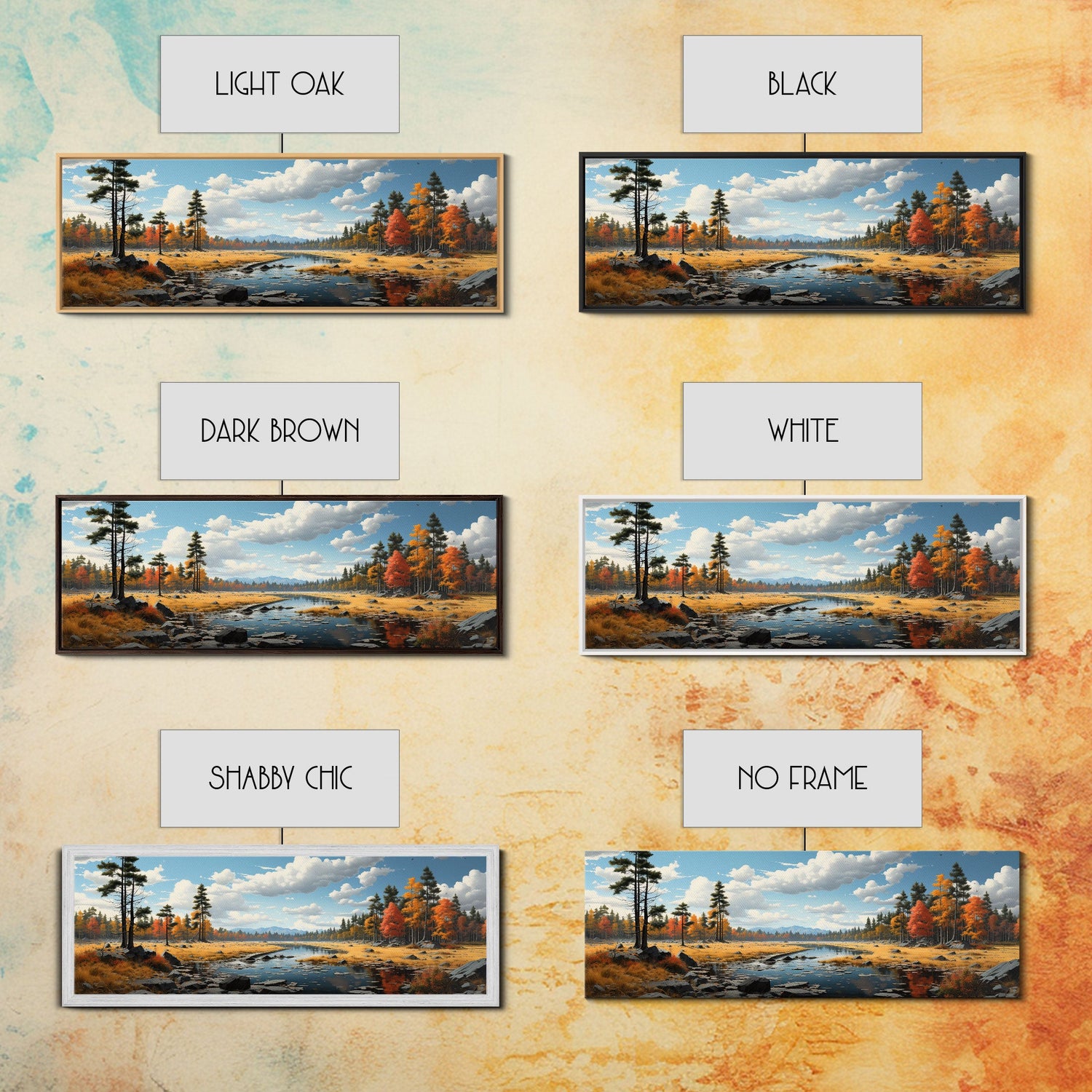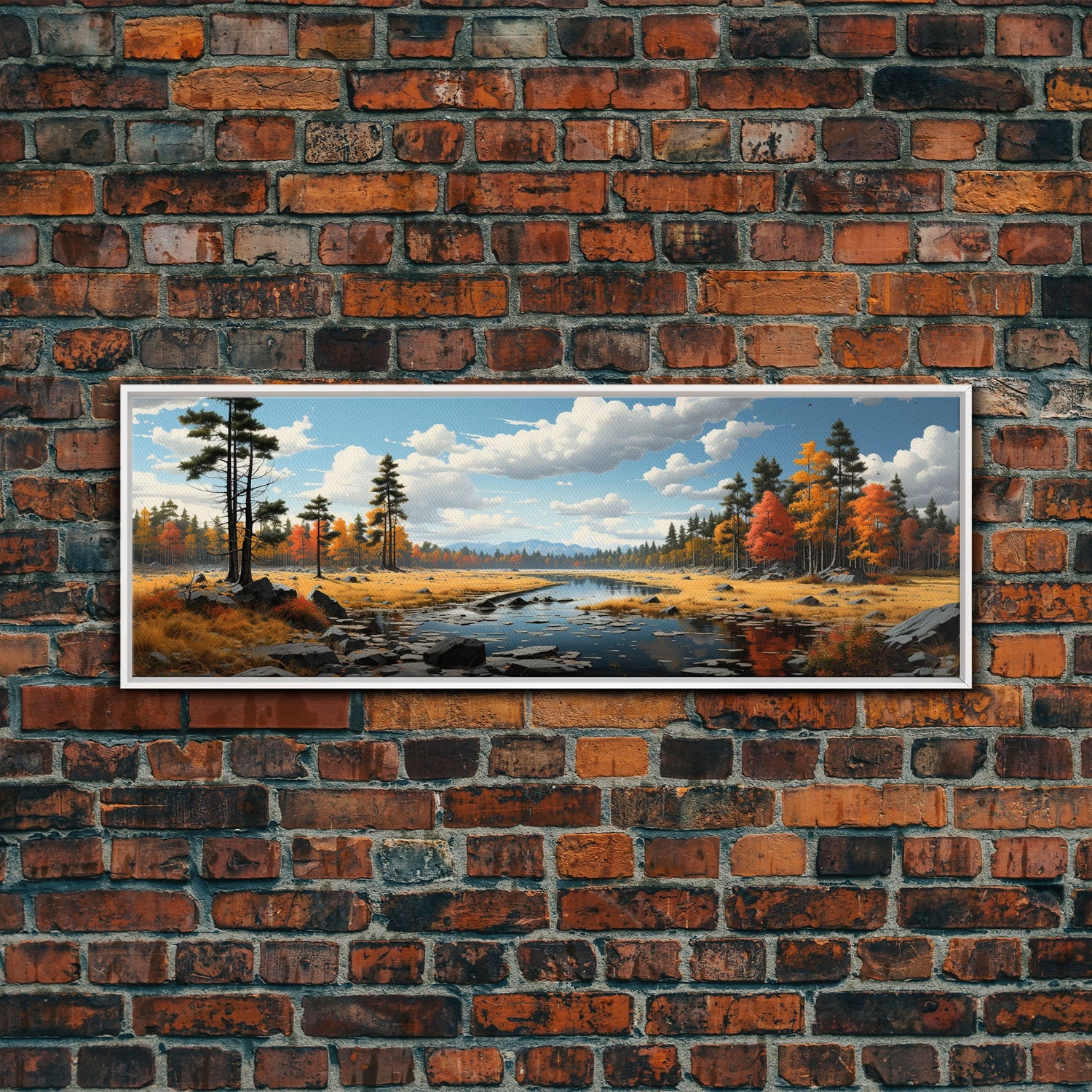 Panoramic Autumn Landscape Painting Framed Canvas Print, Large Wall Art, Fall Centerpiece, Above Fireplace Living Room Art, Mantle Art