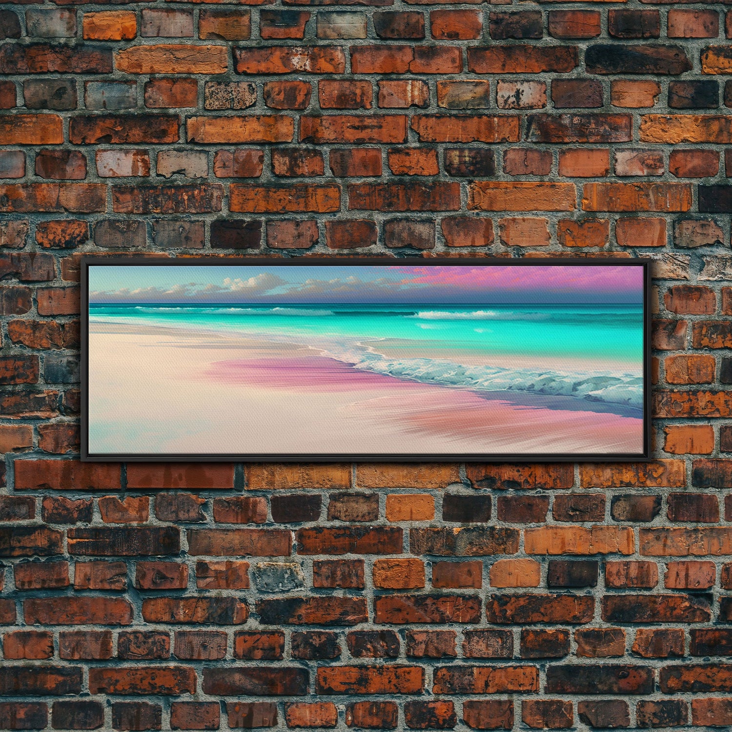 Panoramic Beach Sunset Framed Canvas Print - Perfect for Living Room, Bedroom, or Office Decor | Framed Wall Art, Blue Ocean and Sunset - 10x30 Inches / No Frame - Stretched Canvas Only is backordered and will ship as soon as it is back in stock.