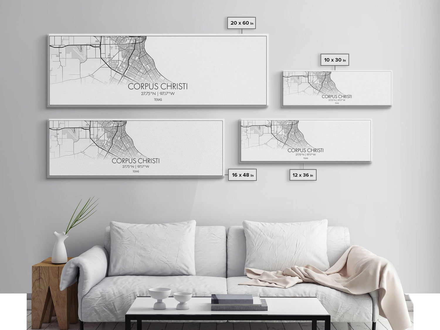 Panoramic Corpus Christi City Map, Texas Art, Map Print, Minimalist Wall Art, Canvas Art, Housewarming Gift, Street Map Art, Closing Gift - 10x30 Inches / No Frame - Stretched Canvas Only is backordered and will ship as soon as it is back in stock.