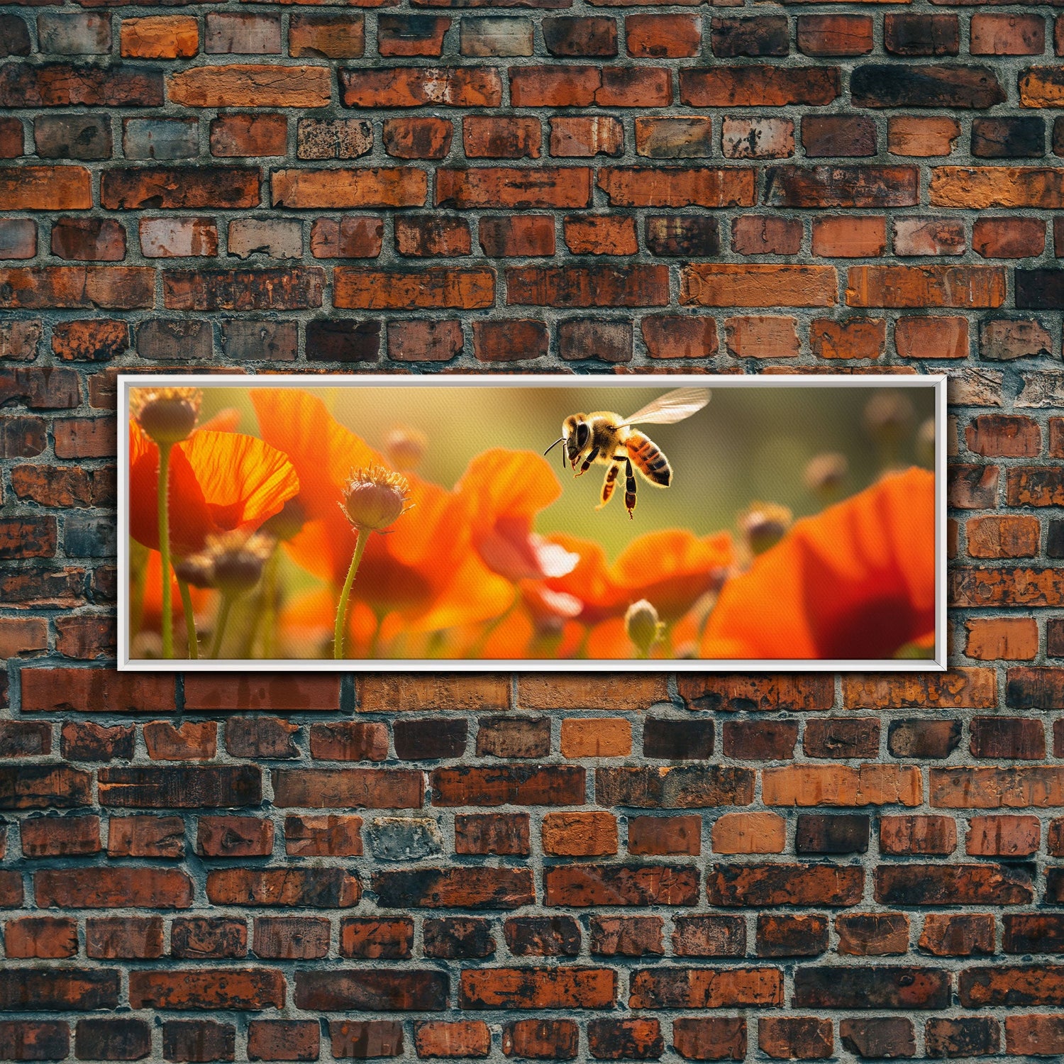 Panoramic Macro Photo Of a Honey Bee, Framed Canvas Print, Nursery Decor, Bee Art, Unique Wall Art / Gift Idea