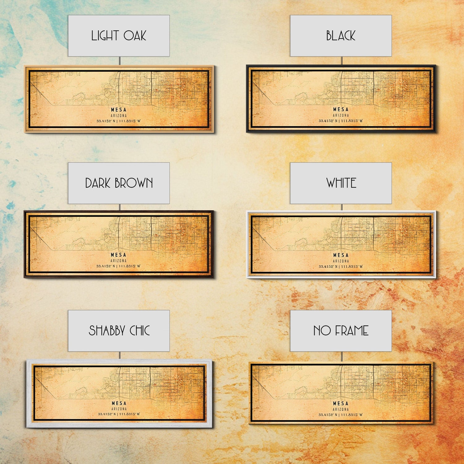 Panoramic Mesa Arizona United States map print poster or Framed canvas | United States road map print poster canvas, distressed map art - 10x30 Inches / No Frame - Stretched Canvas Only is backordered and will ship as soon as it is back in stock.