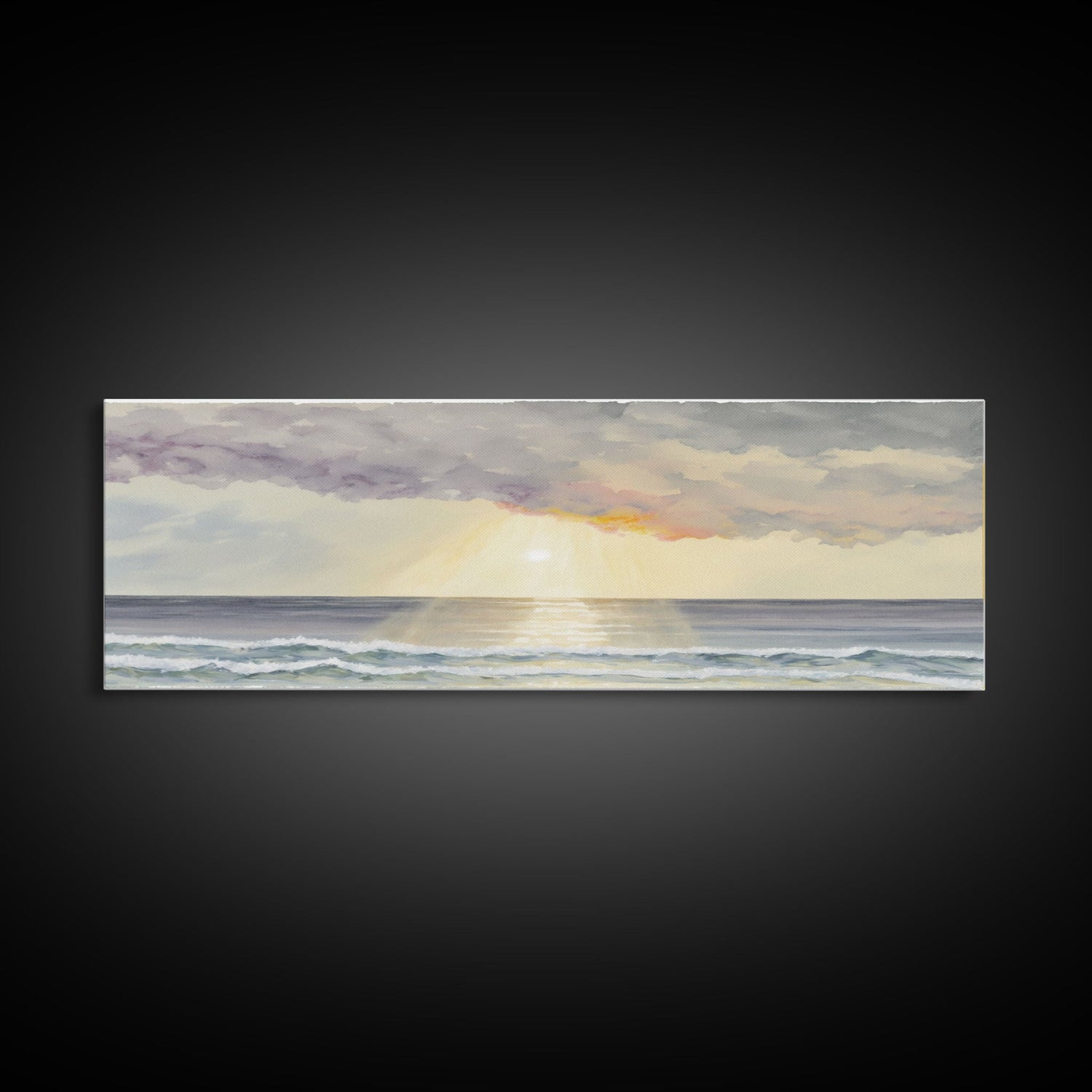 Panoramic Ocean Beach canvas prints Sea landscape Nautical photo Coastal canvas print Sea wave canvas Extra large wall art Ready to hang