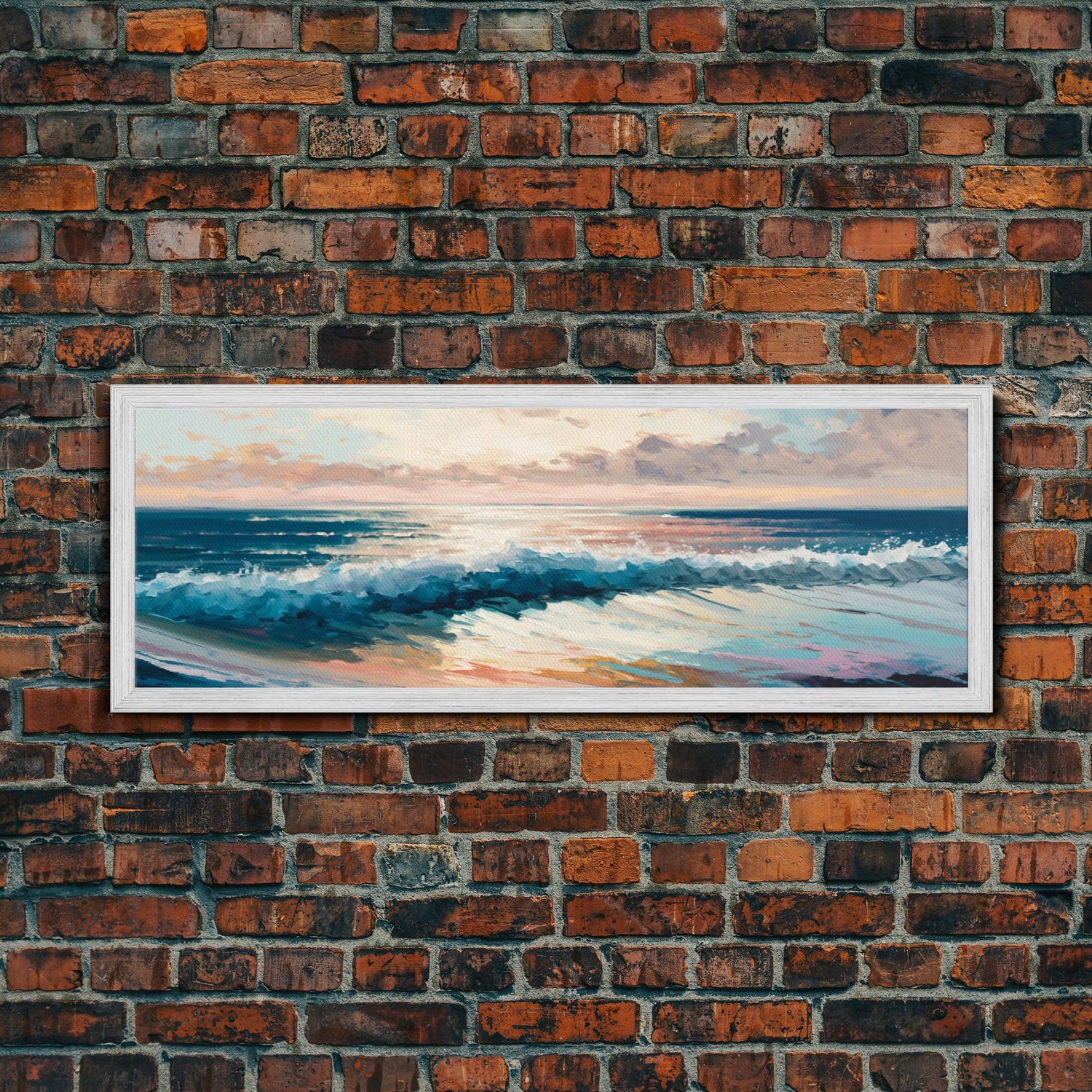Panoramic Ocean Beach canvas prints Sea landscape Nautical photo Coastal canvas print Sea wave canvas Extra large wall art Ready to hang