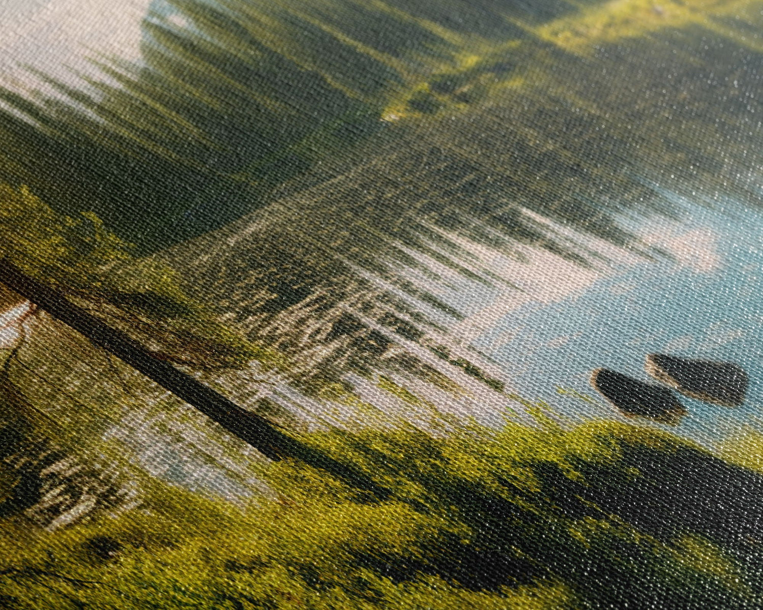 Most of our canvases are made in the USA, with the exception of canvases ordered with the light oak unstained frames, and any large canvases (24x48, 30x60, 16x48 and 20x60) ordered WITH a frame. These are temporarily made in and shipped from Europe, while we try to find a more consistent supplier in the USA.