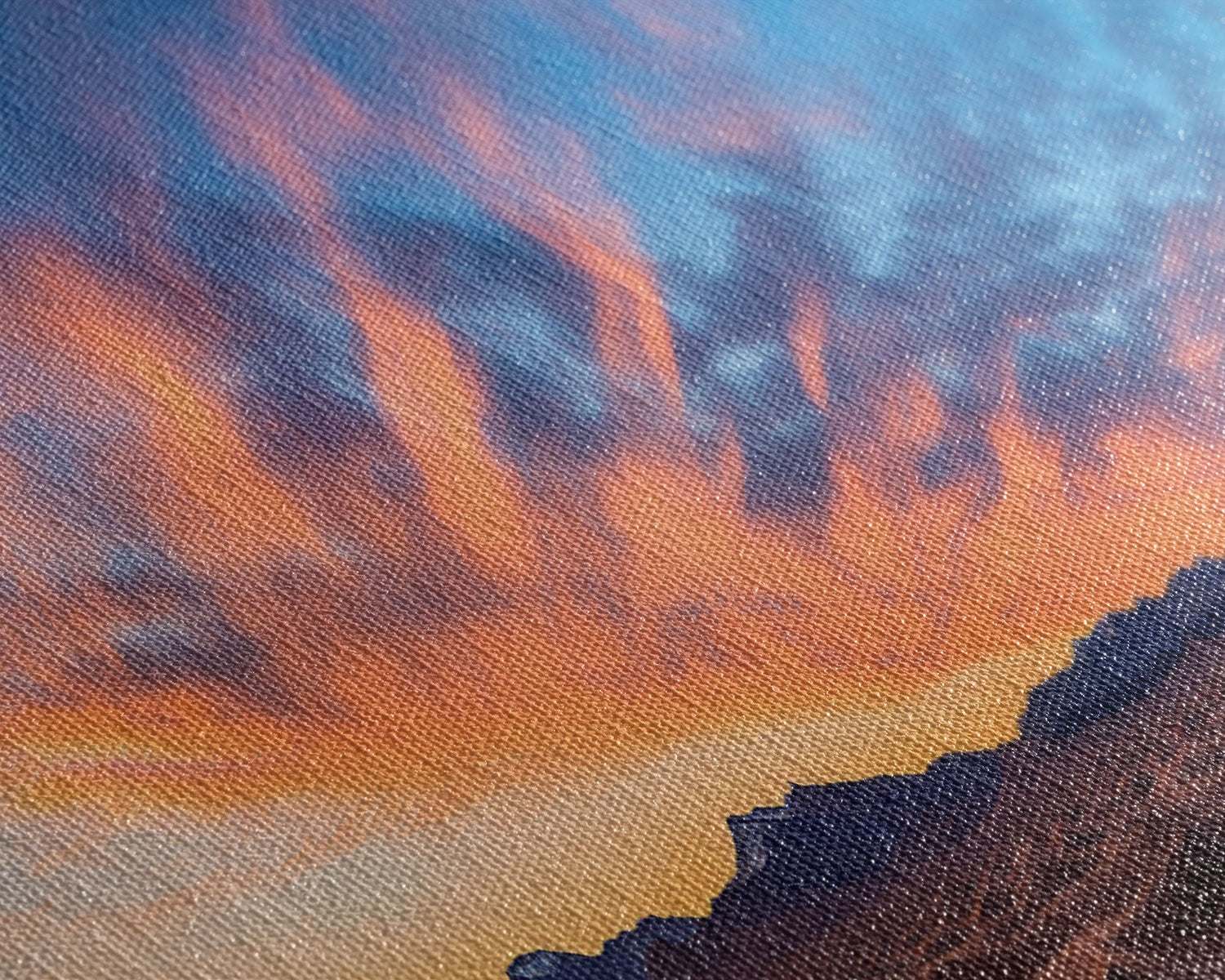 Most of our canvases are made in the USA, with the exception of canvases ordered with the light oak unstained frames, and any large canvases (24x48, 30x60, 16x48 and 20x60) ordered WITH a frame. These are temporarily made in and shipped from Europe, while we try to find a more consistent supplier in the USA.