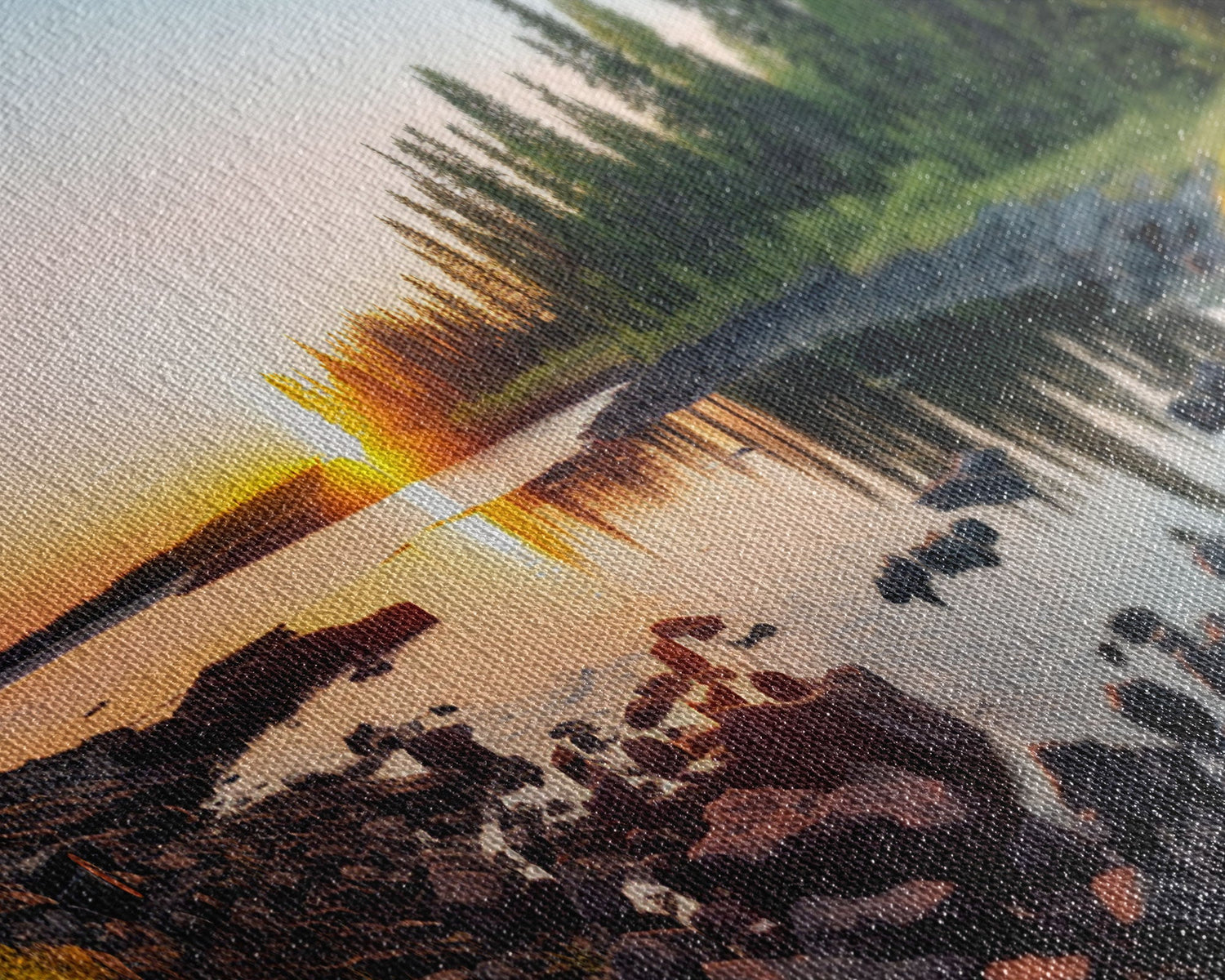 Most of our canvases are made in the USA, with the exception of canvases ordered with the light oak unstained frames, and any large canvases (24x48, 30x60, 16x48 and 20x60) ordered WITH a frame. These are temporarily made in and shipped from Europe, while we try to find a more consistent supplier in the USA.