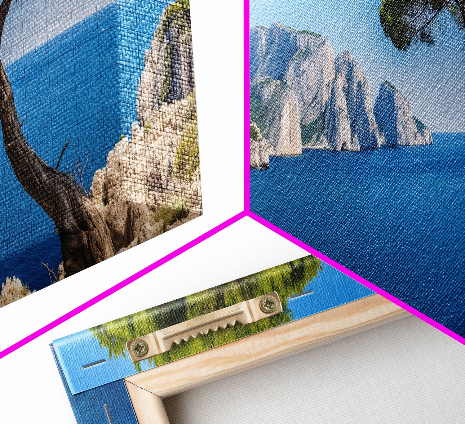 Most of our canvases are made in the USA, with the exception of canvases ordered with the light oak unstained frames, and any large canvases (24x48, 30x60, 16x48 and 20x60) ordered WITH a frame. These are temporarily made in and shipped from Europe, while we try to find a more consistent supplier in the USA.