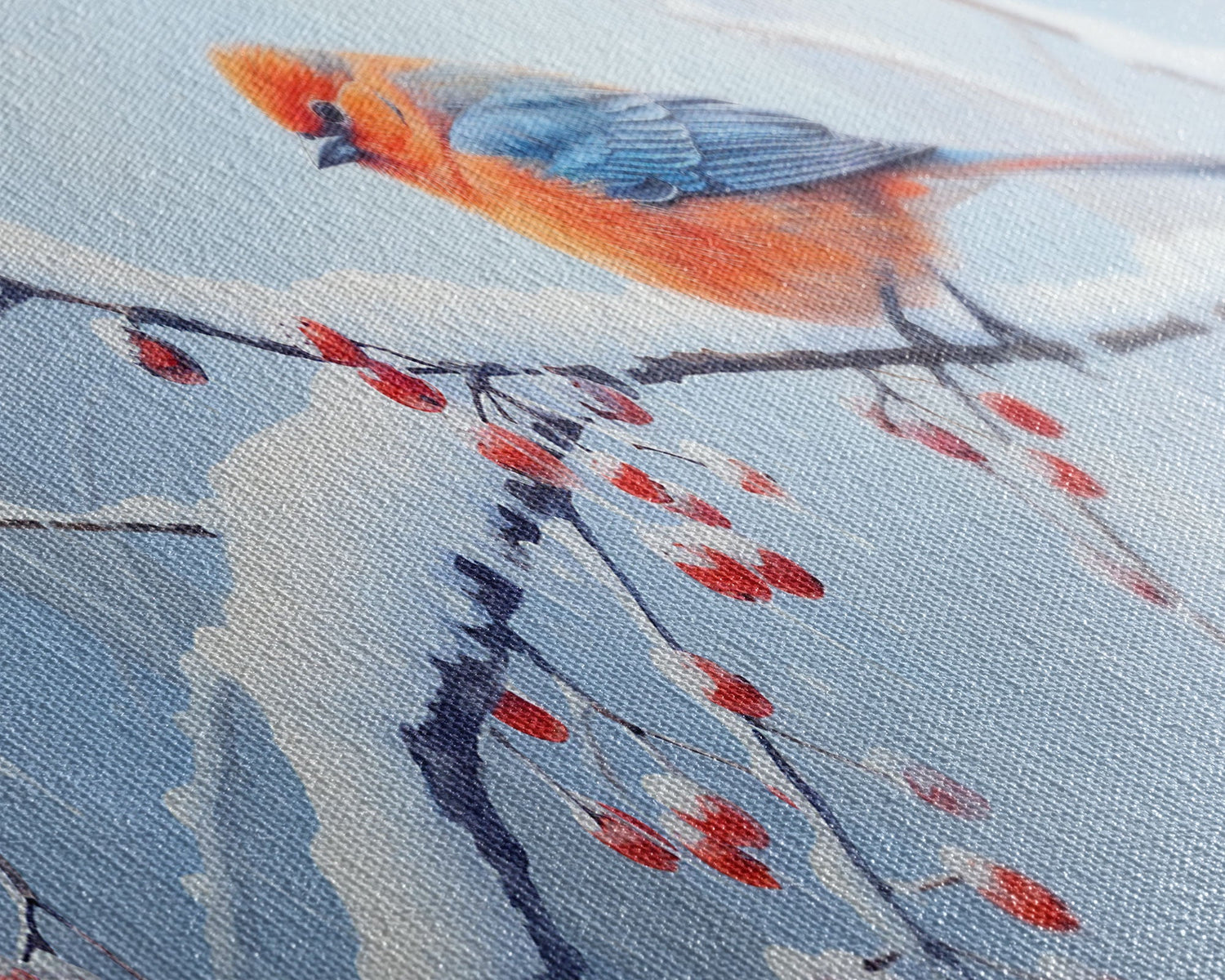 Panoramic Print of a Bluebird In A Snow Storm, Winter Decor, Christmas Centerpiece, Beautiful Animal Print, Animal Painting, Canvas Print