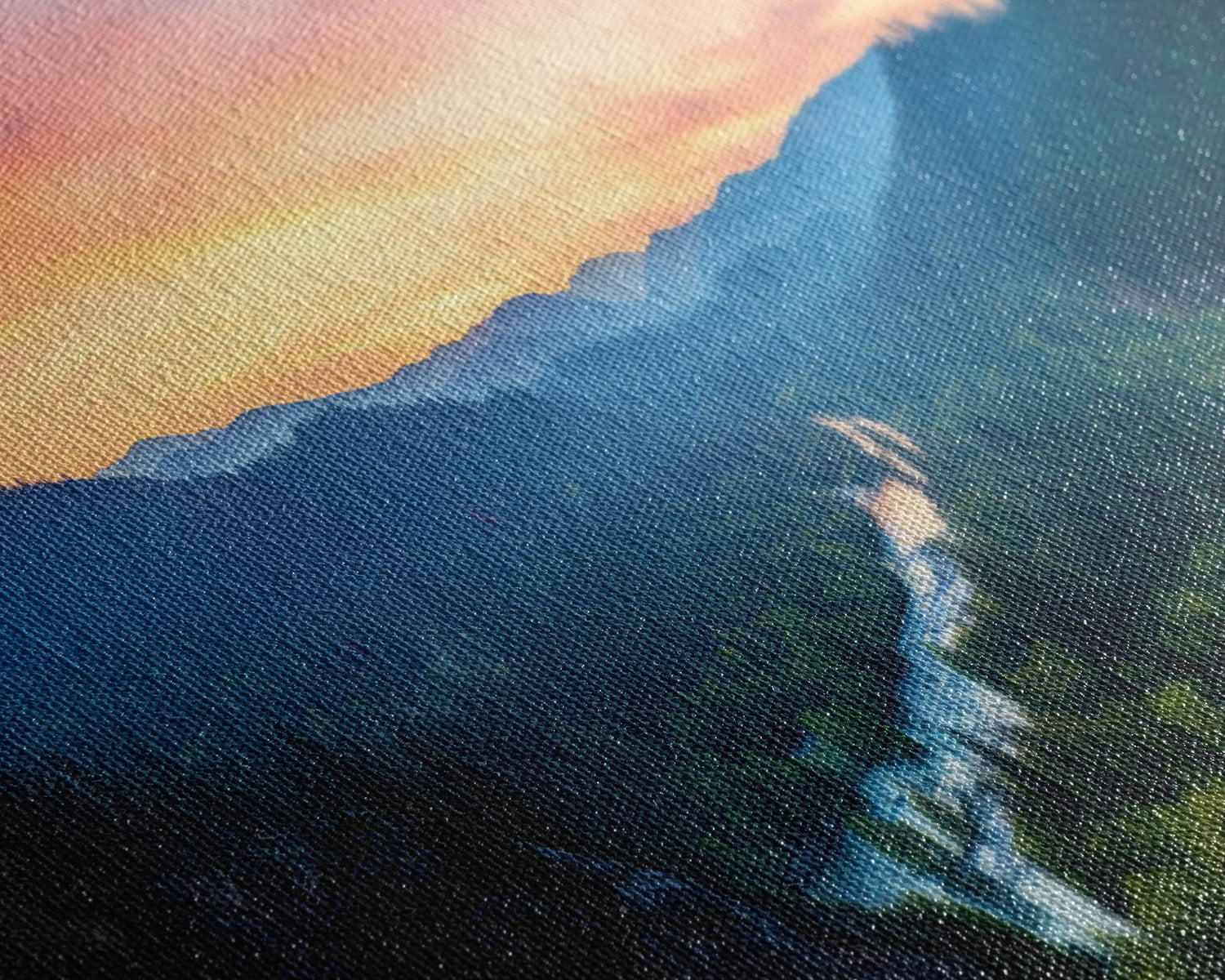 Most of our canvases are made in the USA, with the exception of canvases ordered with the light oak unstained frames, and any large canvases (24x48, 30x60, 16x48 and 20x60) ordered WITH a frame. These are temporarily made in and shipped from Europe, while we try to find a more consistent supplier in the USA.