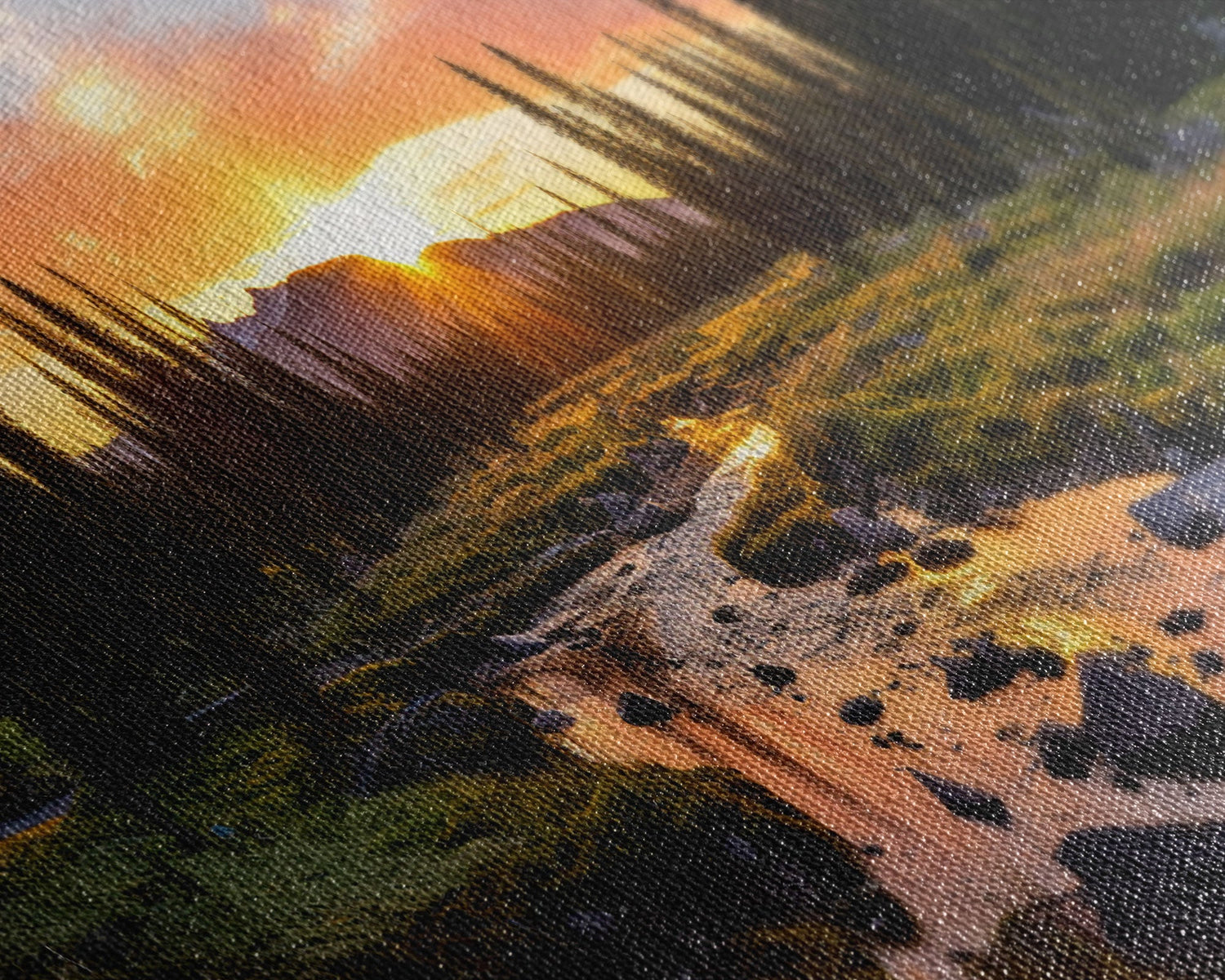 Most of our canvases are made in the USA, with the exception of canvases ordered with the light oak unstained frames, and any large canvases (24x48, 30x60, 16x48 and 20x60) ordered WITH a frame. These are temporarily made in and shipped from Europe, while we try to find a more consistent supplier in the USA.