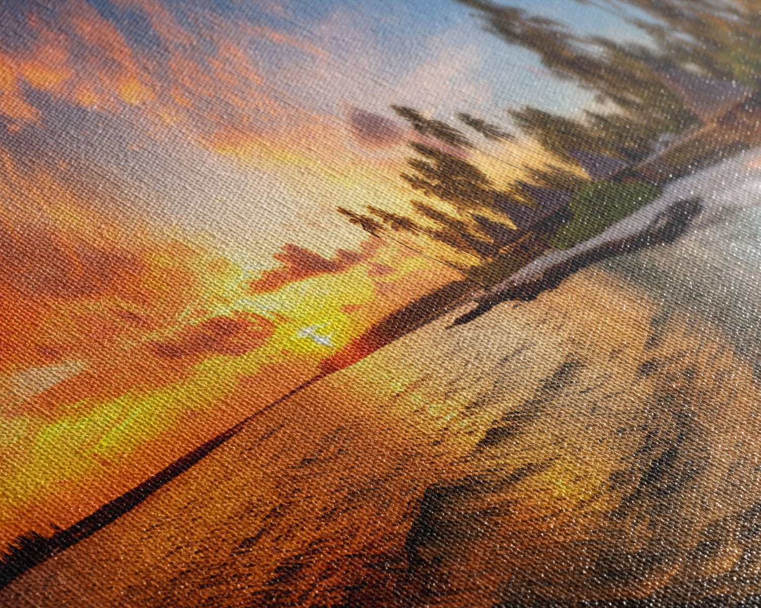 Most of our canvases are made in the USA, with the exception of canvases ordered with the light oak unstained frames, and any large canvases (24x48, 30x60, 16x48 and 20x60) ordered WITH a frame. These are temporarily made in and shipped from Europe, while we try to find a more consistent supplier in the USA.
