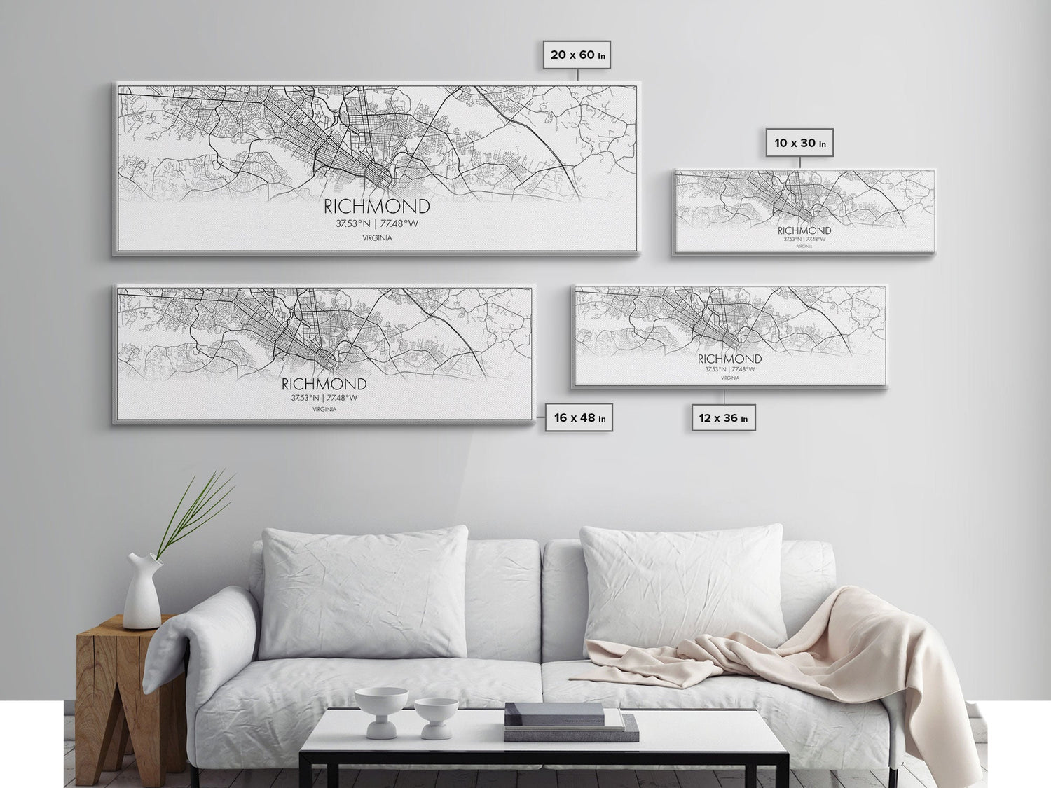 Panoramic Richmond City Map, Virginia Art, Map Print, Minimalist Wall Art, Canvas Art, Housewarming Gift, Street Map Art, Closing Gift - 10x30 Inches / No Frame - Stretched Canvas Only is backordered and will ship as soon as it is back in stock.