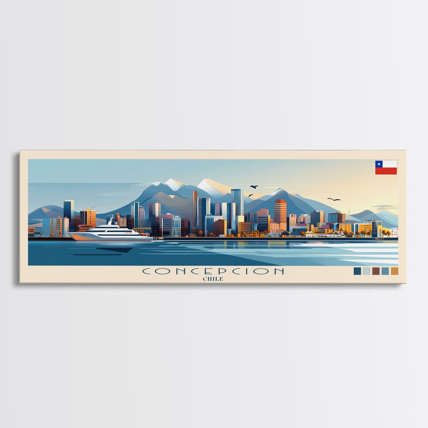 Panoramic Travel Poster Concepcion, Chile Canvas Print, Concepcion, Chile Painting, Chile Art, Concepcion Travel Art, Guest Room Painting