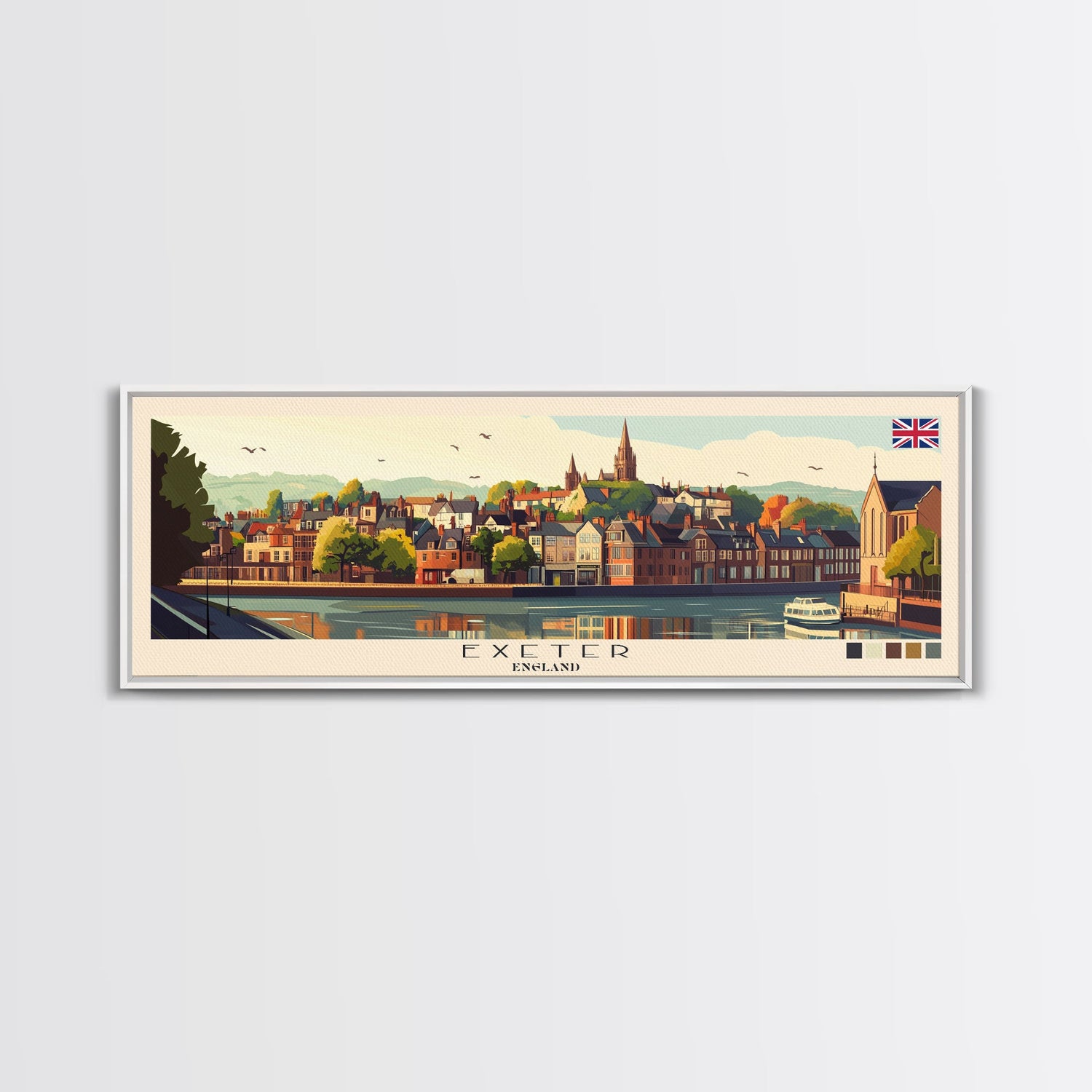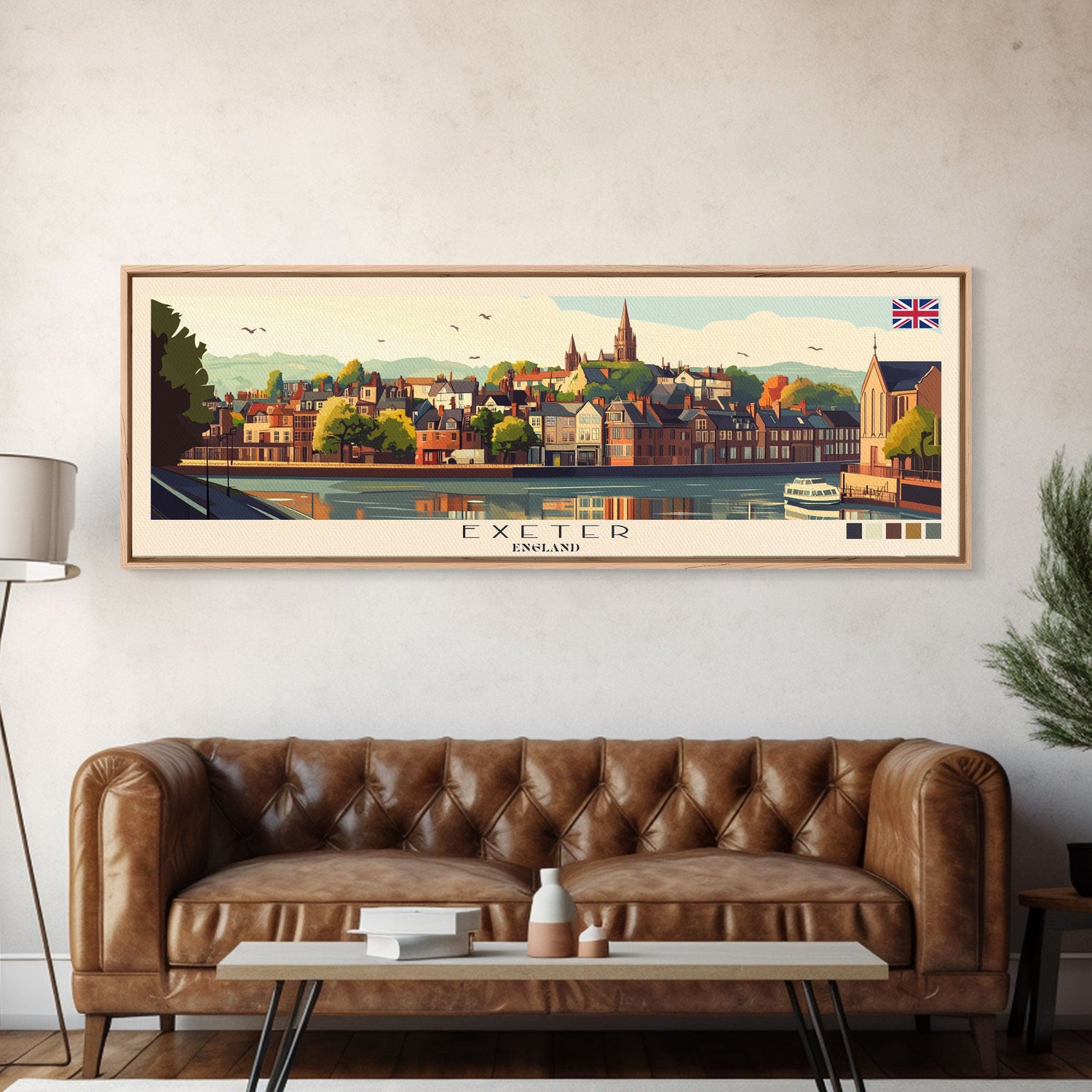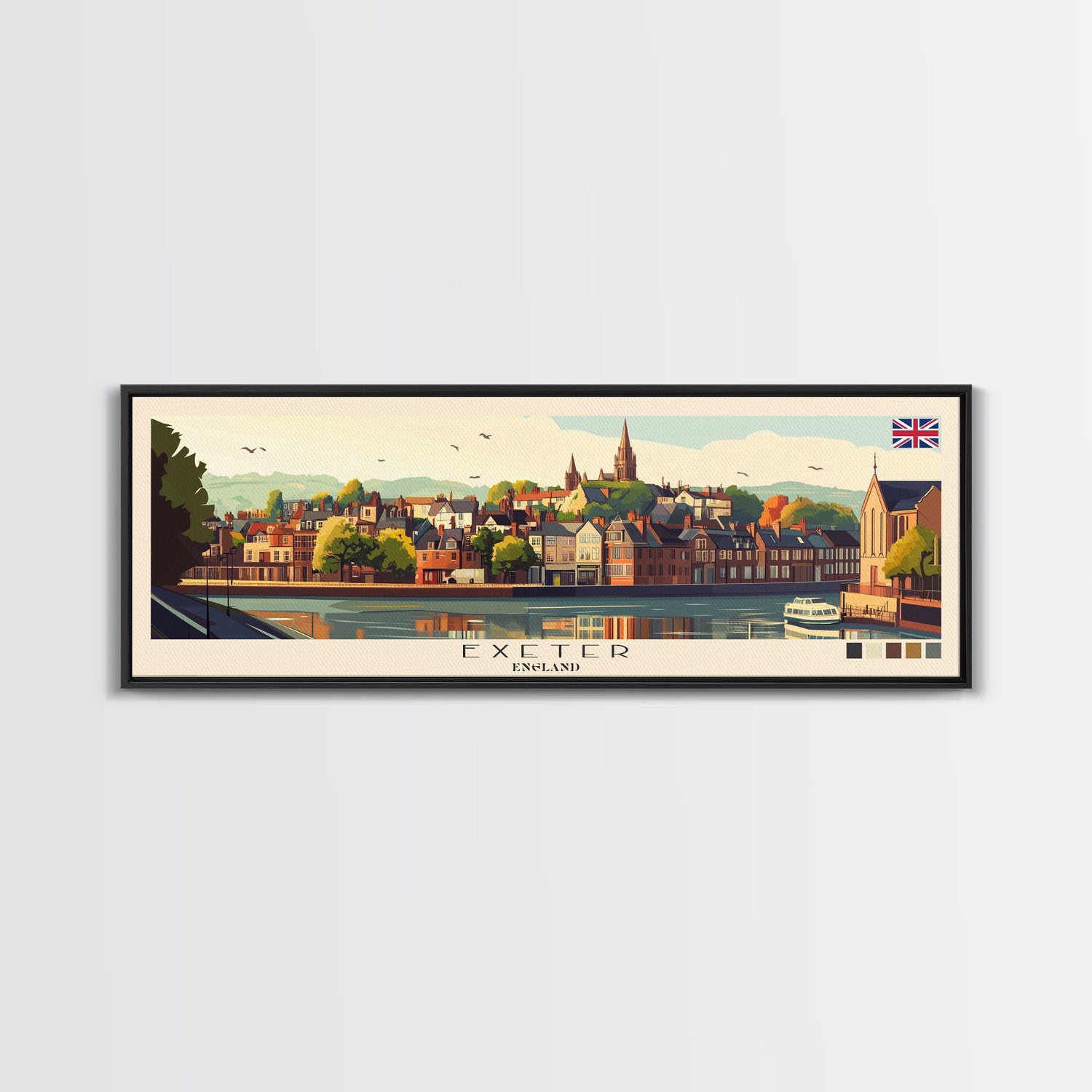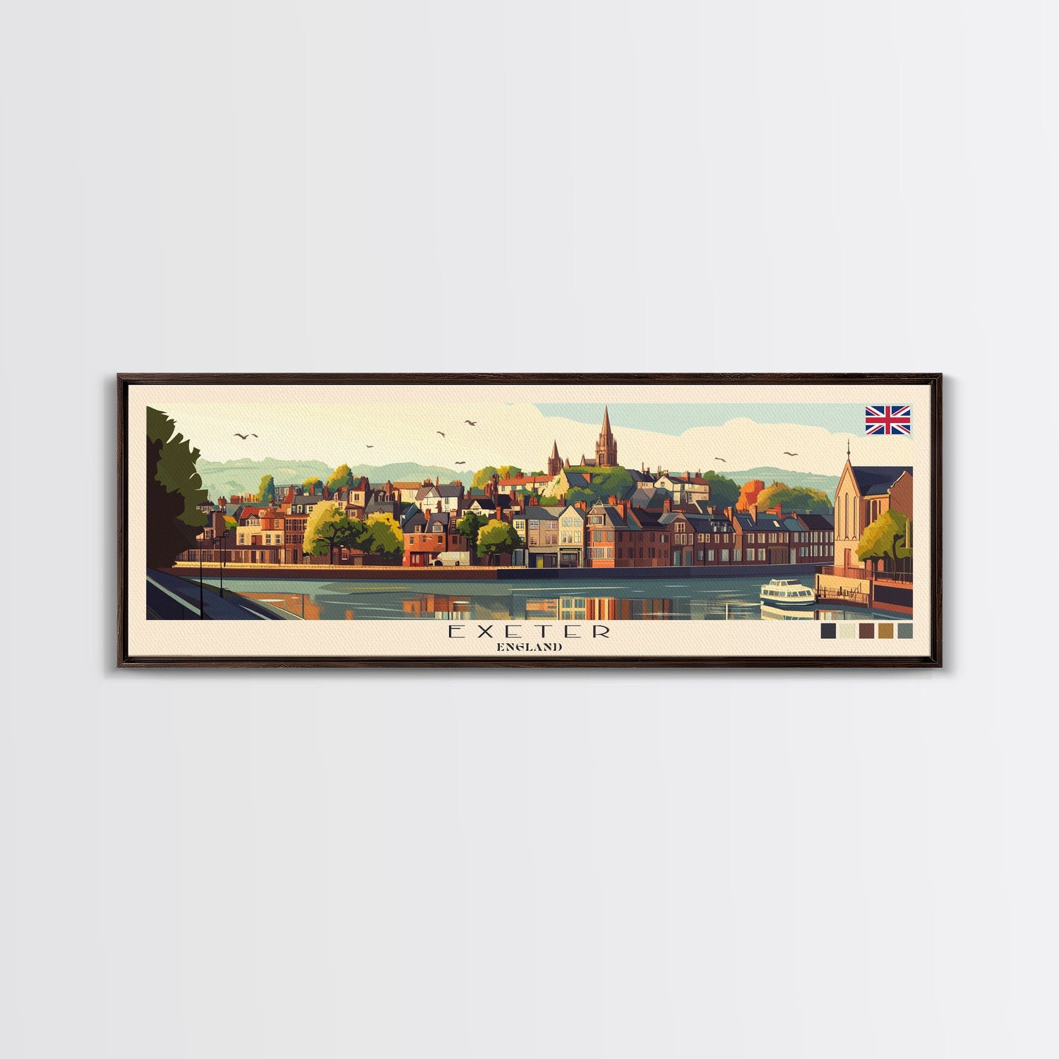 Panoramic Travel Poster Exeter, England Canvas Print, Exeter, England Painting, England Art, Exeter Travel Art, Guest Room Painting