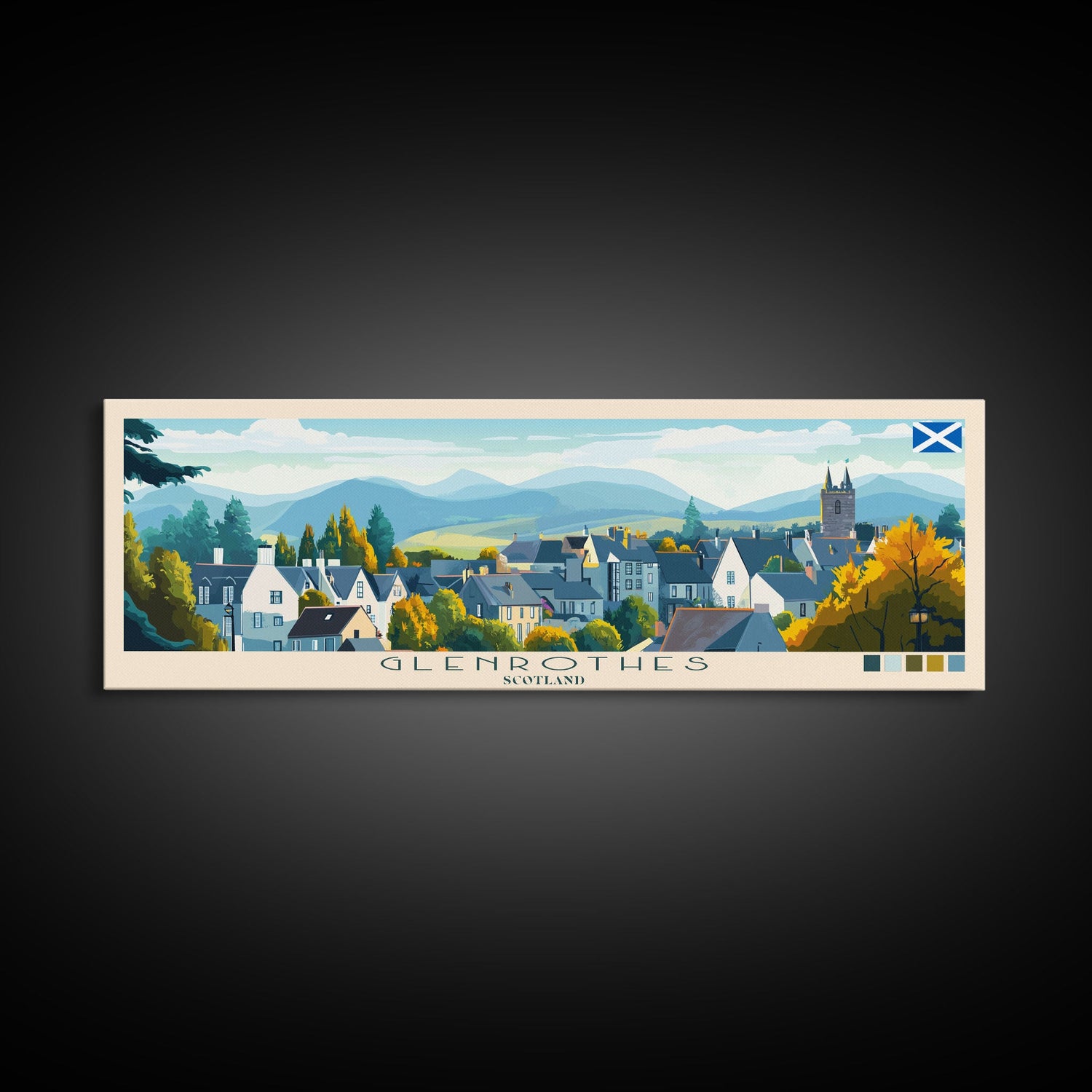 Panoramic Travel Poster Glenrothes, Scotland Canvas Print, Glenrothes, Scotland Painting, Scotland Art, Glenrothes Travel Art, Guest Room Painting