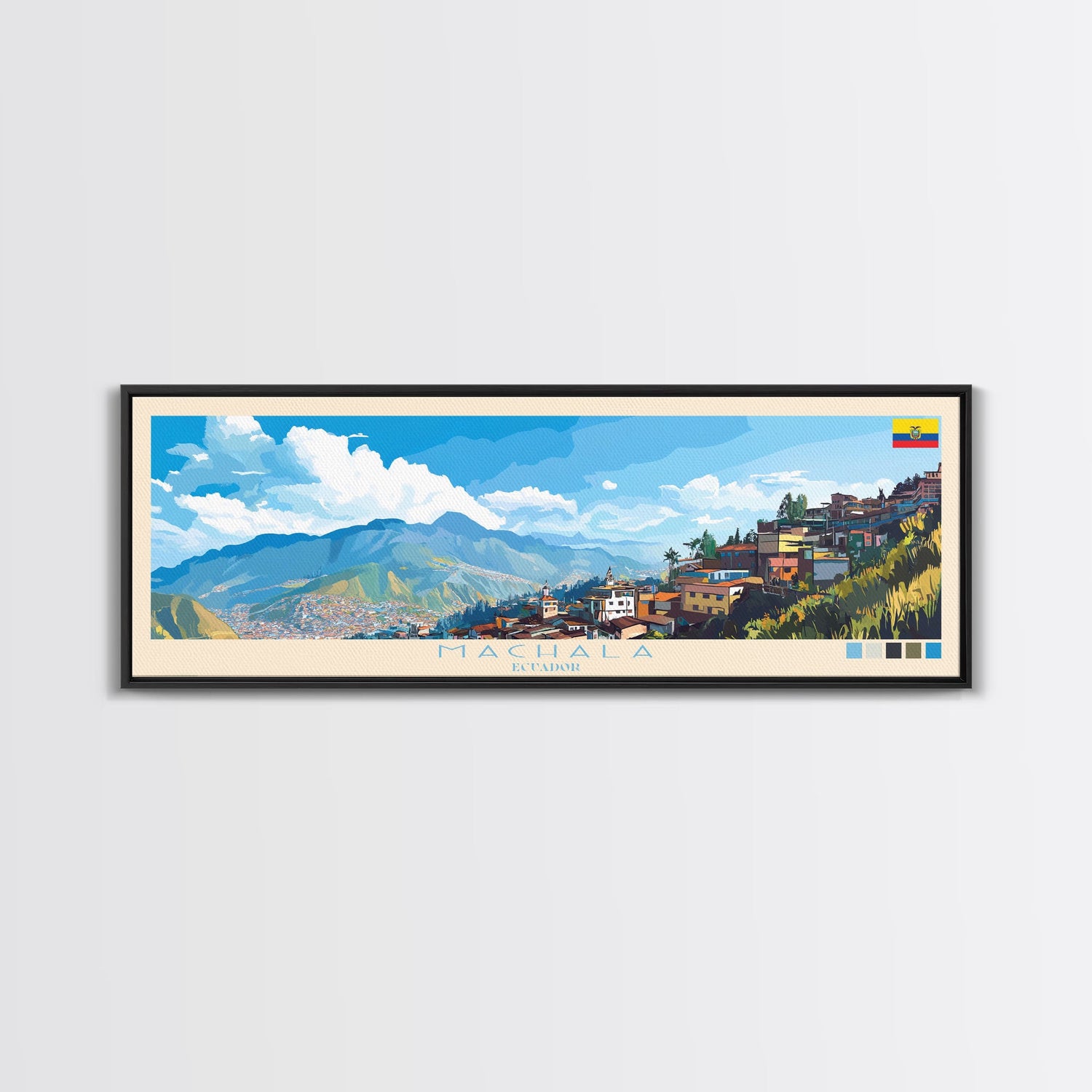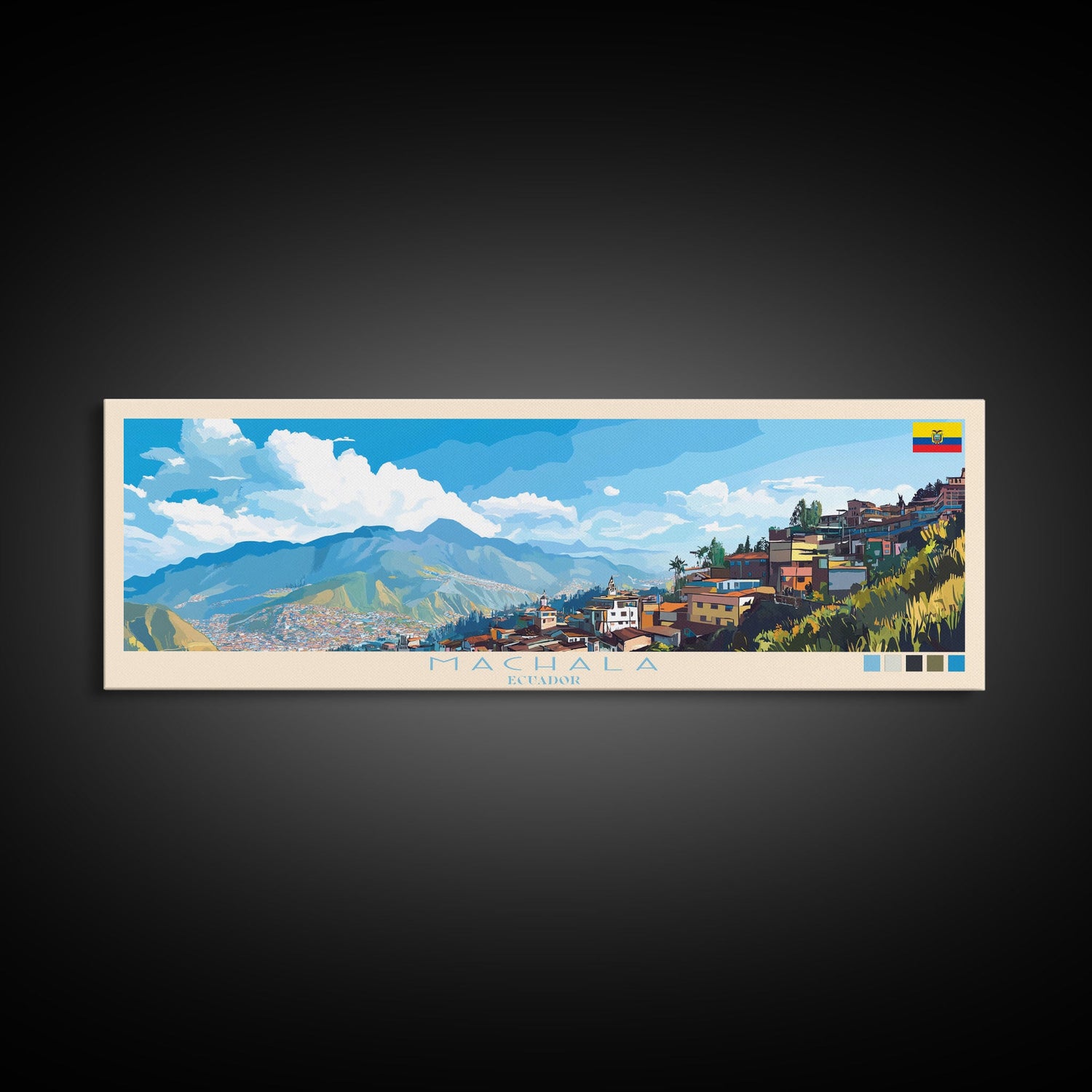 Panoramic Travel Poster Machala, Ecuador Canvas Print, Machala, Ecuador Painting, Ecuador Art, Machala Travel Art, Guest Room Painting