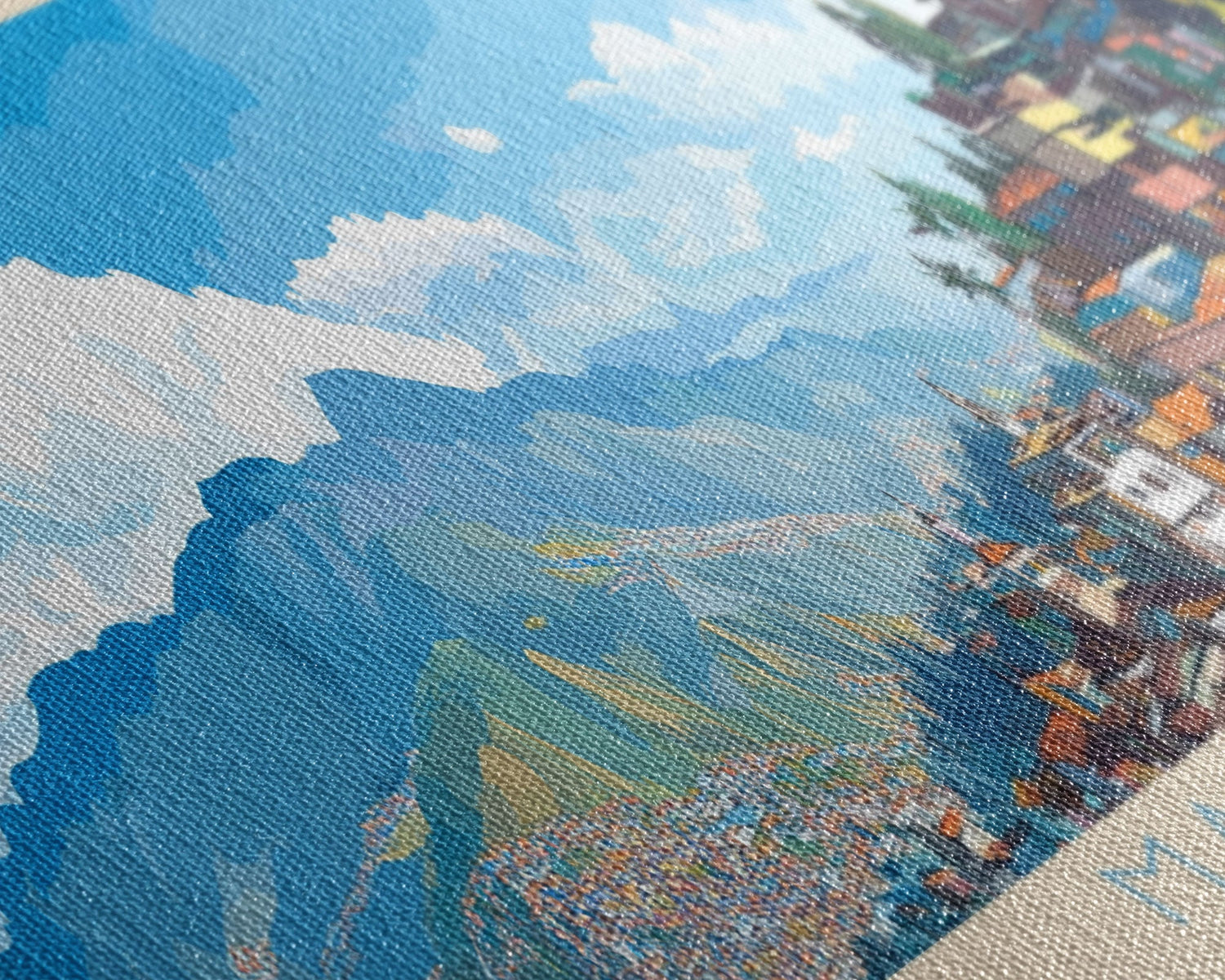 Most of our canvases are made in the USA, with the exception of canvases ordered with the light oak unstained frames, and any large canvases (24x48, 30x60, 16x48 and 20x60) ordered WITH a frame. These are temporarily made in and shipped from Europe, while we try to find a more consistent supplier in the USA.