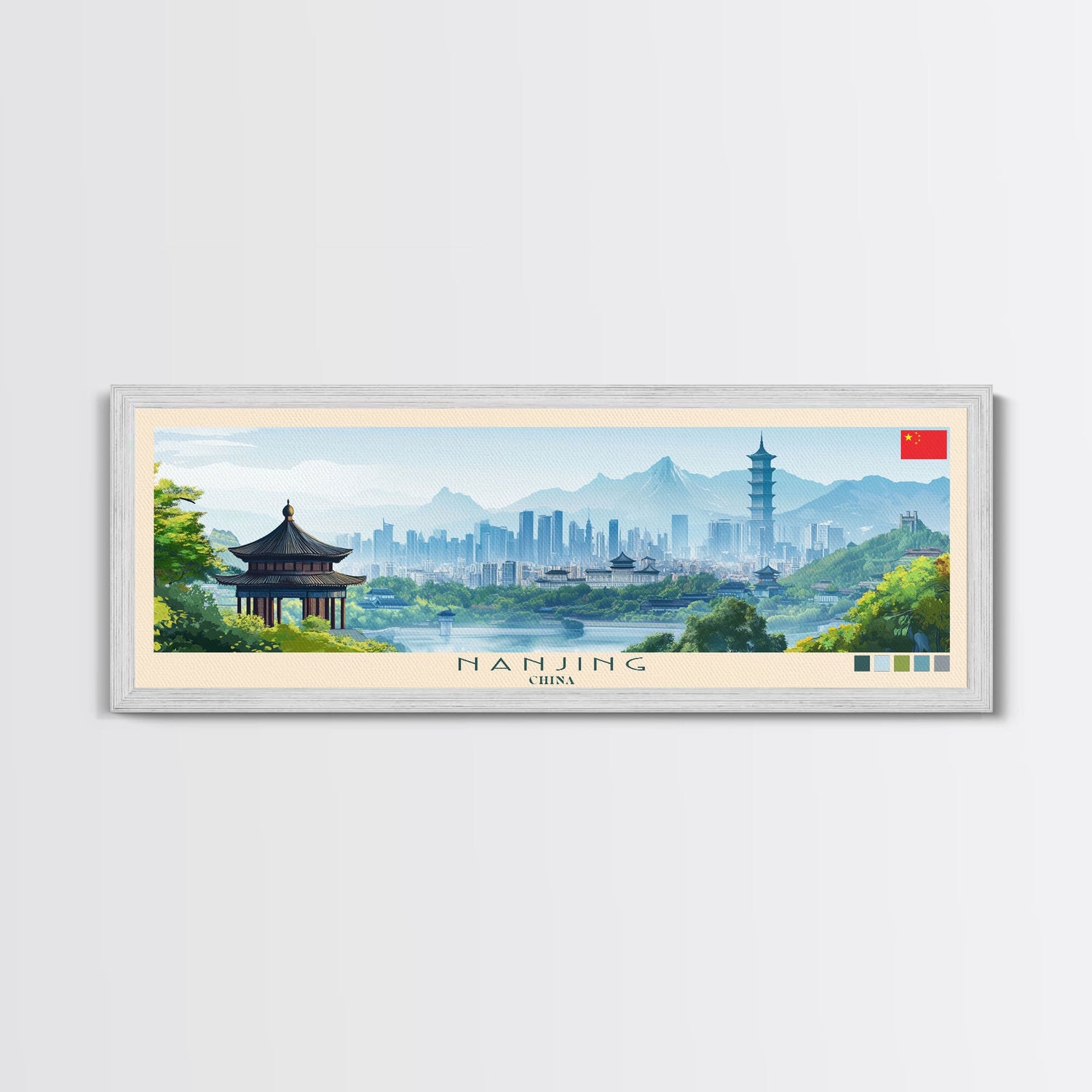 Panoramic Travel Poster Nanjing, China Canvas Print, Nanjing, China Painting, China Art, Nanjing Travel Art, Guest Room Painting - 10x30 Inches / No Frame - Stretched Canvas Only is backordered and will ship as soon as it is back in stock.