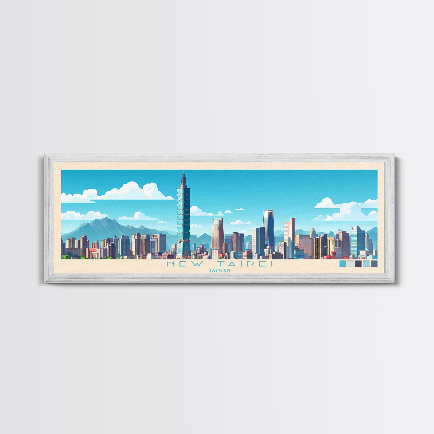 Panoramic Travel Poster New Taipei, Taiwan Canvas Print, New Taipei, Taiwan Painting, Taiwan Art, New Taipei Travel Art, Guest Room Painting