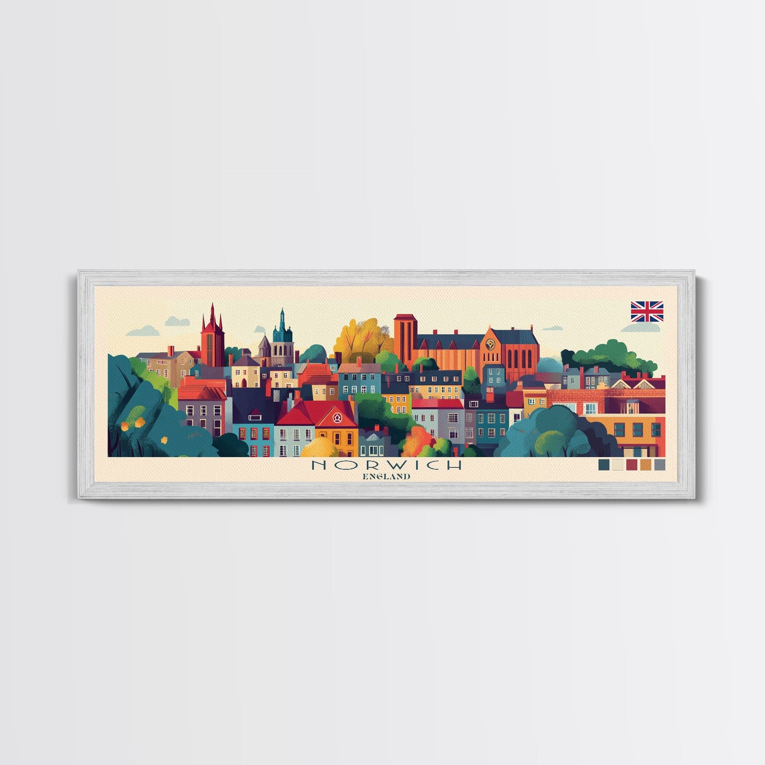 Panoramic Travel Poster Norwich, England Canvas Print, Norwich, England Painting, England Art, Norwich Travel Art, Guest Room Painting - 10x30 Inches / No Frame - Stretched Canvas Only is backordered and will ship as soon as it is back in stock.
