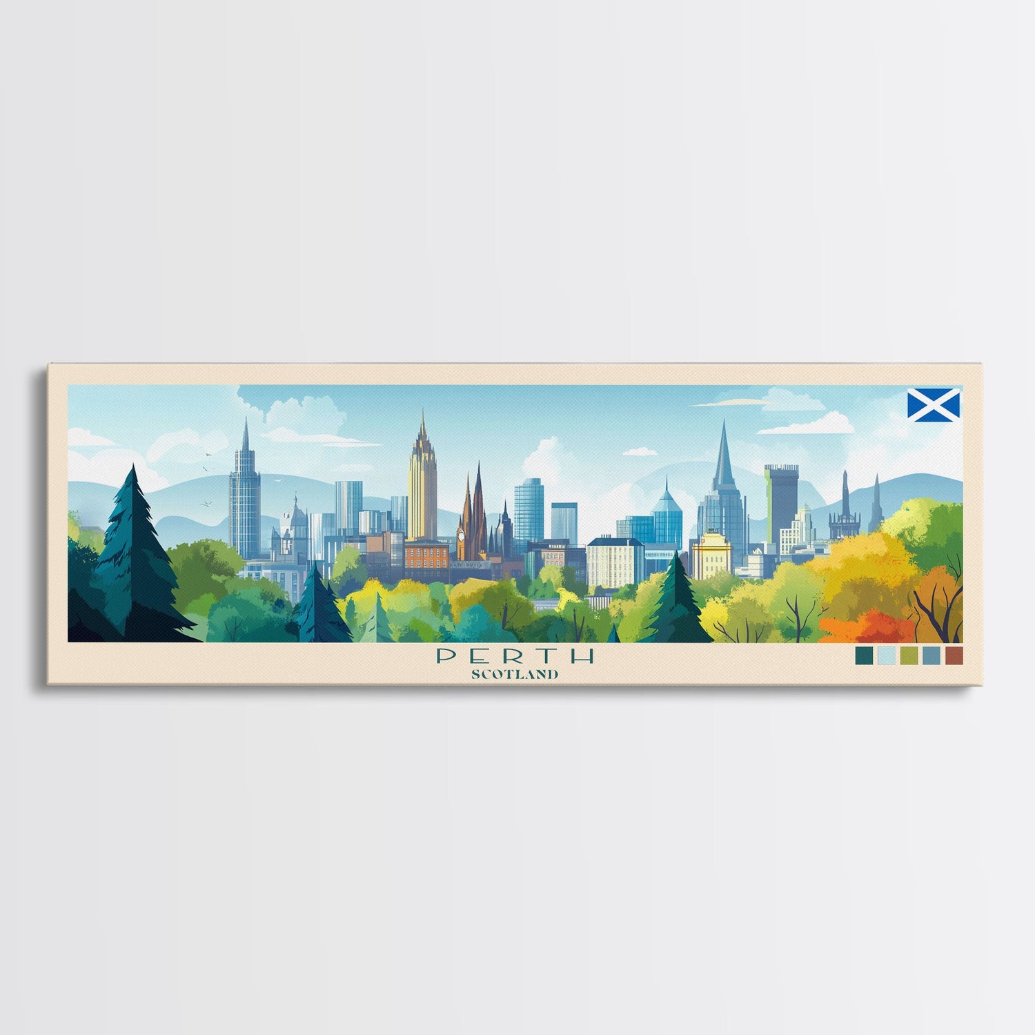 Panoramic Travel Poster Perth, Scotland Canvas Print, Perth, Scotland Painting, Scotland Art, Perth Travel Art, Guest Room Painting - 10x30 Inches / No Frame - Stretched Canvas Only is backordered and will ship as soon as it is back in stock.