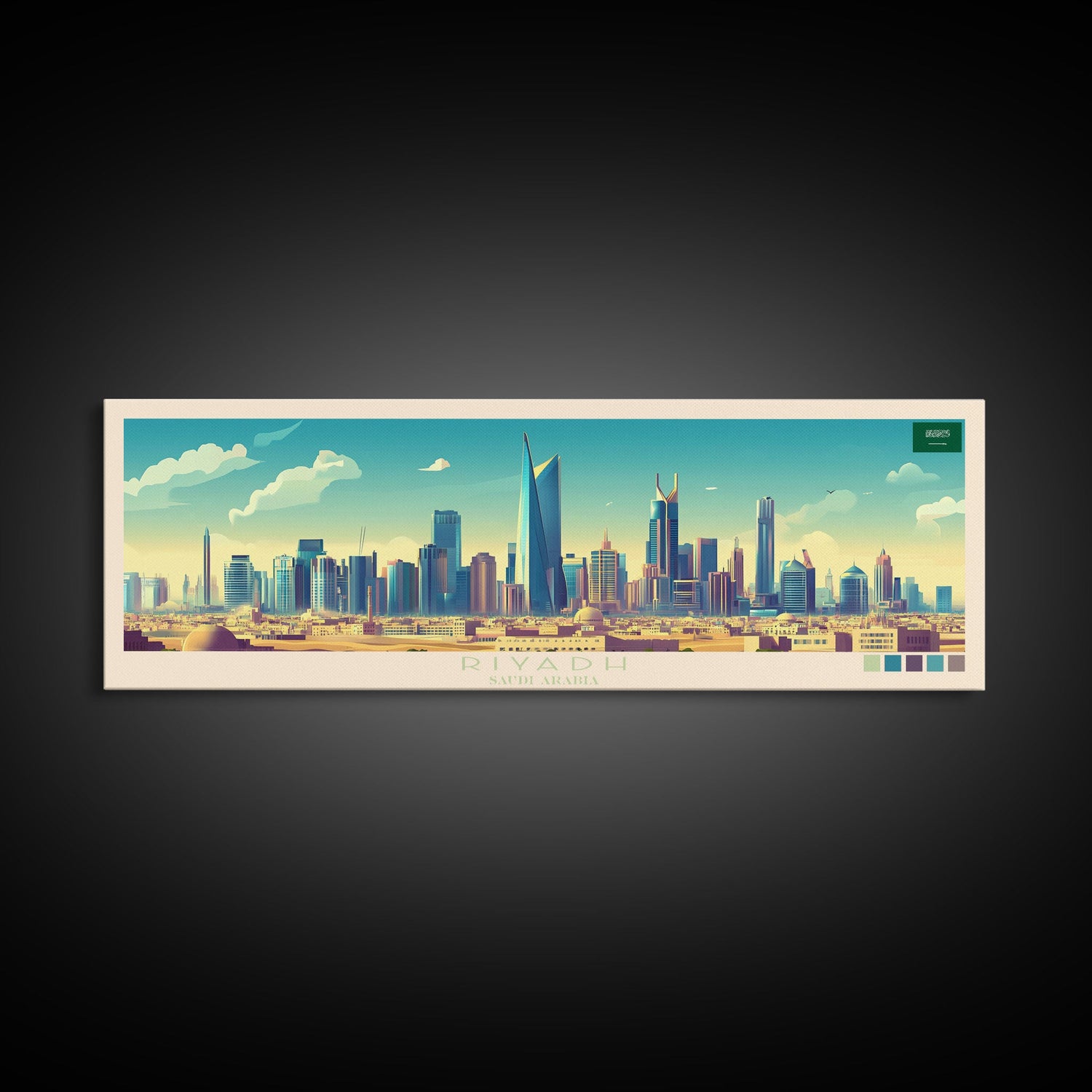 Panoramic Travel Poster Riyadh, Saudi Arabia Canvas Print, Riyadh, Saudi Arabia Painting, Saudi Arabia Art, Riyadh Travel Art, Guest Room Painting - 10x30 Inches / No Frame - Stretched Canvas Only is backordered and will ship as soon as it is back in stock.