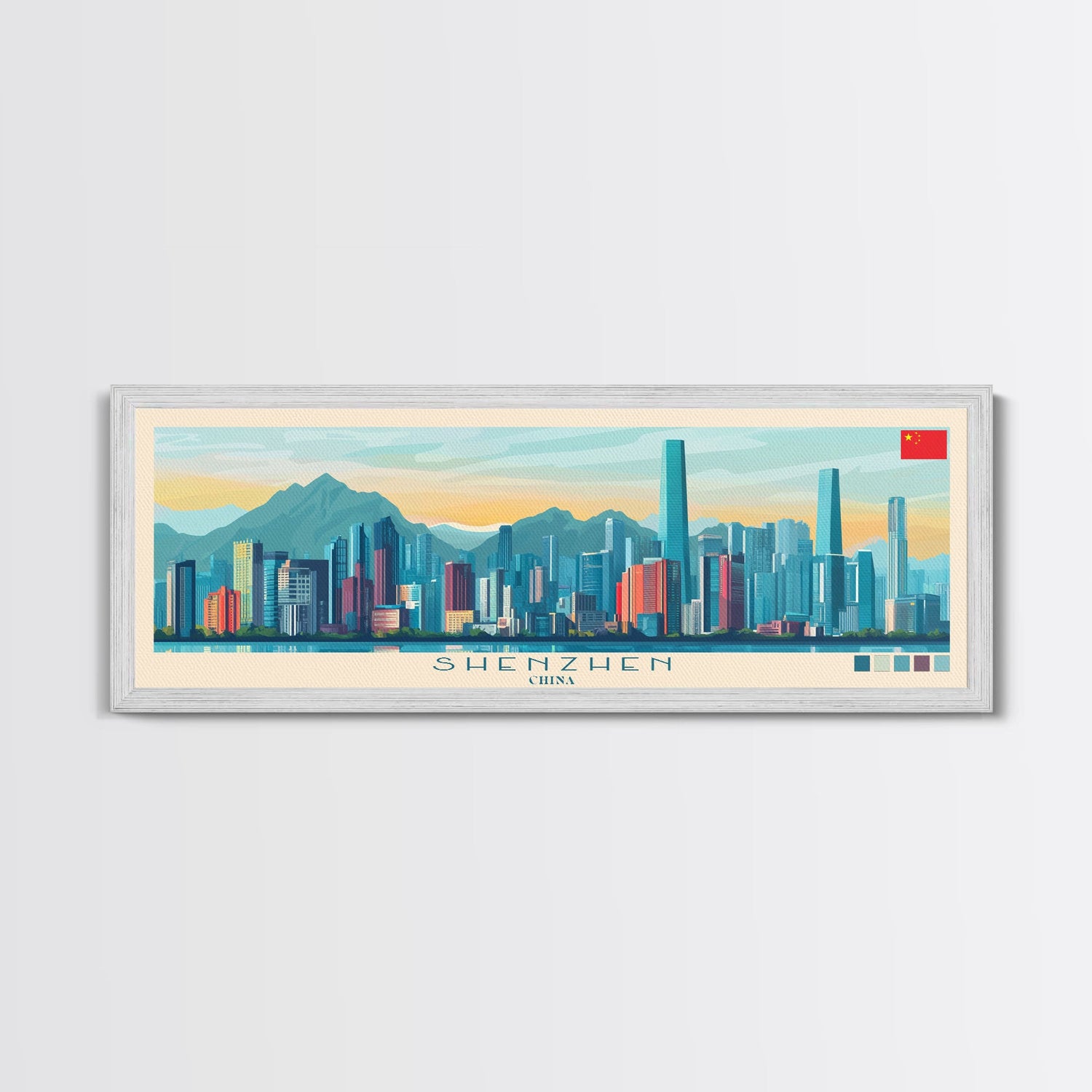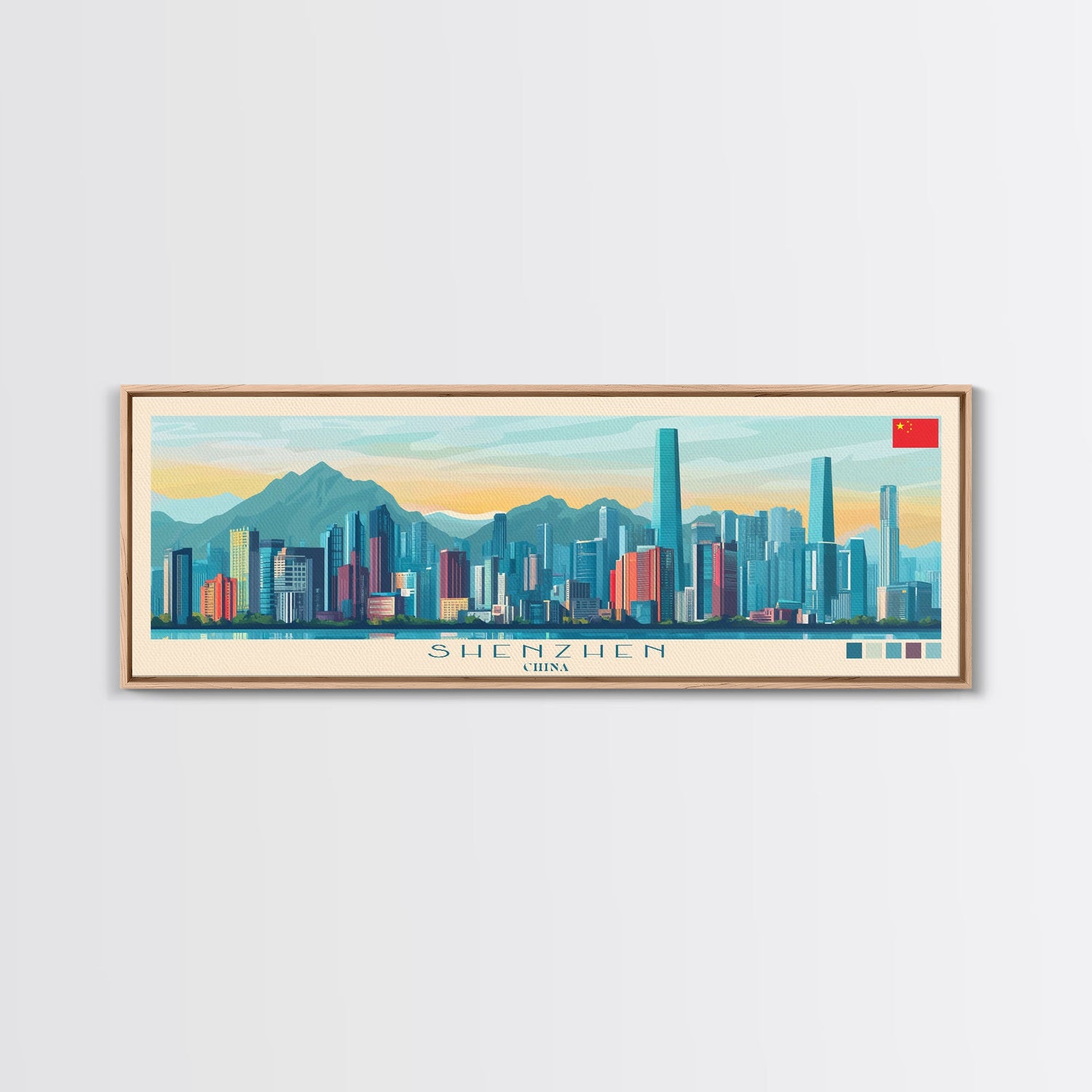 Panoramic Travel Poster Shenzhen, China Canvas Print, Shenzhen, China Painting, China Art, Shenzhen Travel Art, Guest Room Painting