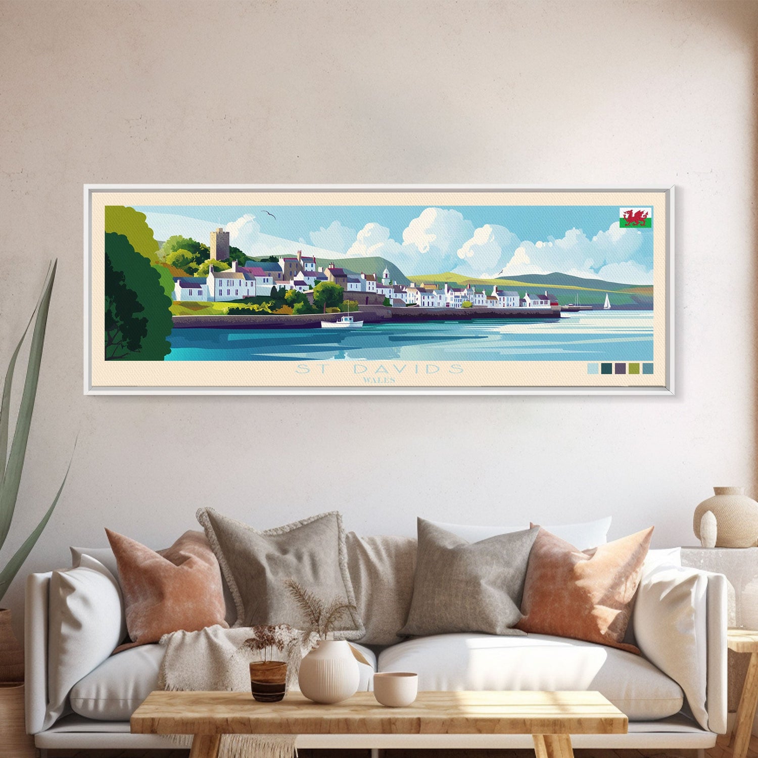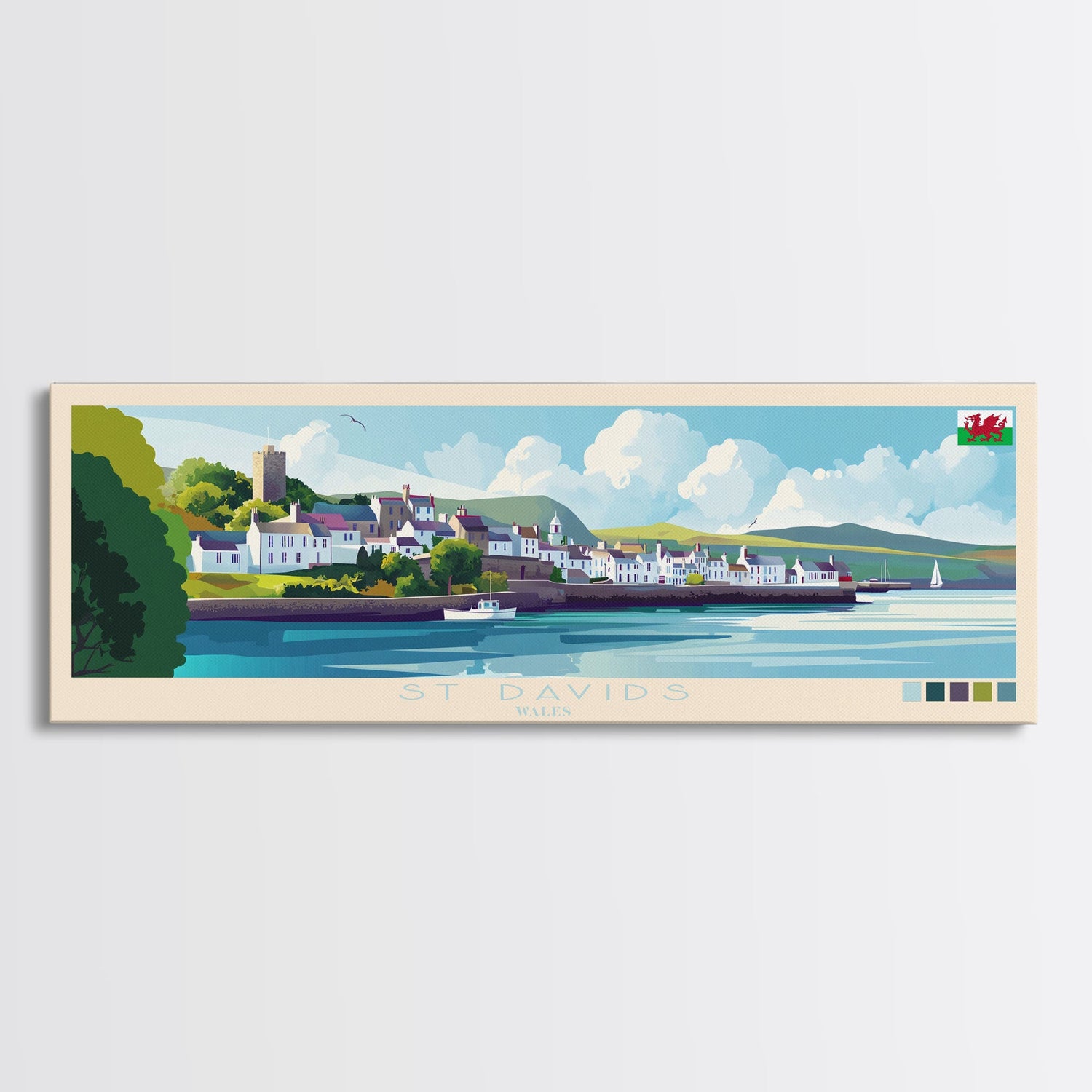 Panoramic Travel Poster St Davids, Wales Canvas Print, St Davids, Wales Painting, Wales Art, St Davids Travel Art, Guest Room Painting