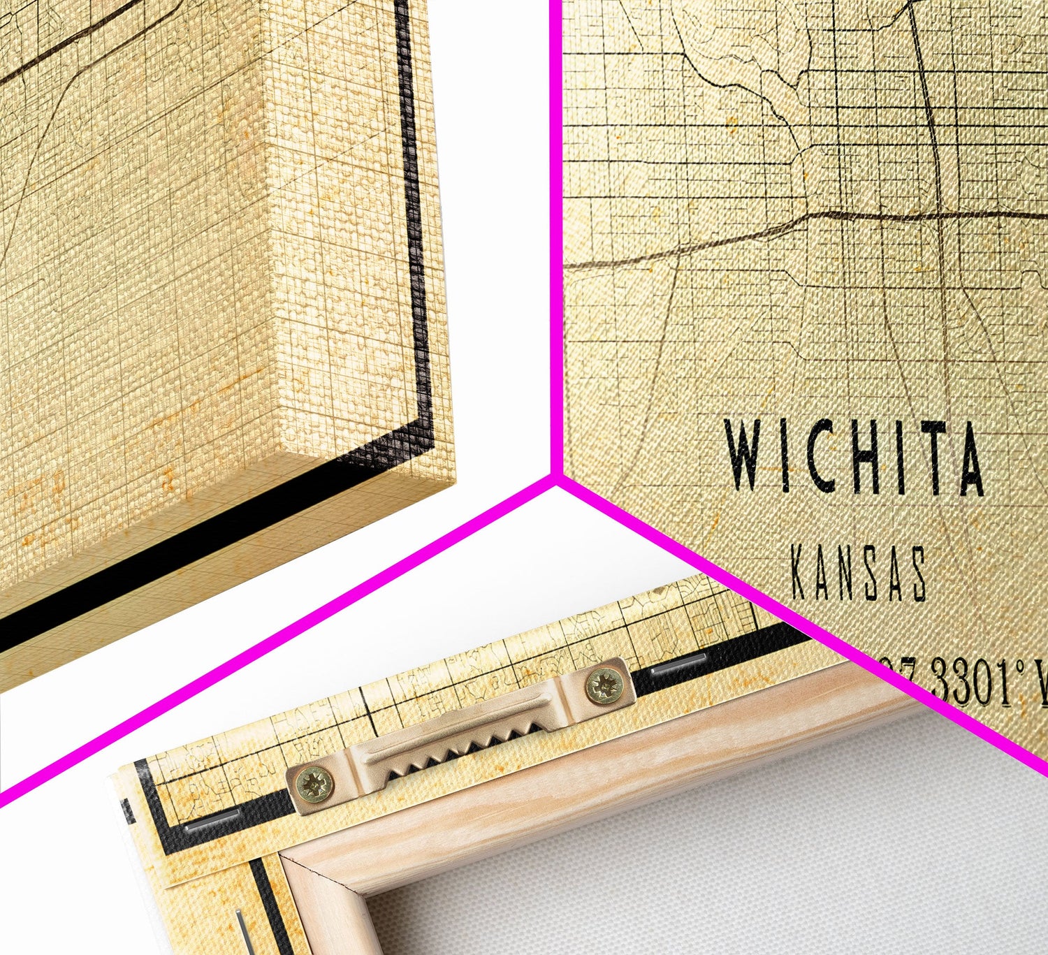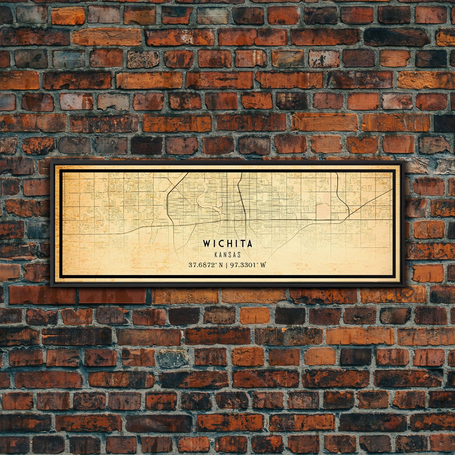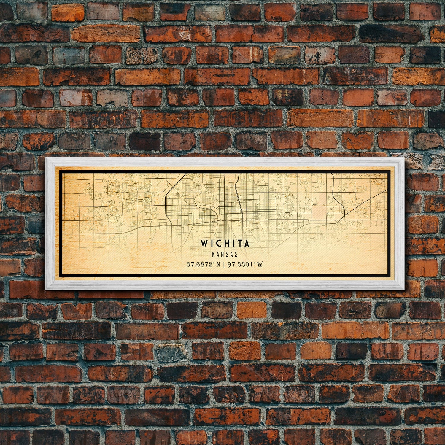 Panoramic Vintage Wichita Kansas map print poster or framed canvas, map print poster canvas, Wichita city map print canvas, Travel Art