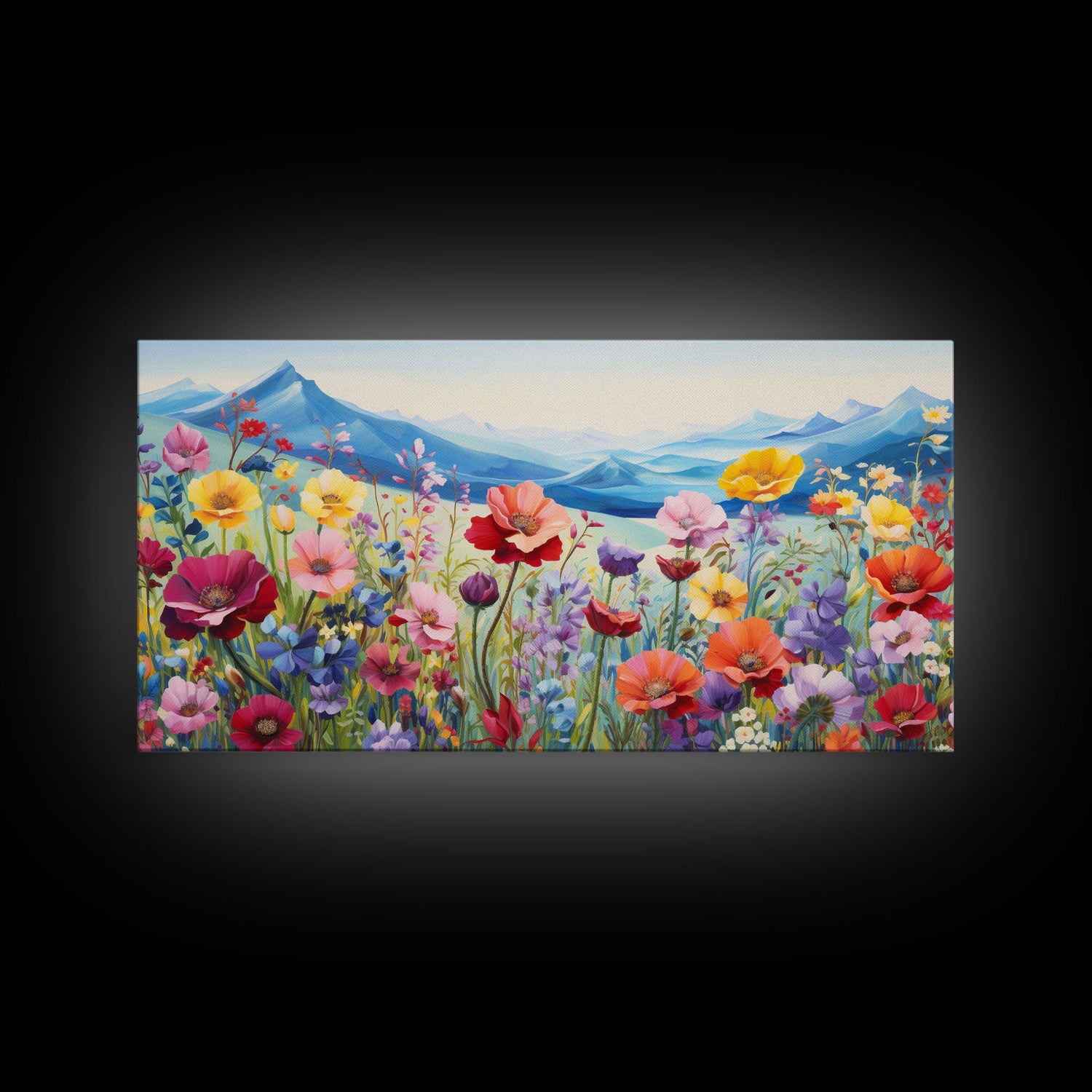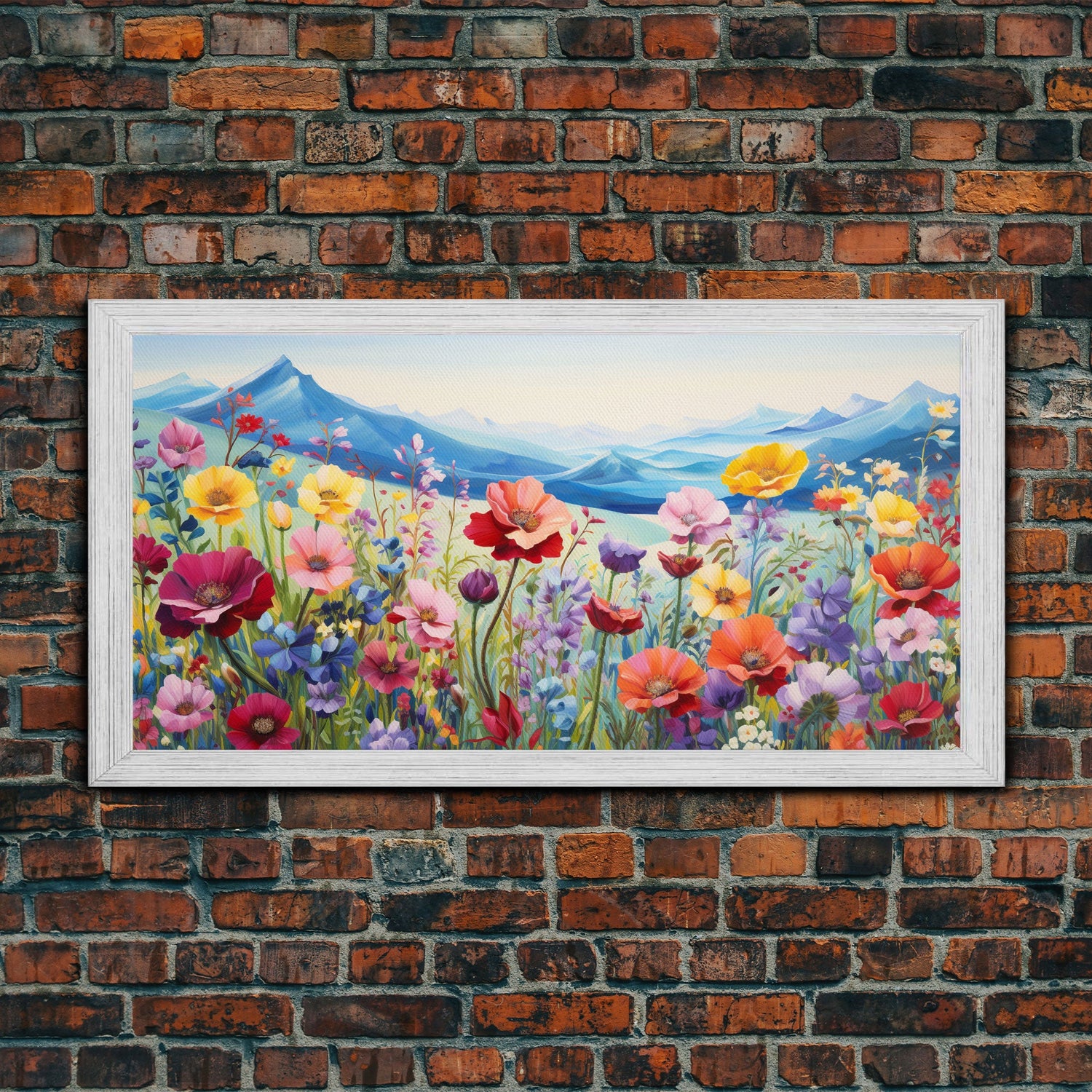 Pansies Wall Art, Spring Meadow Print, Wildflower Meadow, Panoramic Art, Wall Art, Canvas Art, Landscape Art, New Home Gift, Above Bed Decor - 10x20 Inches / No Frame - Stretched Canvas Only is backordered and will ship as soon as it is back in stock.
